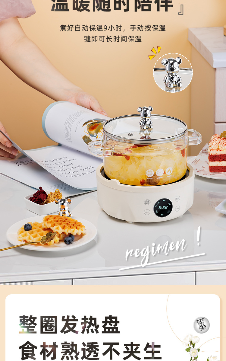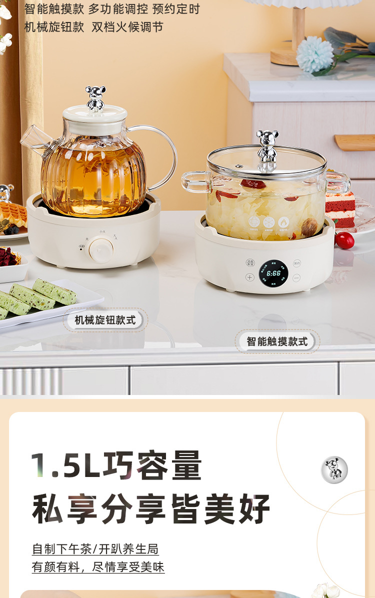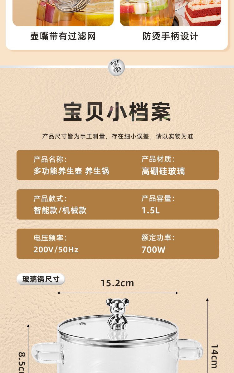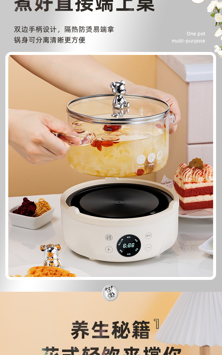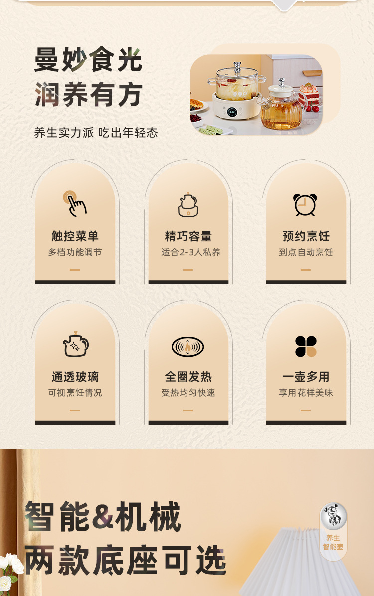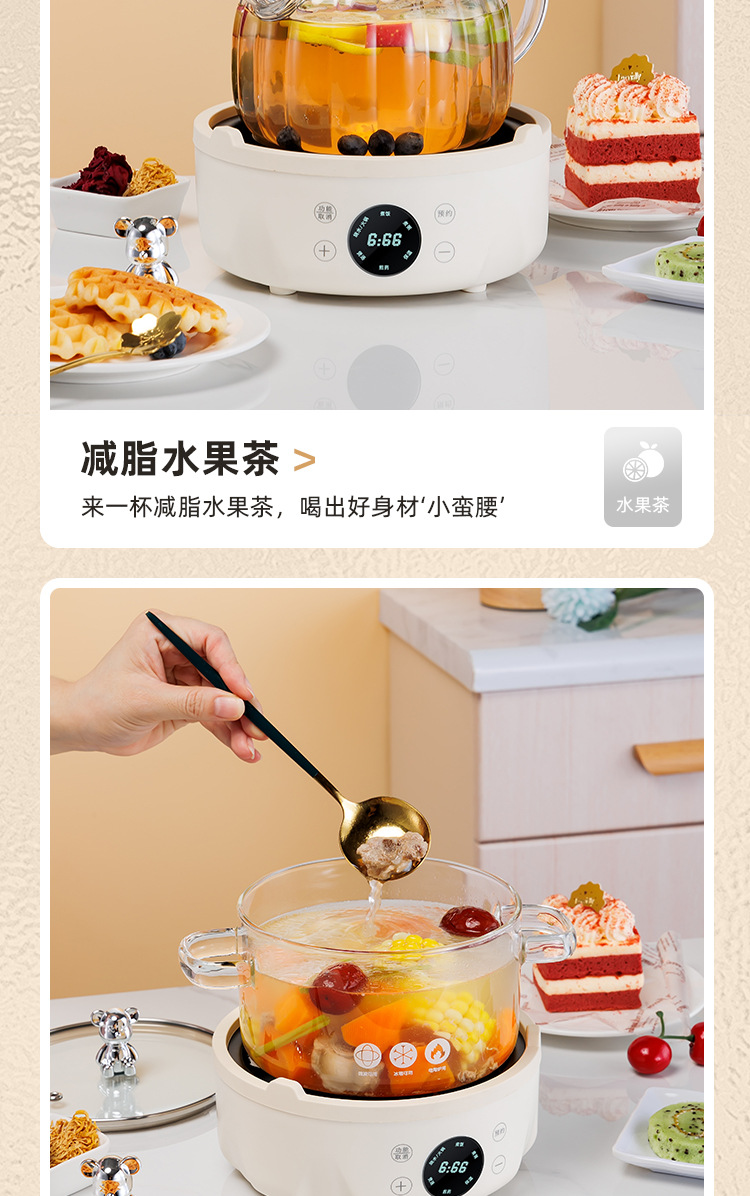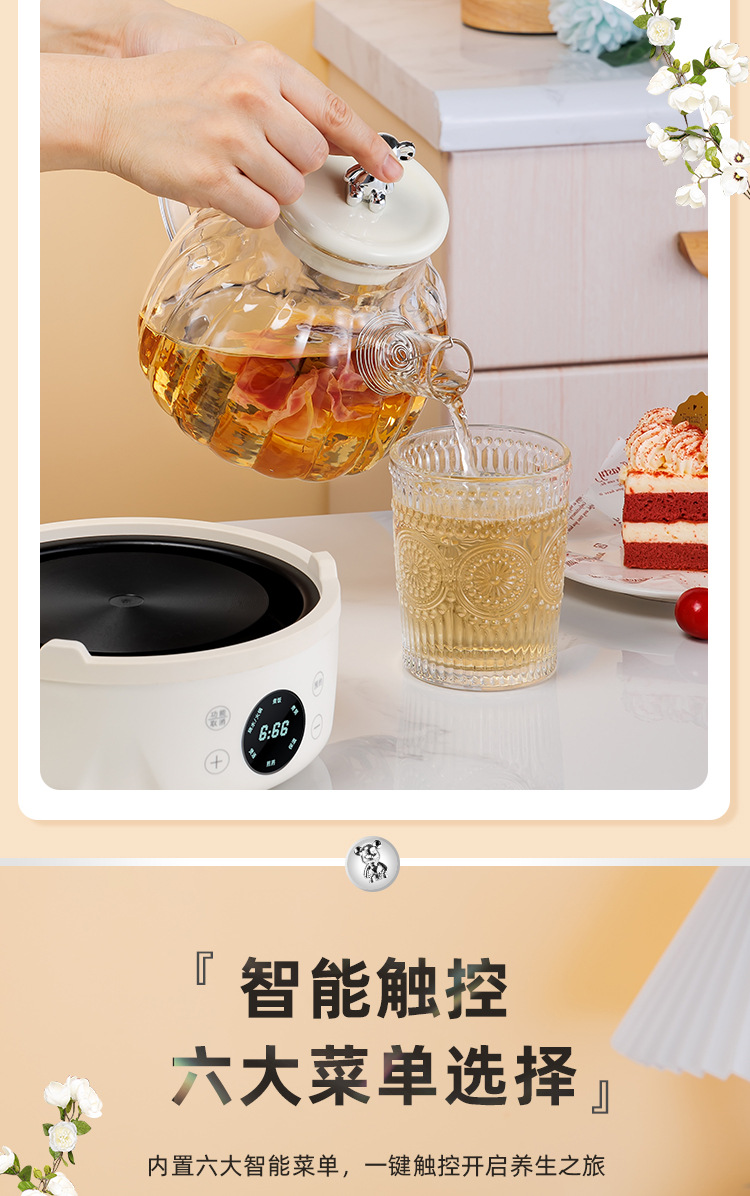 【自制下午茶!开趴养生局】养生壶多功能家用玻璃烧水壶花茶壶煮茶器小型办公室煮茶壶养生锅,内置六大智能菜单,一键触控开启养生之旅