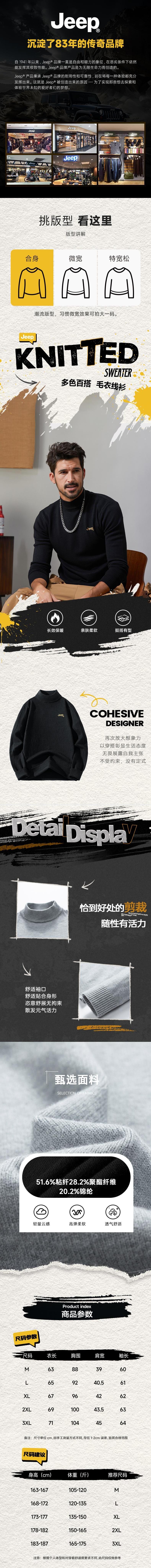 JEEP吉普 通用线衫上衣 P844MKK327