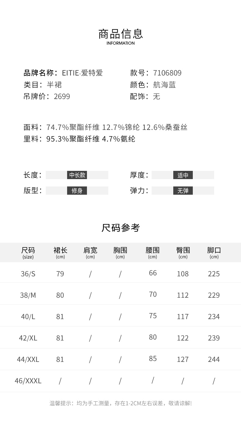 EITIE爱特爱秋季新款优雅气质A字伞裙显瘦半身裙7106809