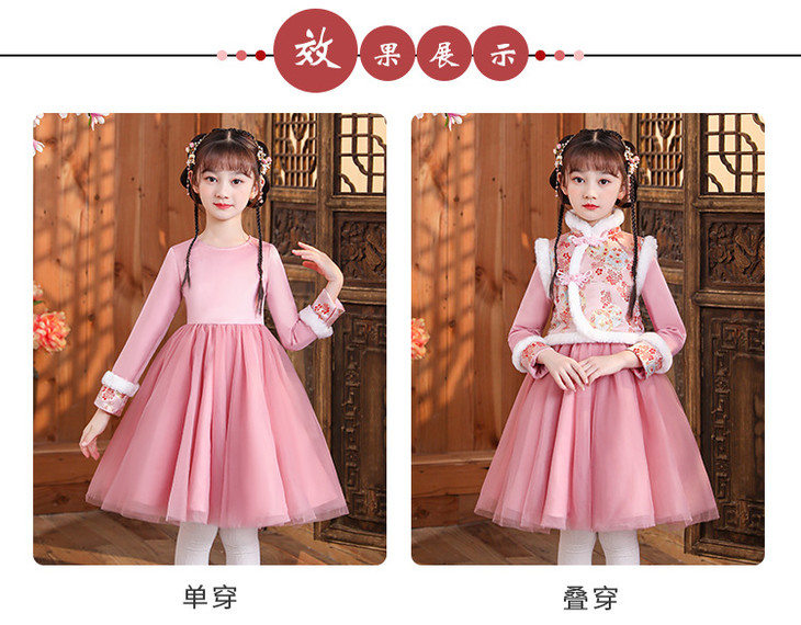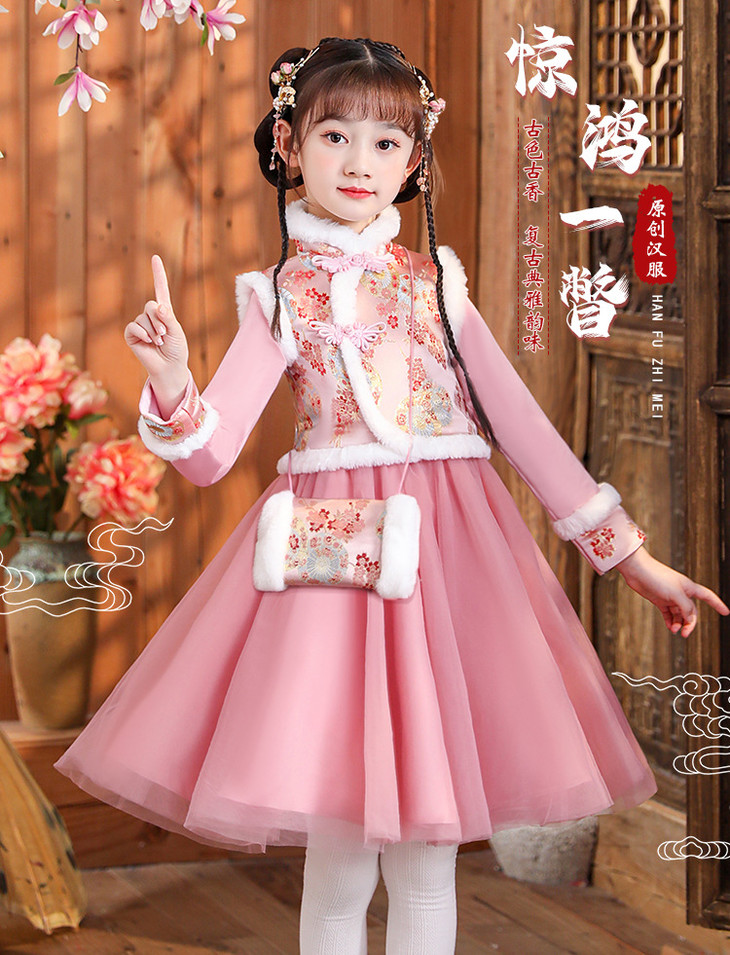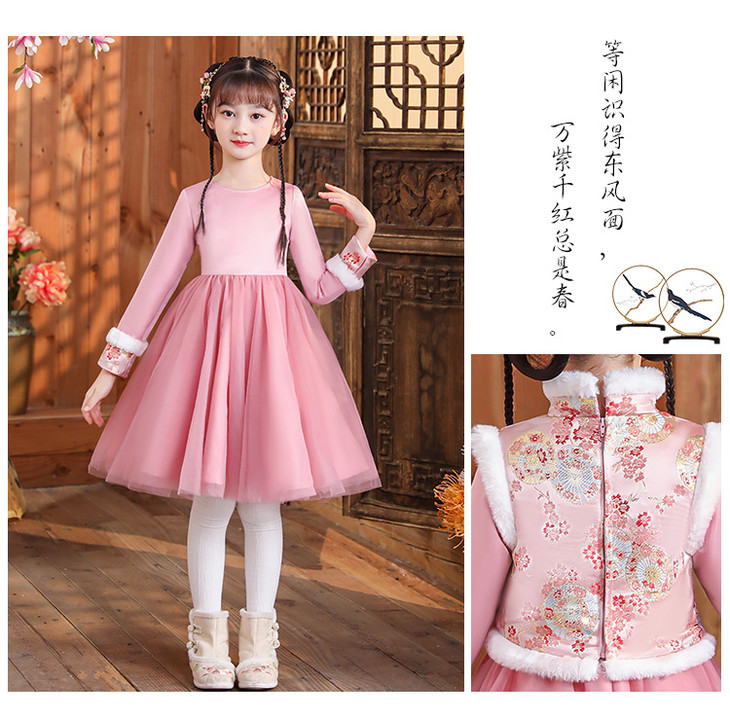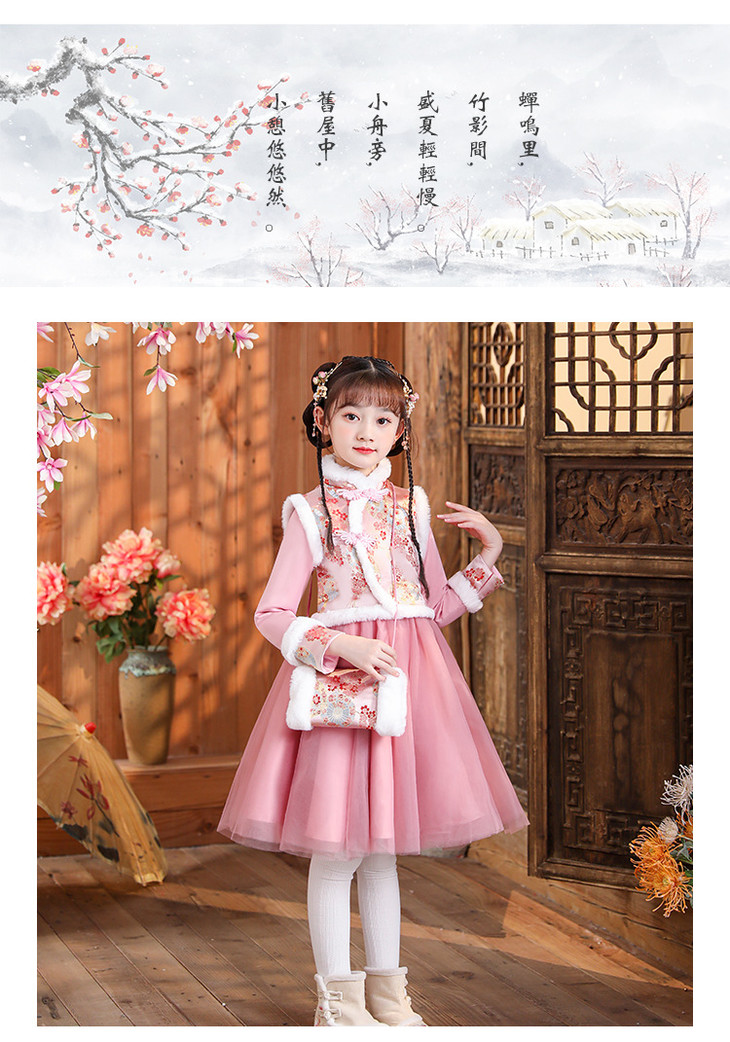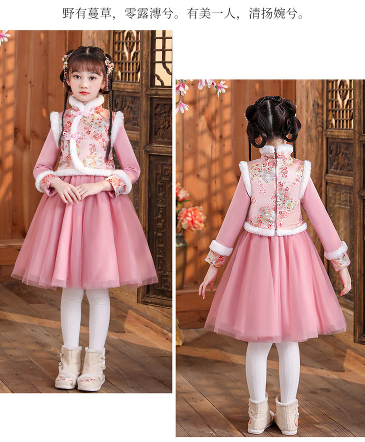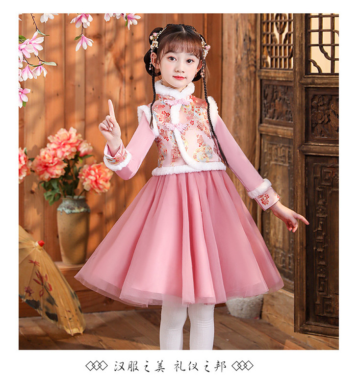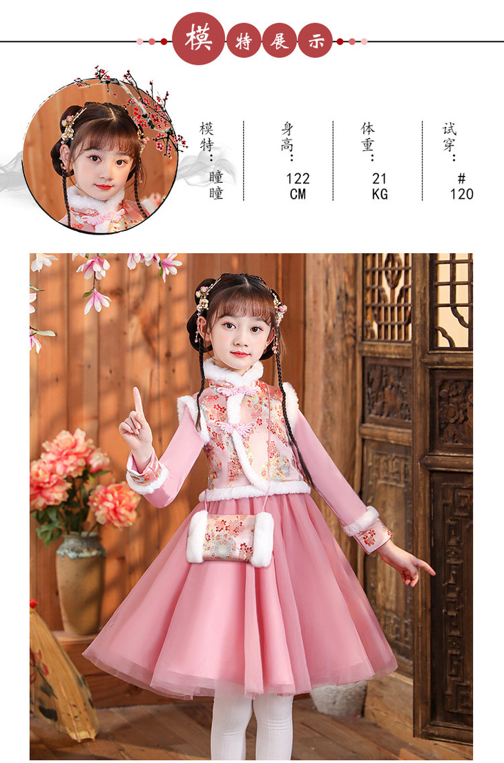 女童旗袍古装超仙加厚汉服,中国风唐装过年拜年服(送暖手包)XWN2156