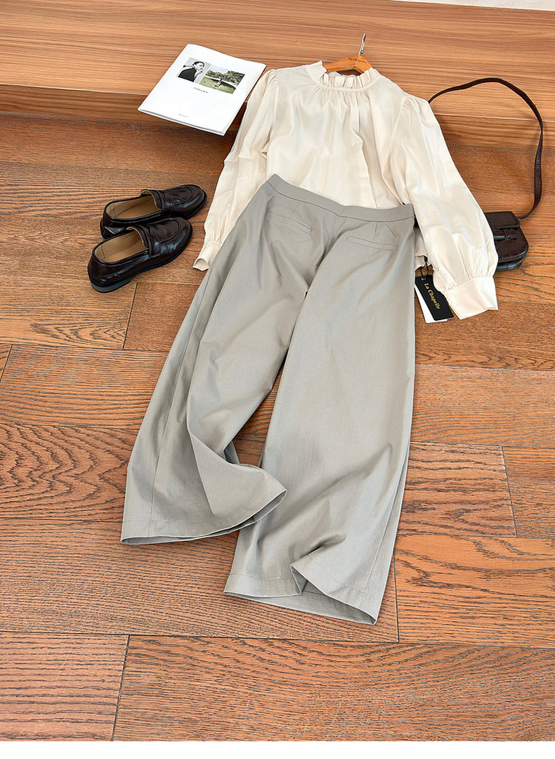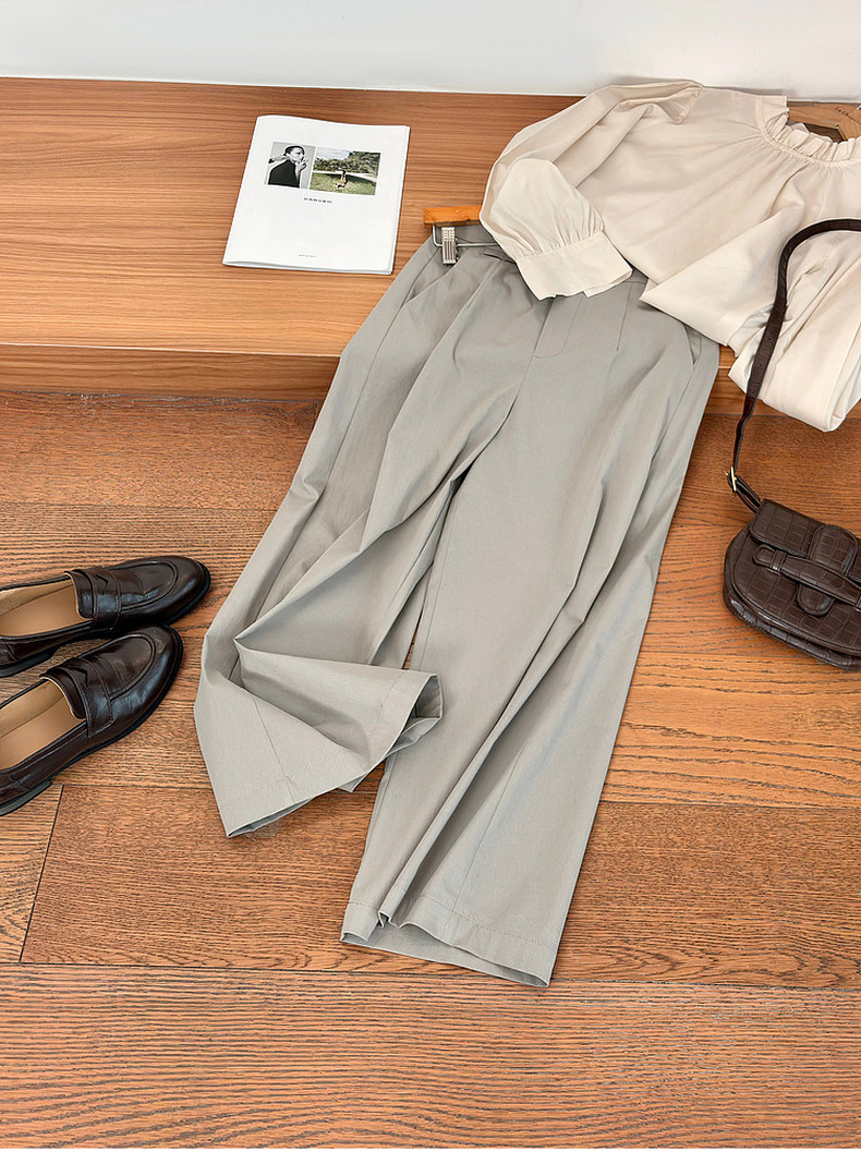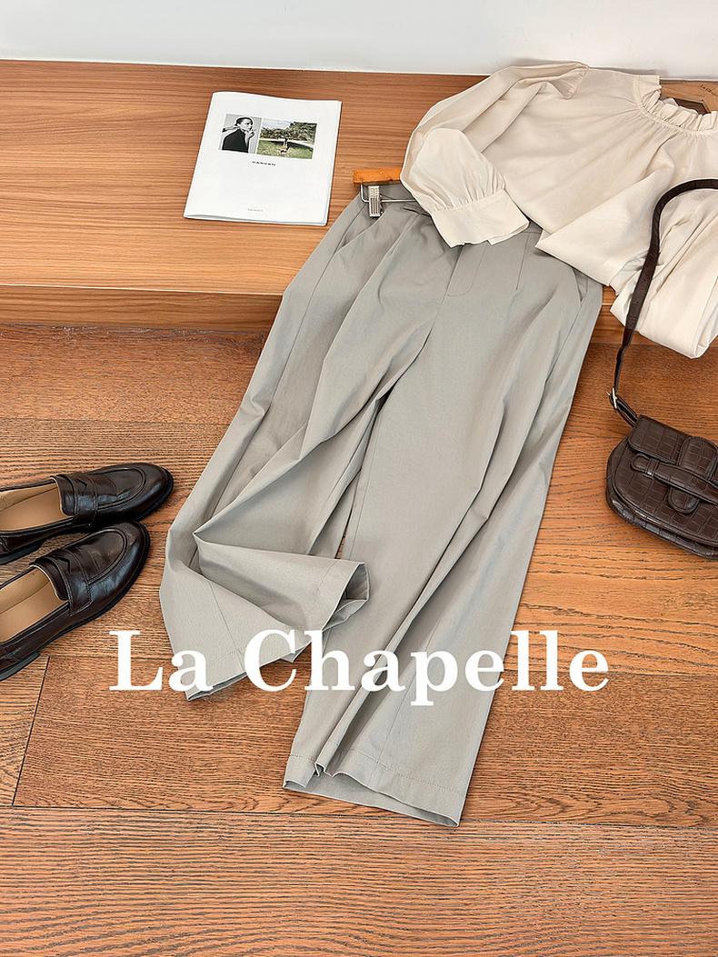 专柜实拍【遮胯显腿直】拉夏贝尔/La Chapelle春夏新款高腰宽松显瘦小个子休闲裤舒适通勤百搭