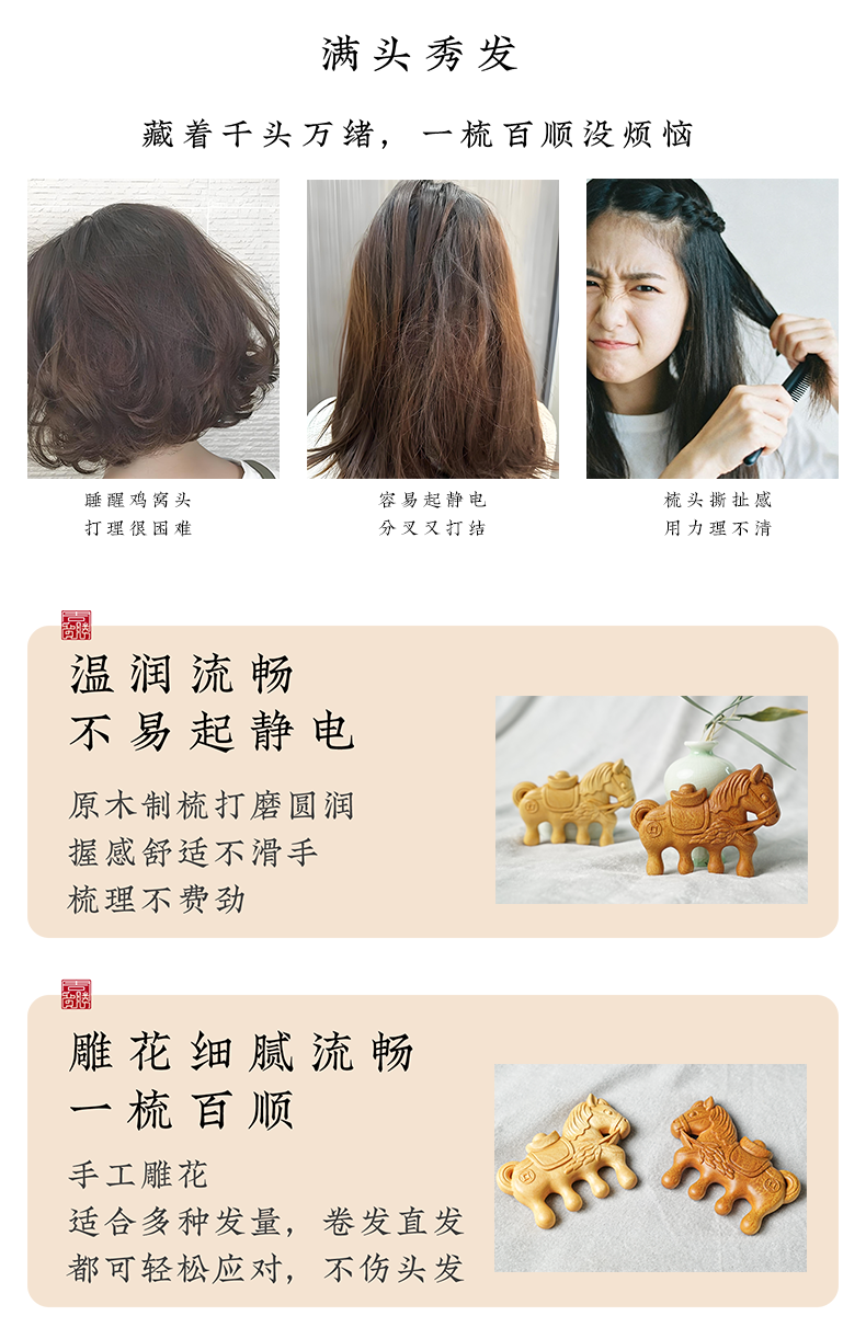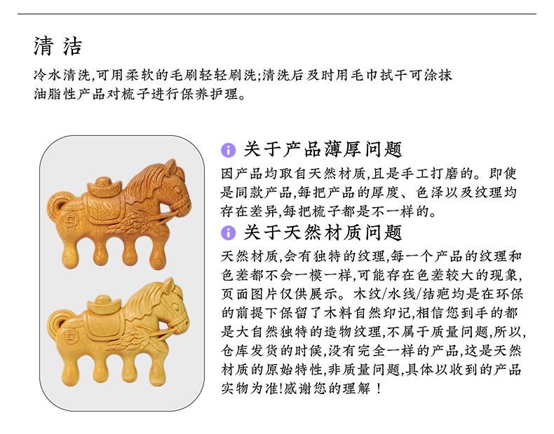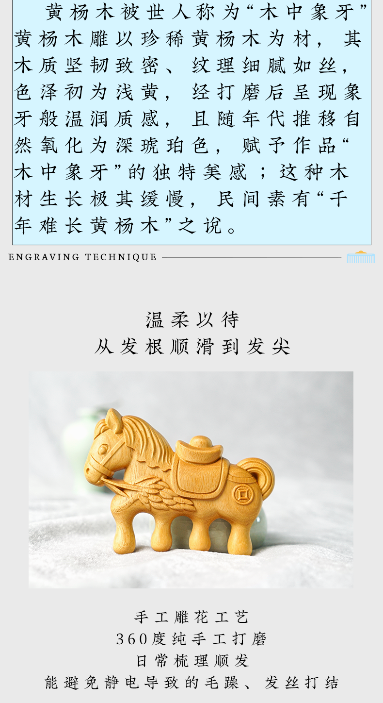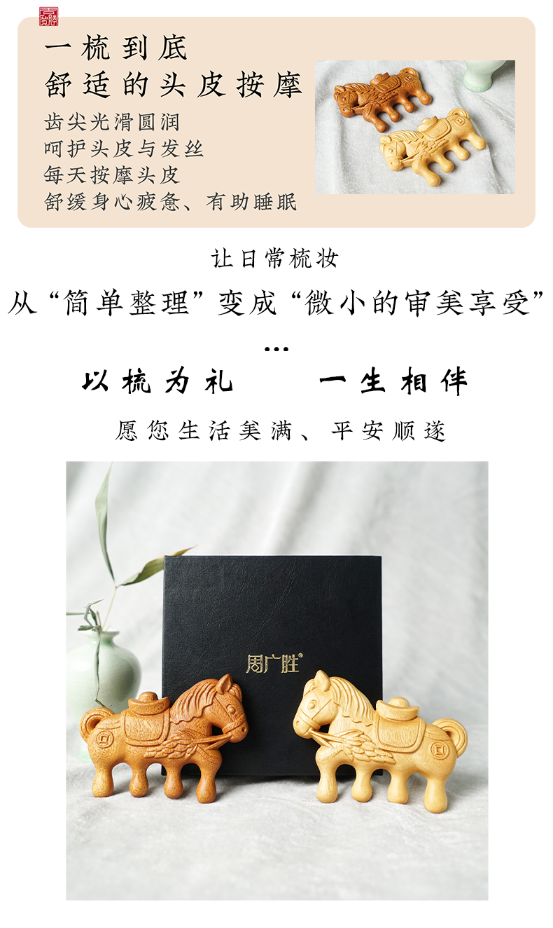 周广胜马年限定黄杨木雕刻马上有福便携实木梳子男女通用创意礼品