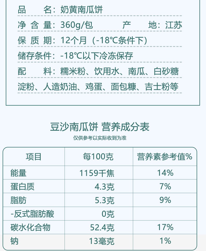 360g安井奶黄南瓜饼 早餐下午茶甜品点心