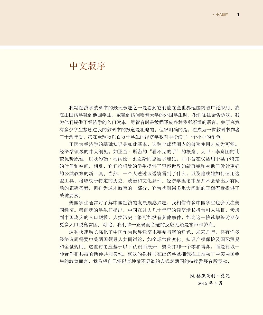 经济学是一门可以用很少的知识解释很多现象的学科。经济学家看待世界的方式是非常独特的,而其中很多思维方式不需要太多时间就可以掌握。曼昆的《经济学原理》的目标就是把这种思维方式传达给尽可能广泛的读者。