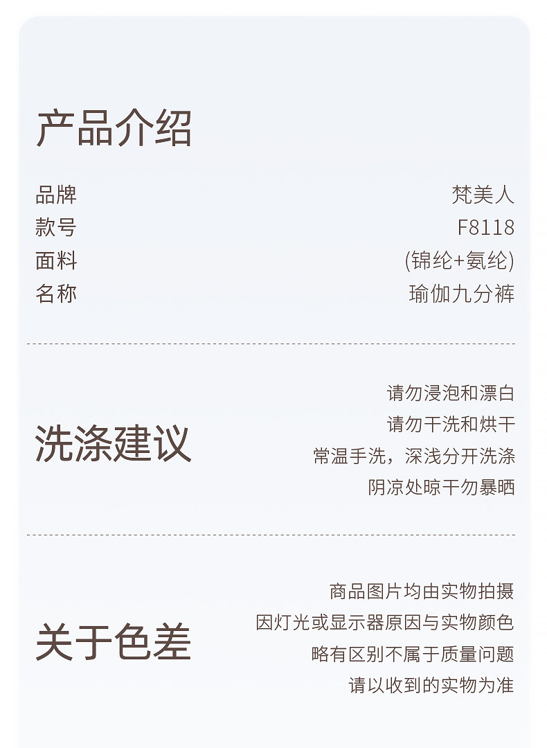 梵美人 F8095 瑜伽九分裤 莱卡云柔 无松紧 无尴尬线