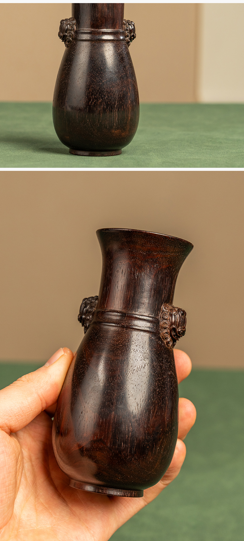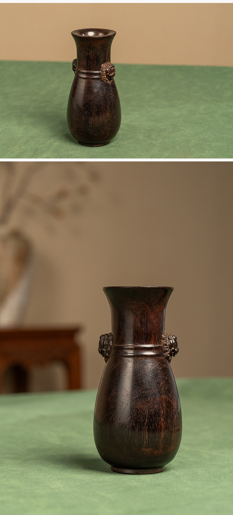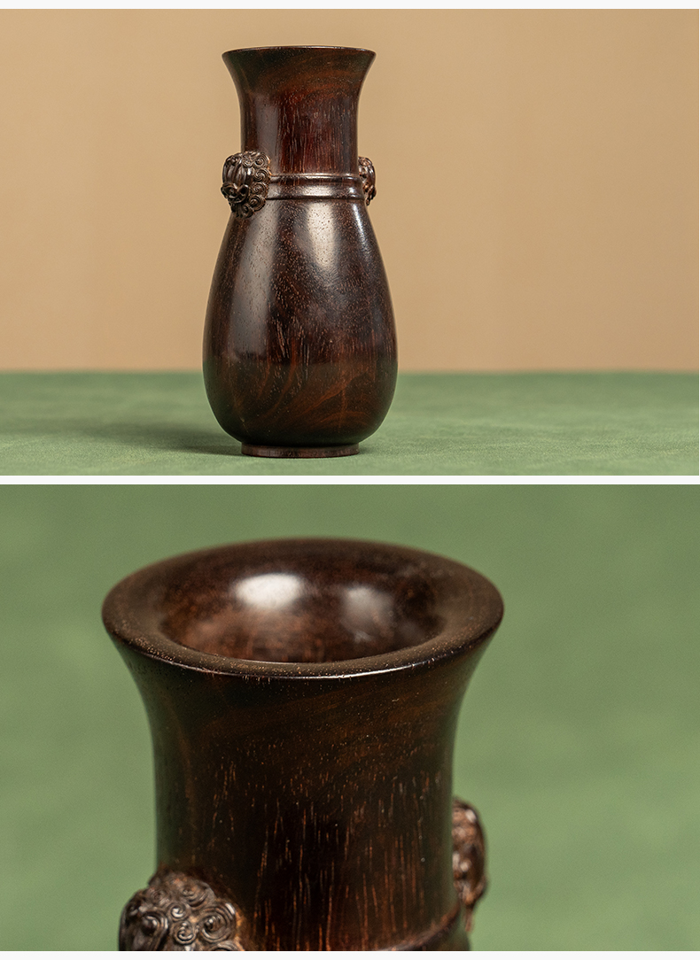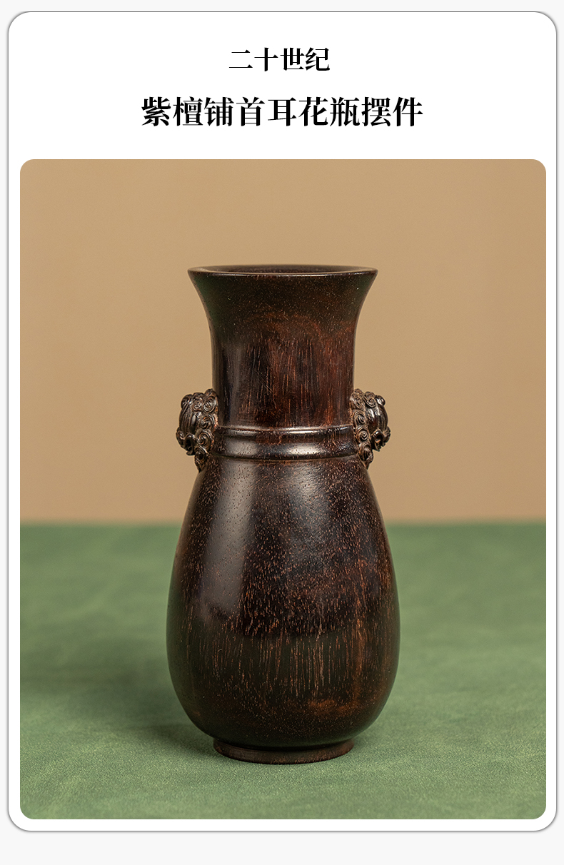 二十世纪 紫檀铺首耳花瓶摆件