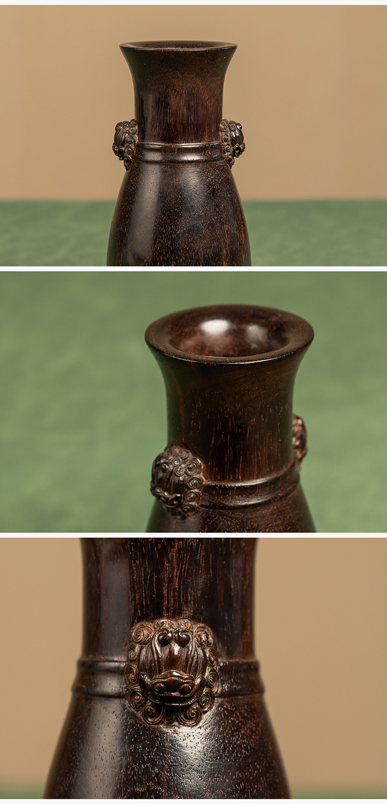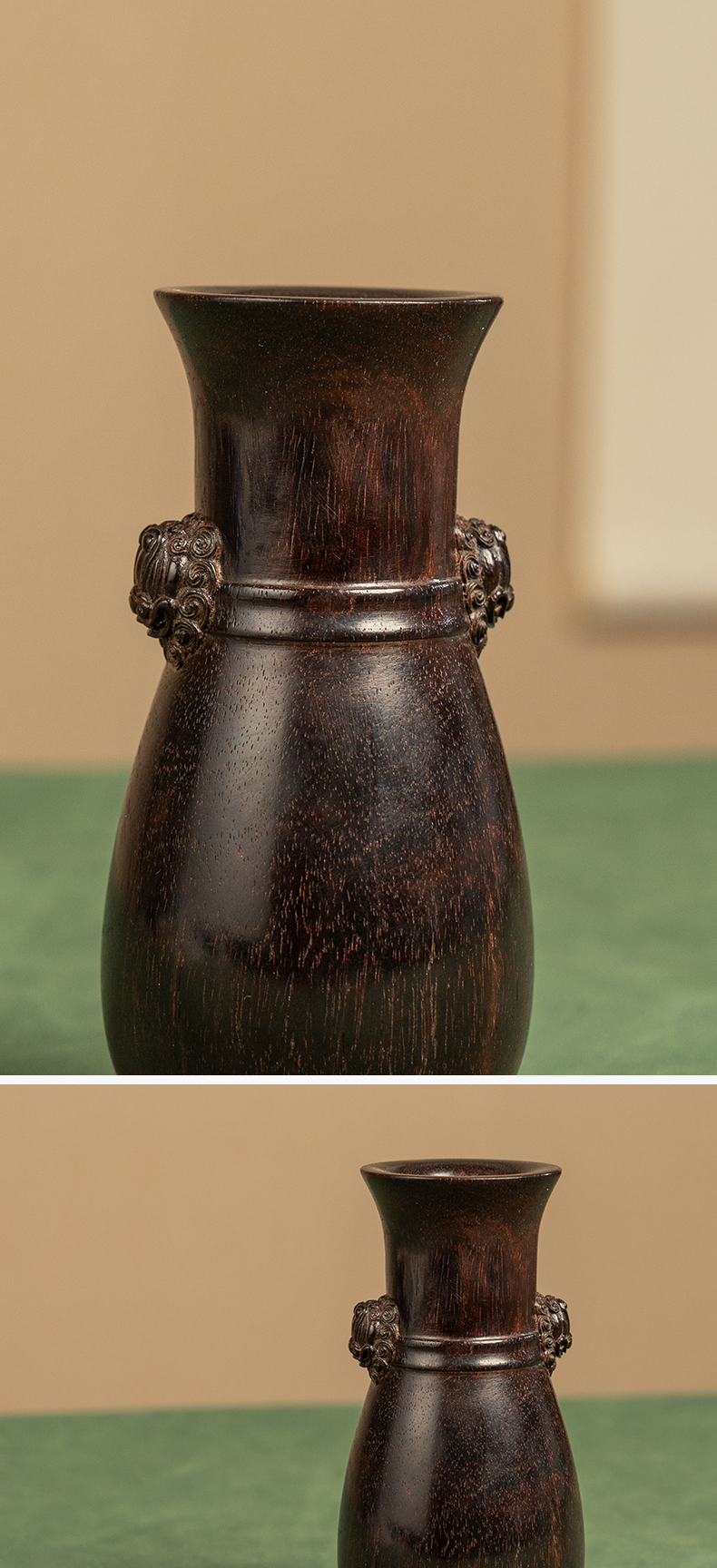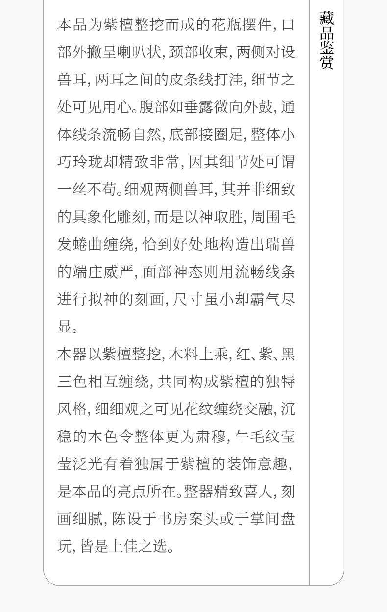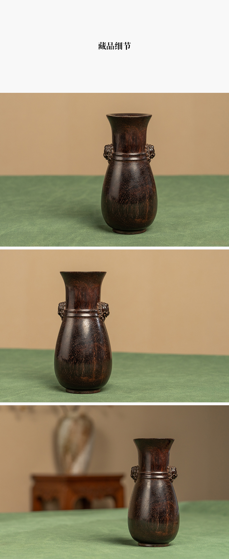 二十世纪 紫檀铺首耳花瓶摆件