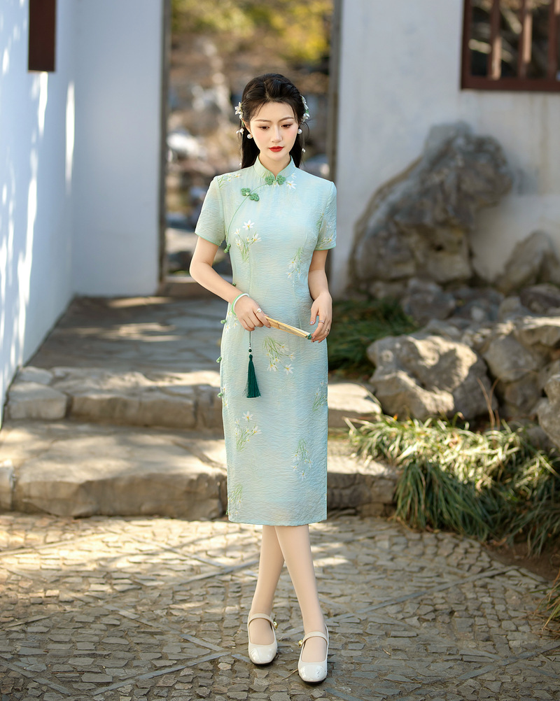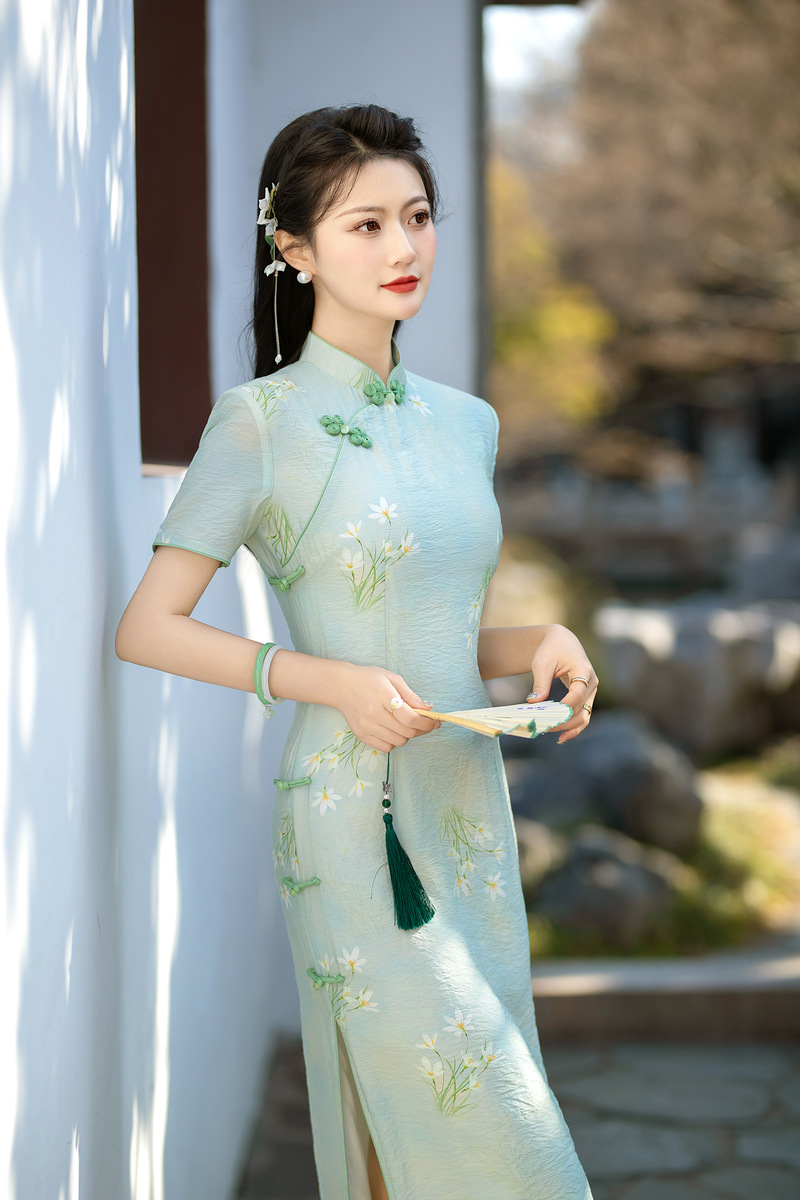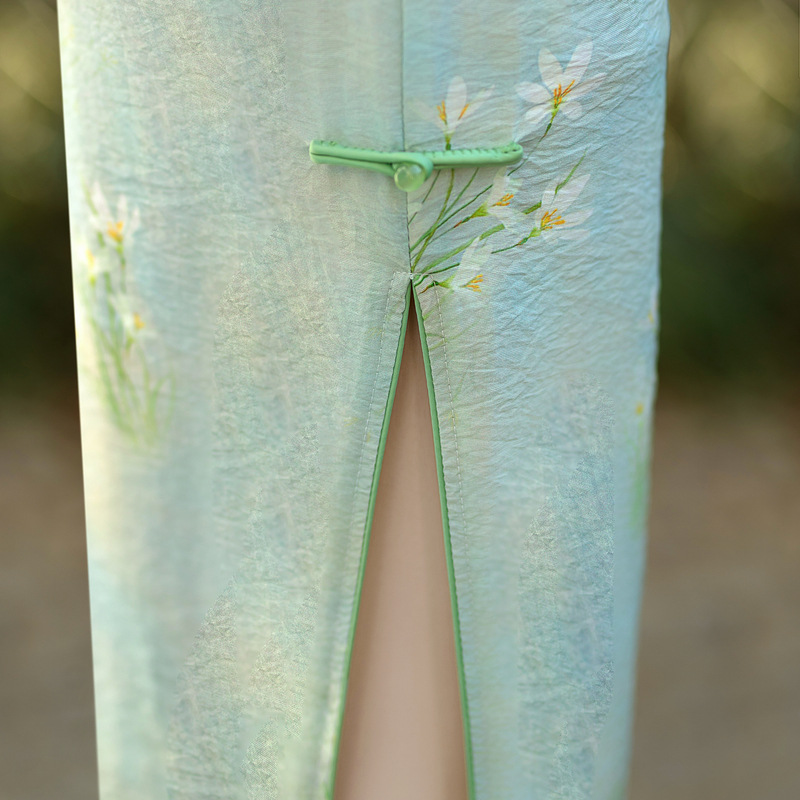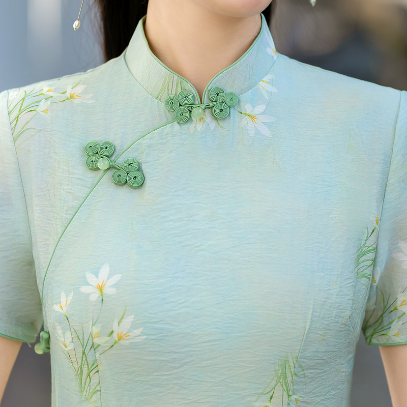 ZAYS-210春季新款中长天丝麻少女旗袍日常修身素雅改良旗袍