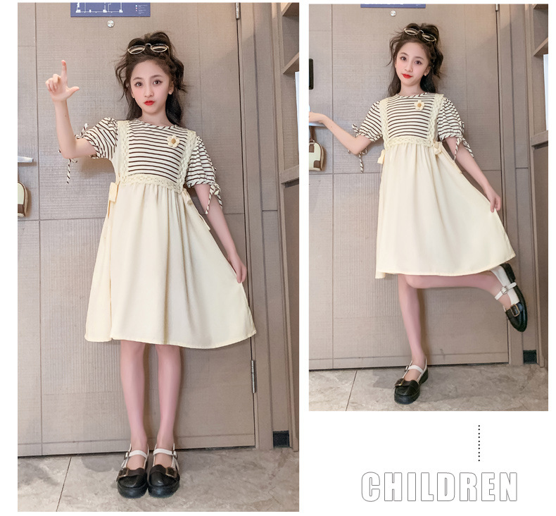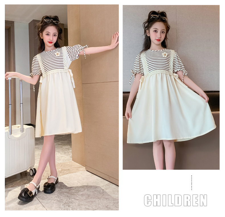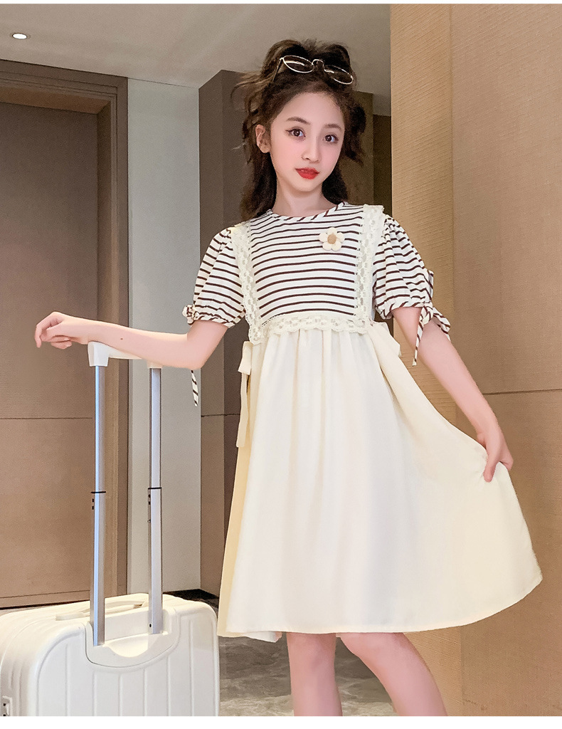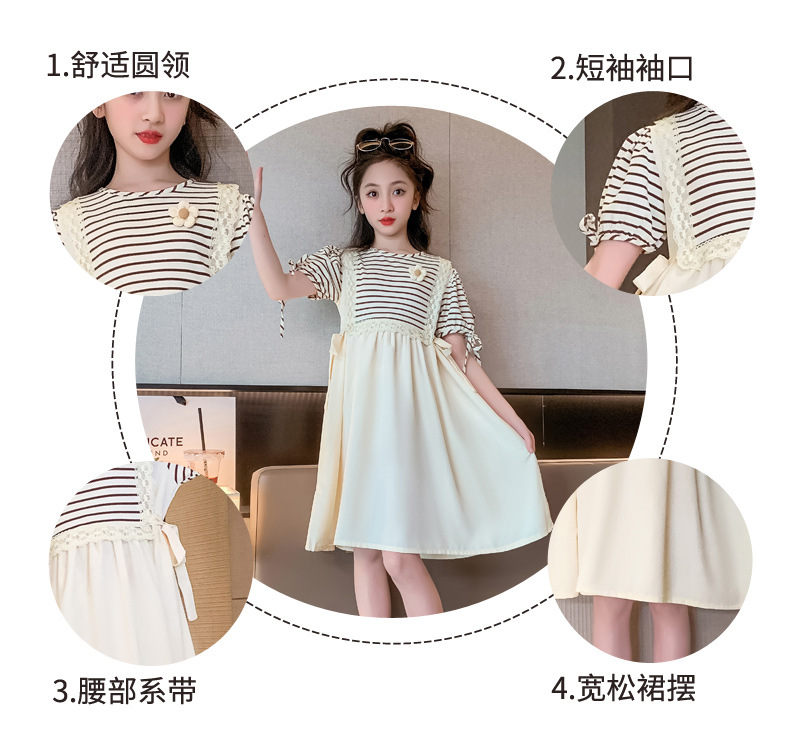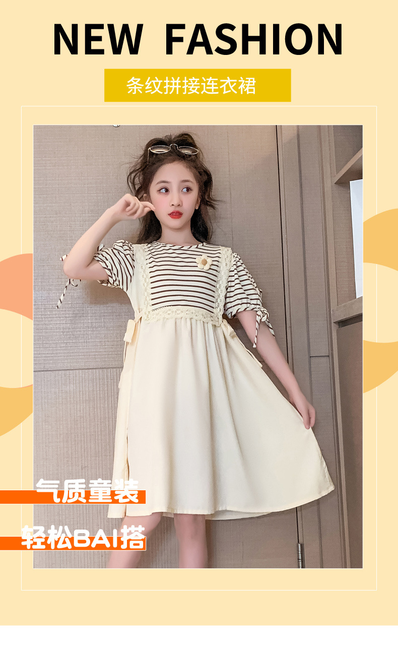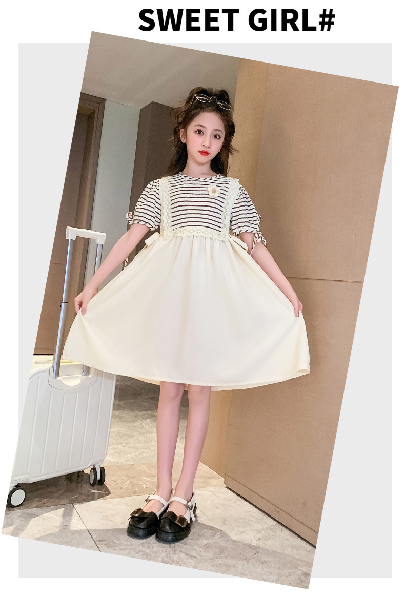 【女童夏装连衣裙2023新款大儿童公主裙】时髦夏季小孩条纹裙子洋气,演绎百变时尚,轻松搭配,让孩子成为夏日的焦点。条纹元素,洋气潮流,展示独特个性。