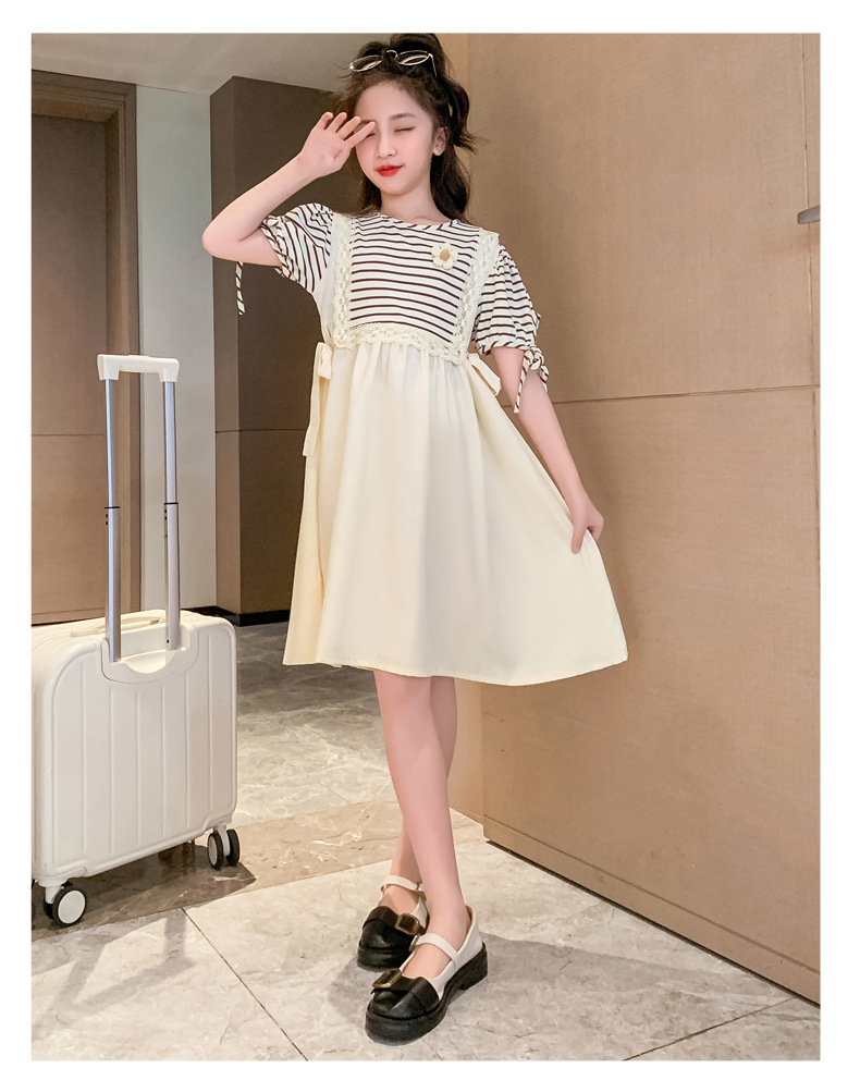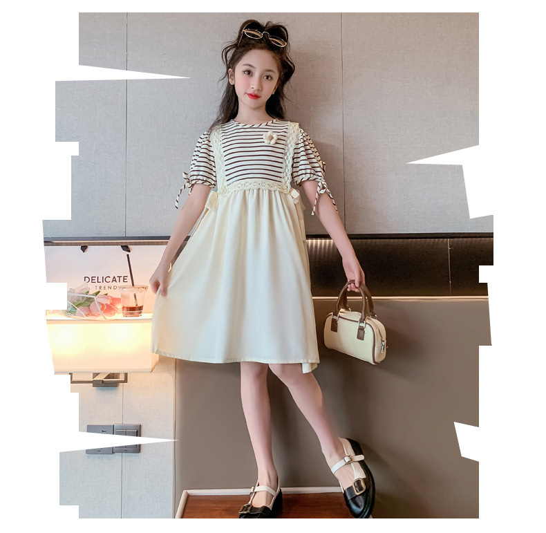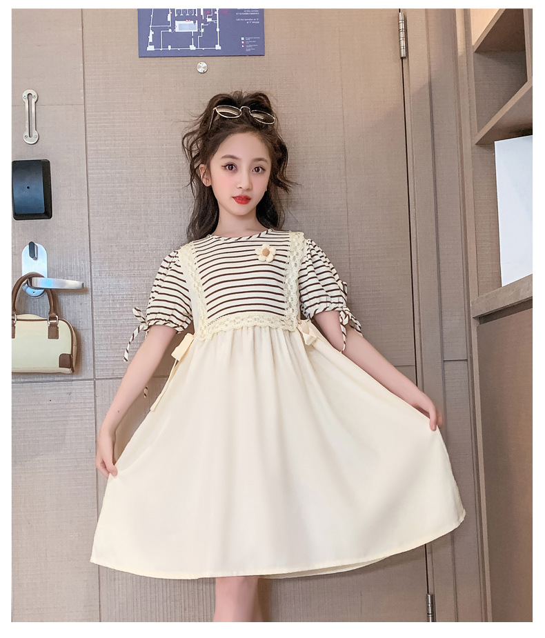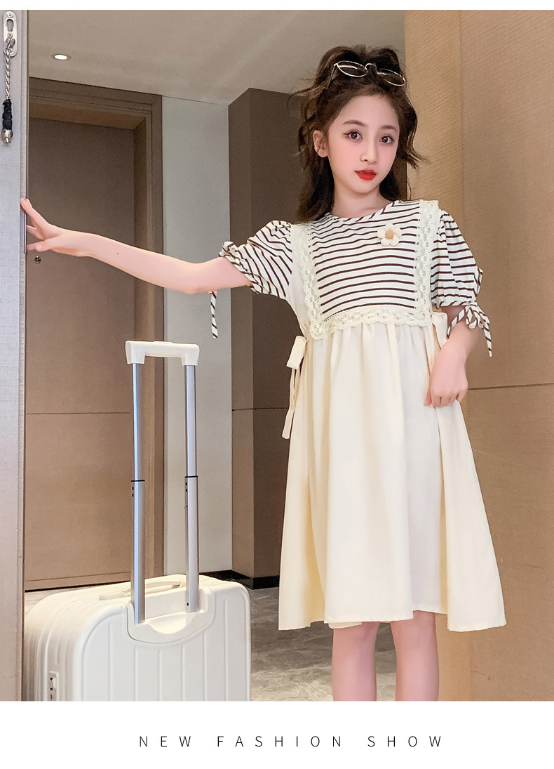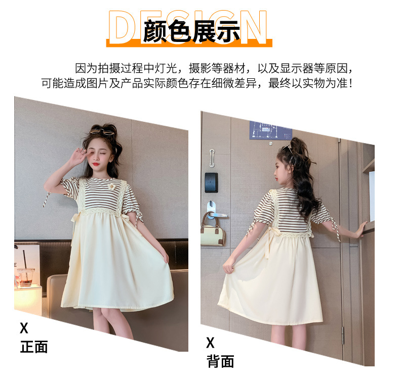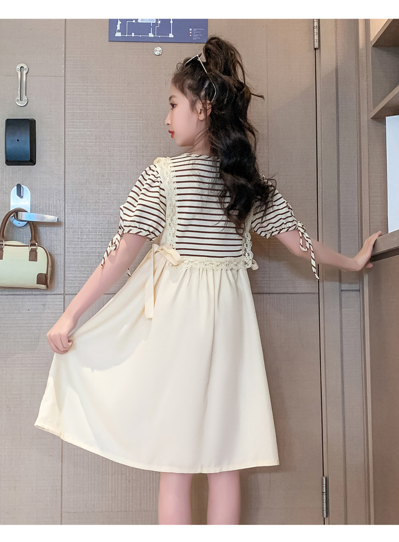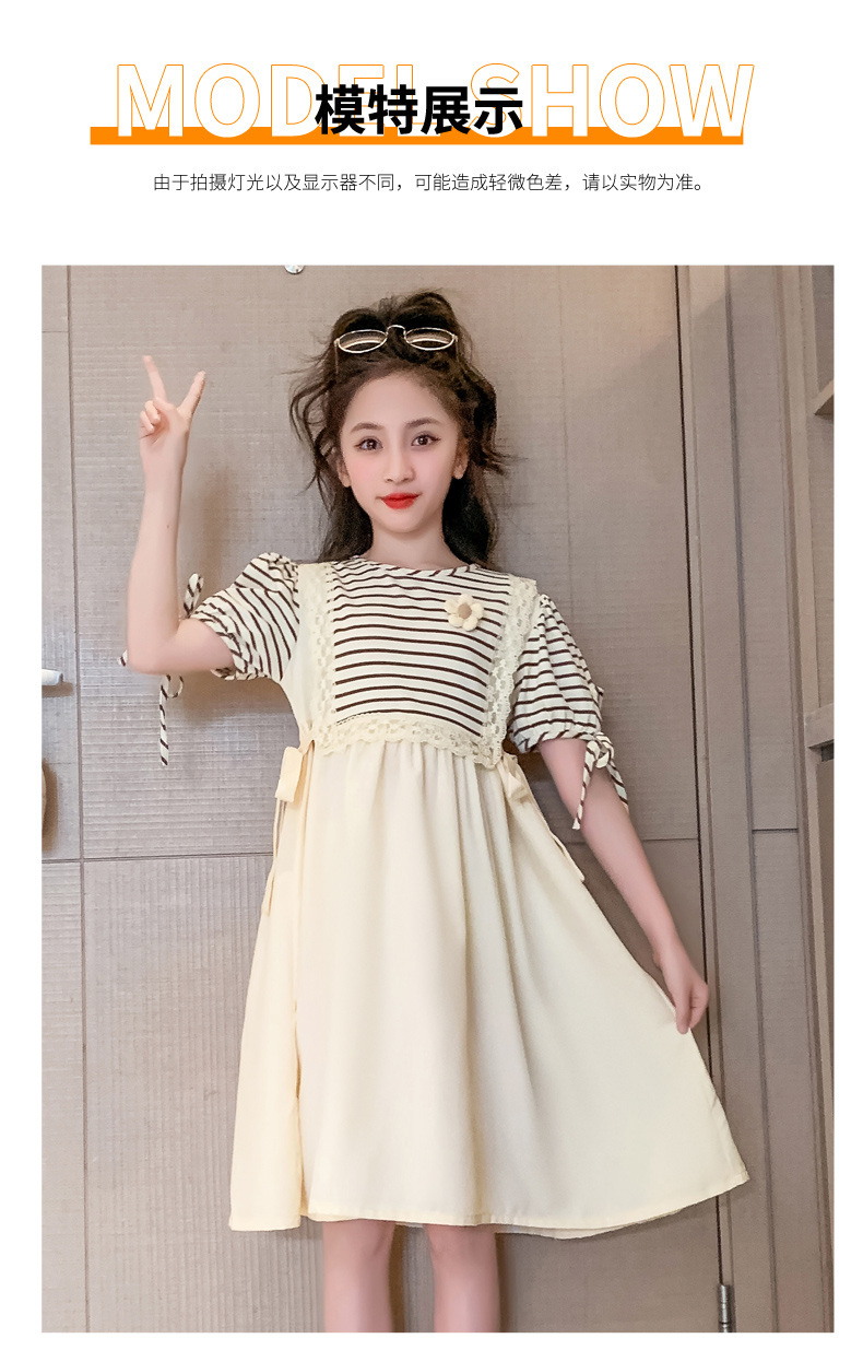 【女童夏装连衣裙2023新款大儿童公主裙】时髦夏季小孩条纹裙子洋气,演绎百变时尚,轻松搭配,让孩子成为夏日的焦点。条纹元素,洋气潮流,展示独特个性。