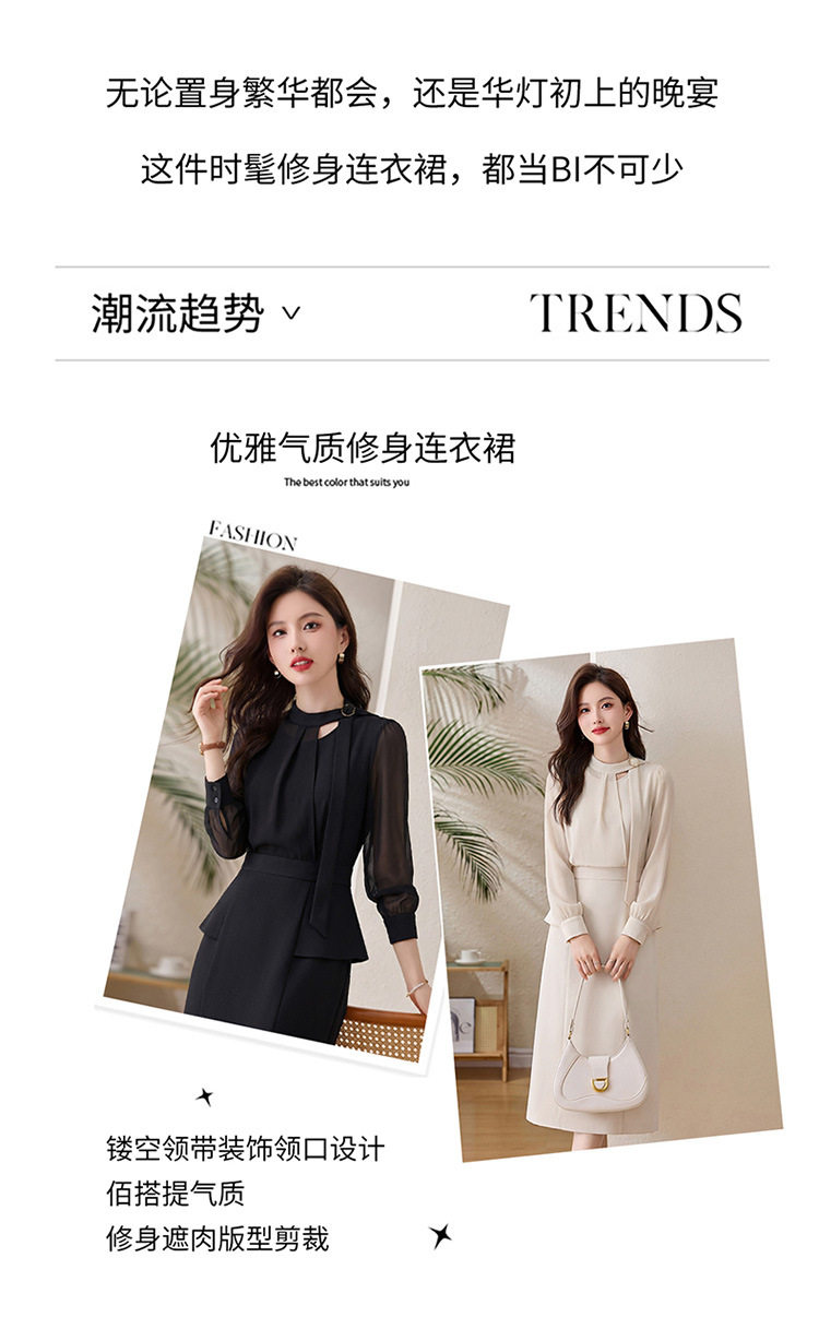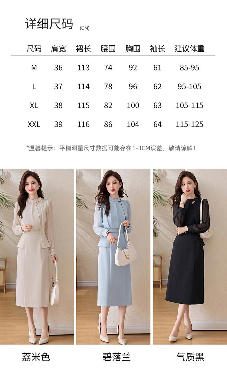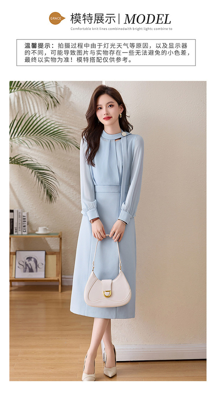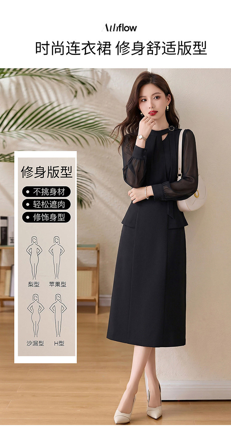 「自」全新升级【铂金会员349/天猫469/差价120】(72118)洛诗琳设计感假两件连衣裙女2026春季新款气质收腰中长裙