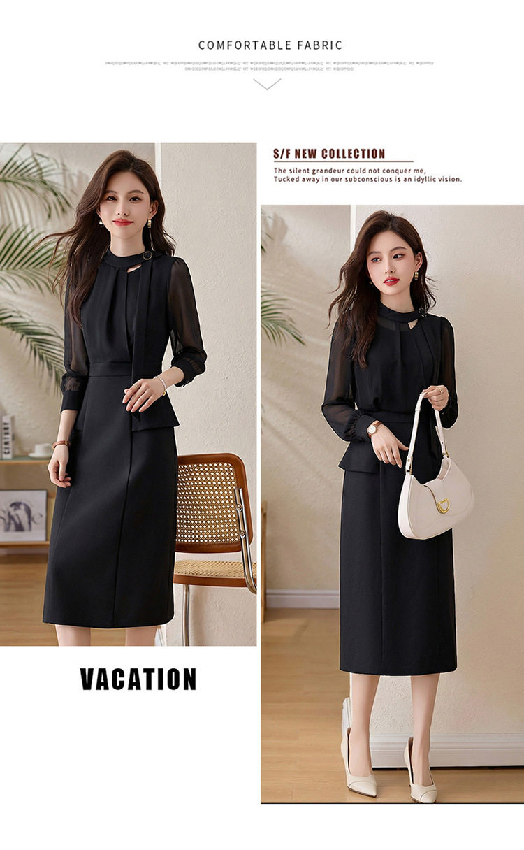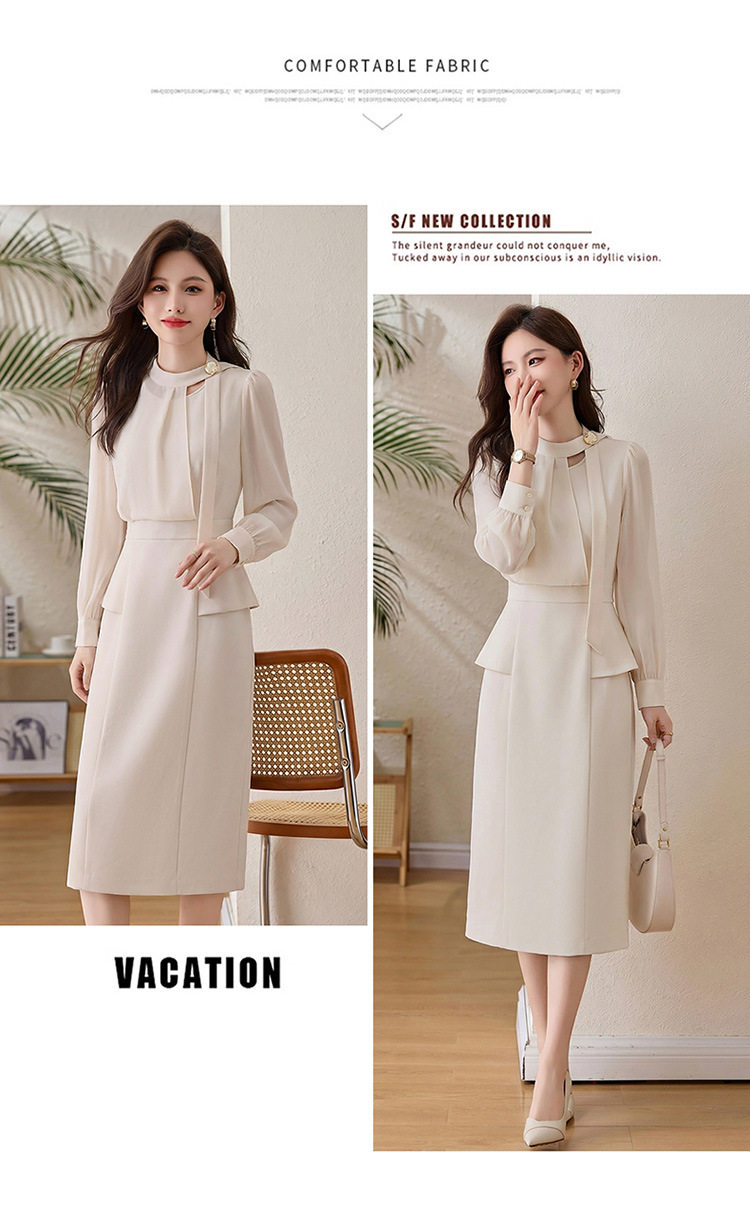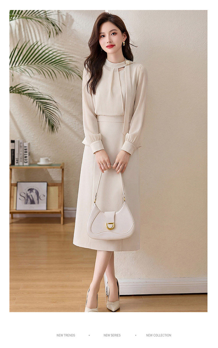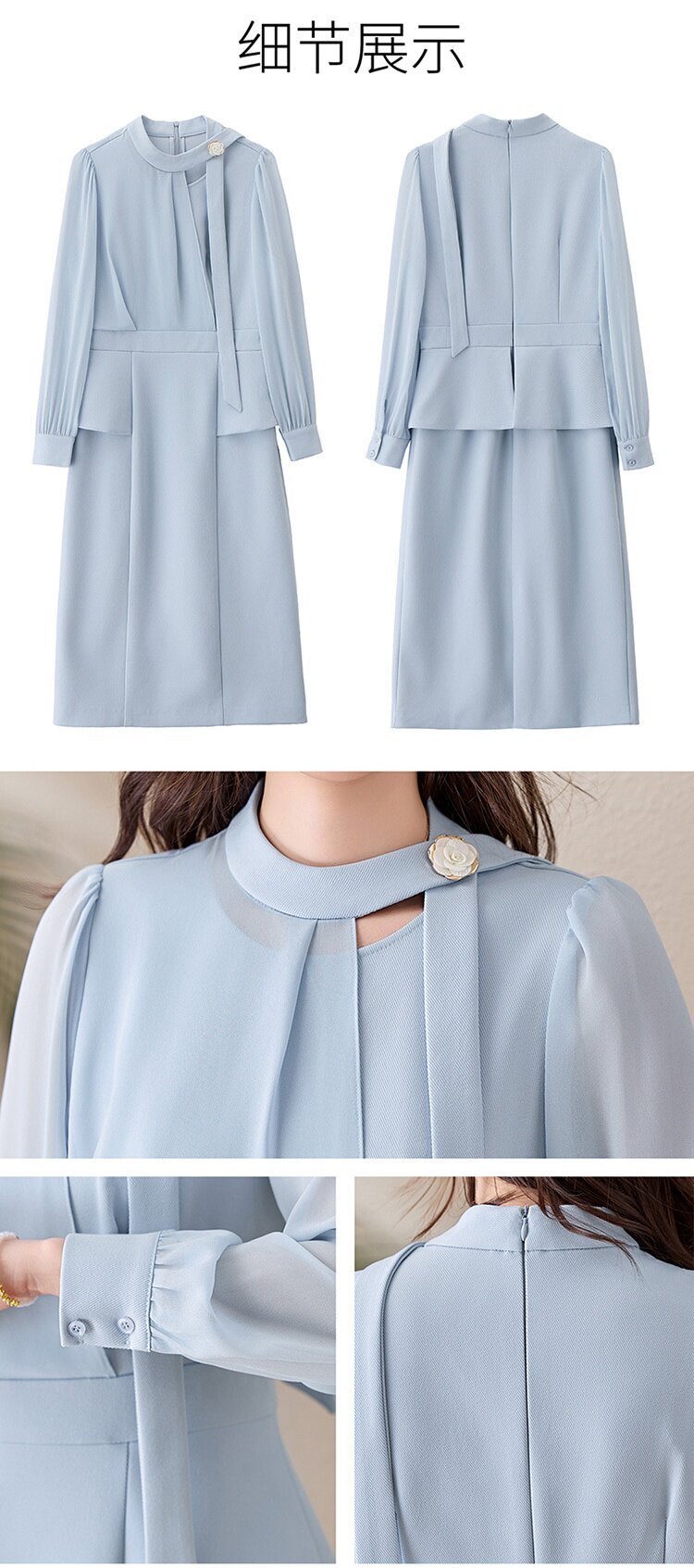 「自」全新升级【铂金会员349/天猫469/差价120】(72118)洛诗琳设计感假两件连衣裙女2026春季新款气质收腰中长裙