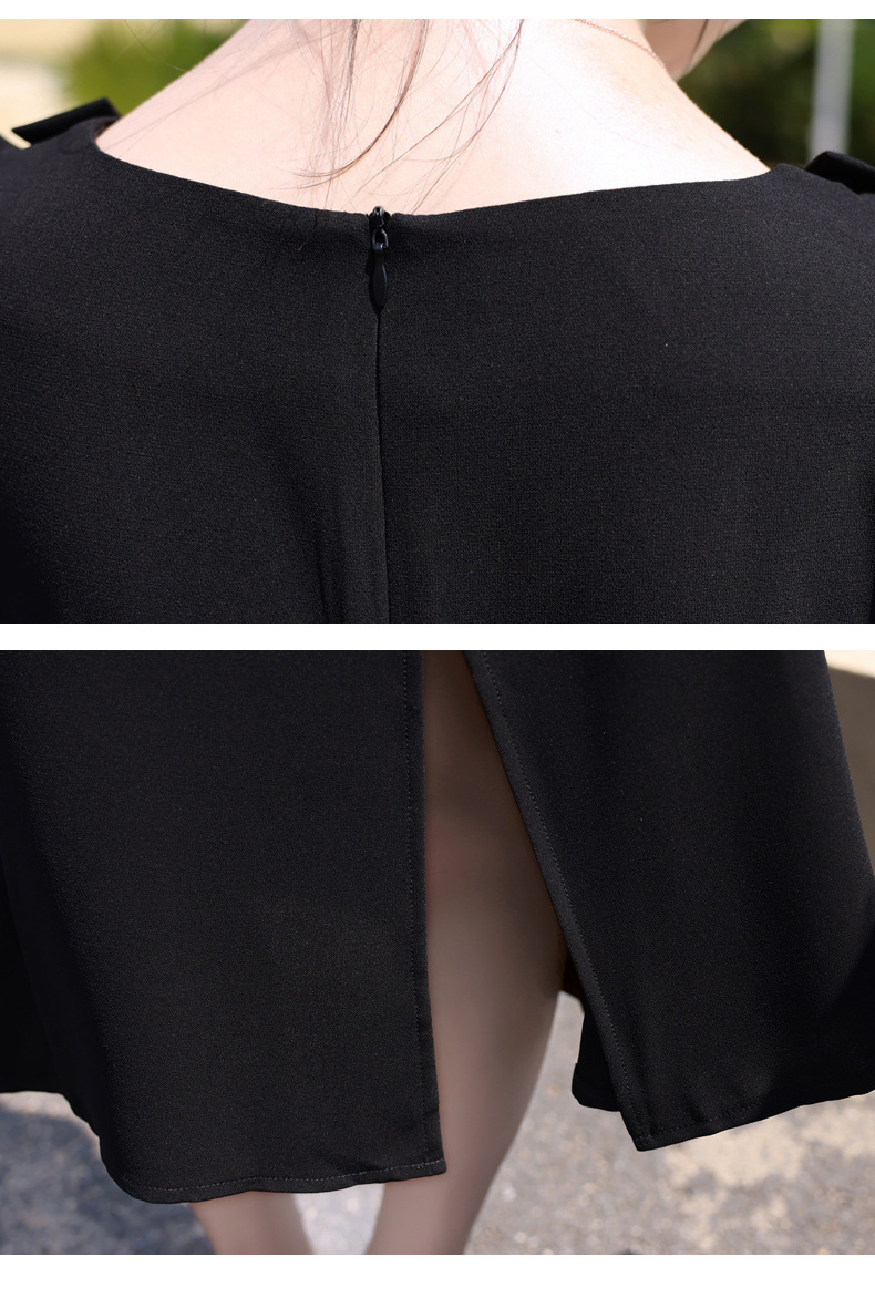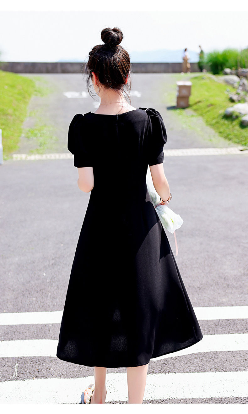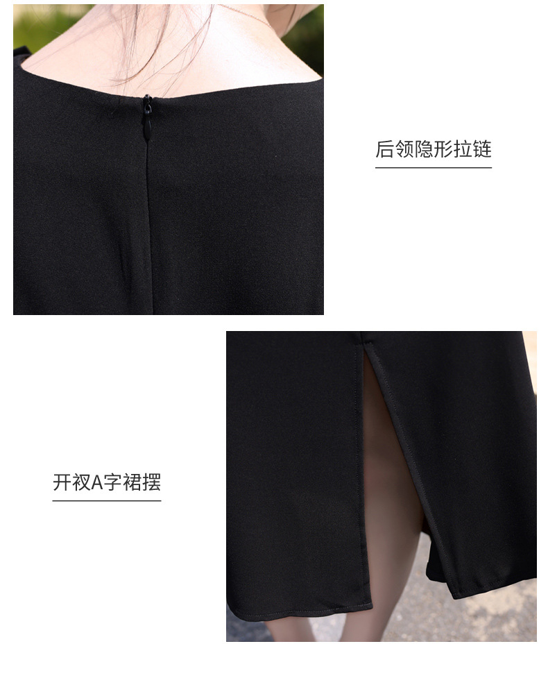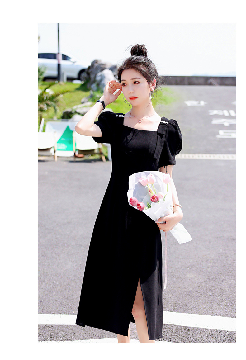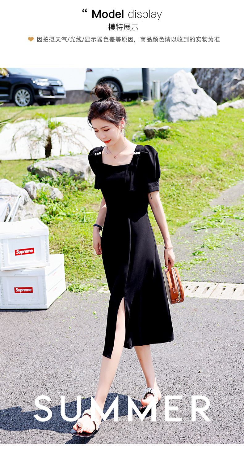 时尚收腰显瘦,法式开叉方领感气质黑色连衣裙HR-875