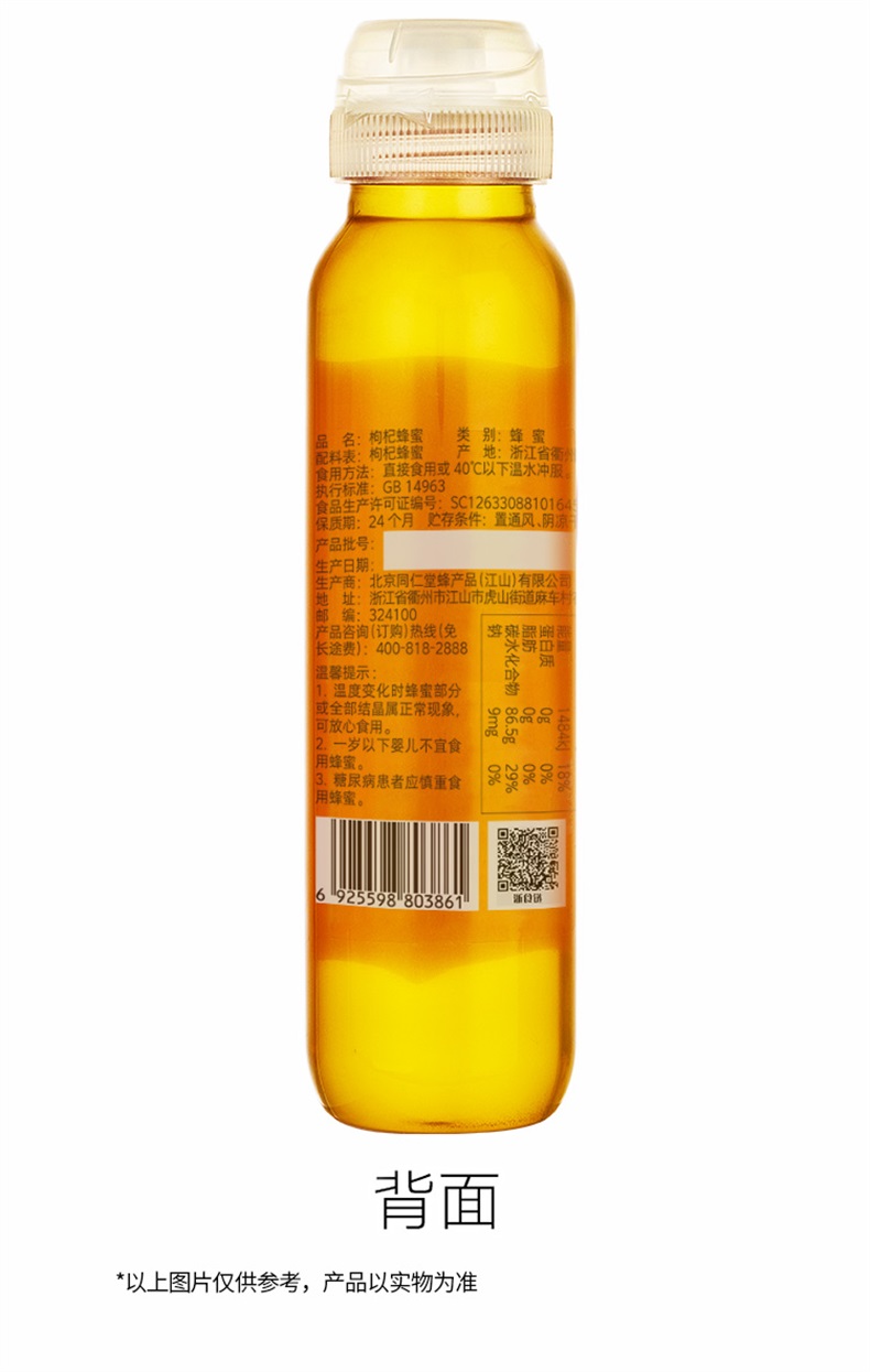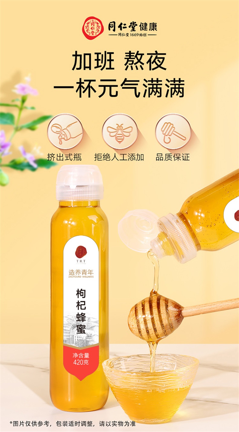 【正宗同仁堂品牌】北京同仁堂 枸杞蜂蜜420克 清香怡人 纯蜂蜜拒绝添加掺杂 浓稠滋补 便携小瓶装挤压不沾手SY