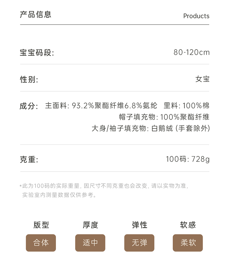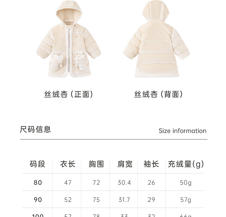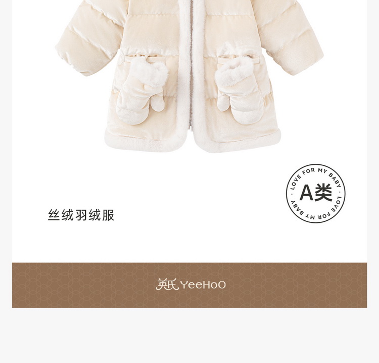 【商场同款】英氏儿童鹅绒羽绒服女冬季保暖丝绒羽绒服带手套超韧绒