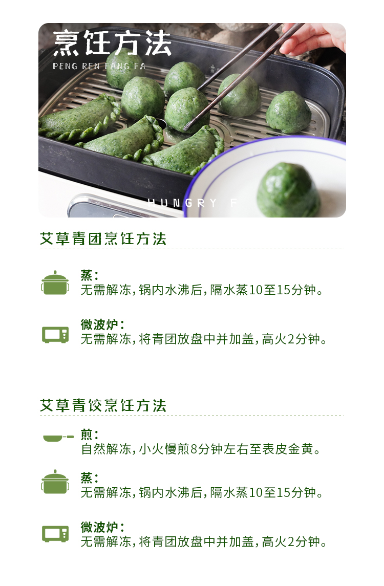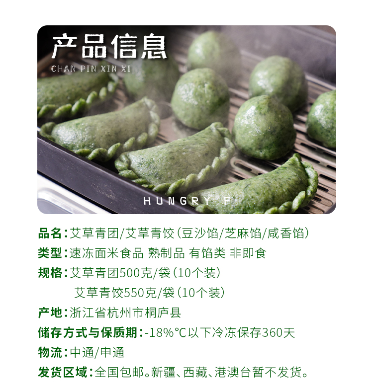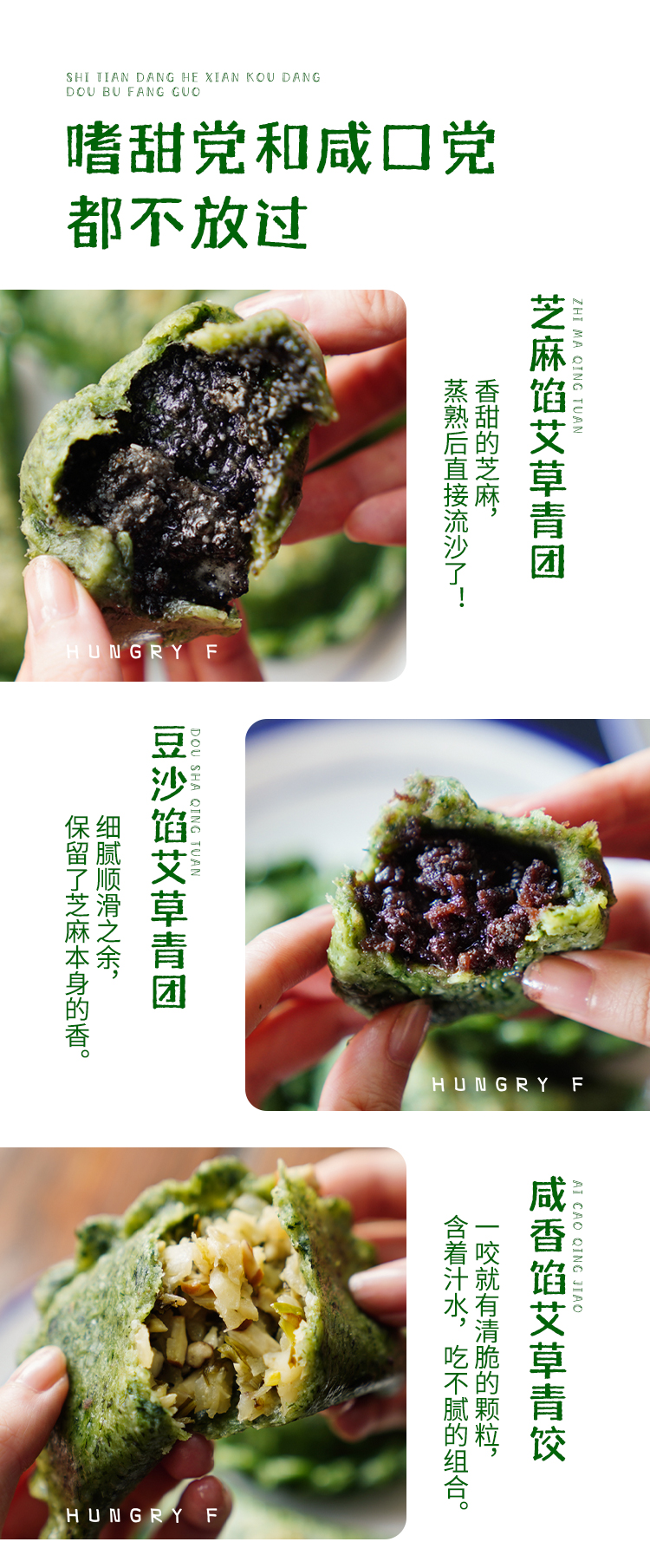 【饥饿F姐·江南手工艾草青团】(10个装)豆沙/芝麻/咸香清明饺