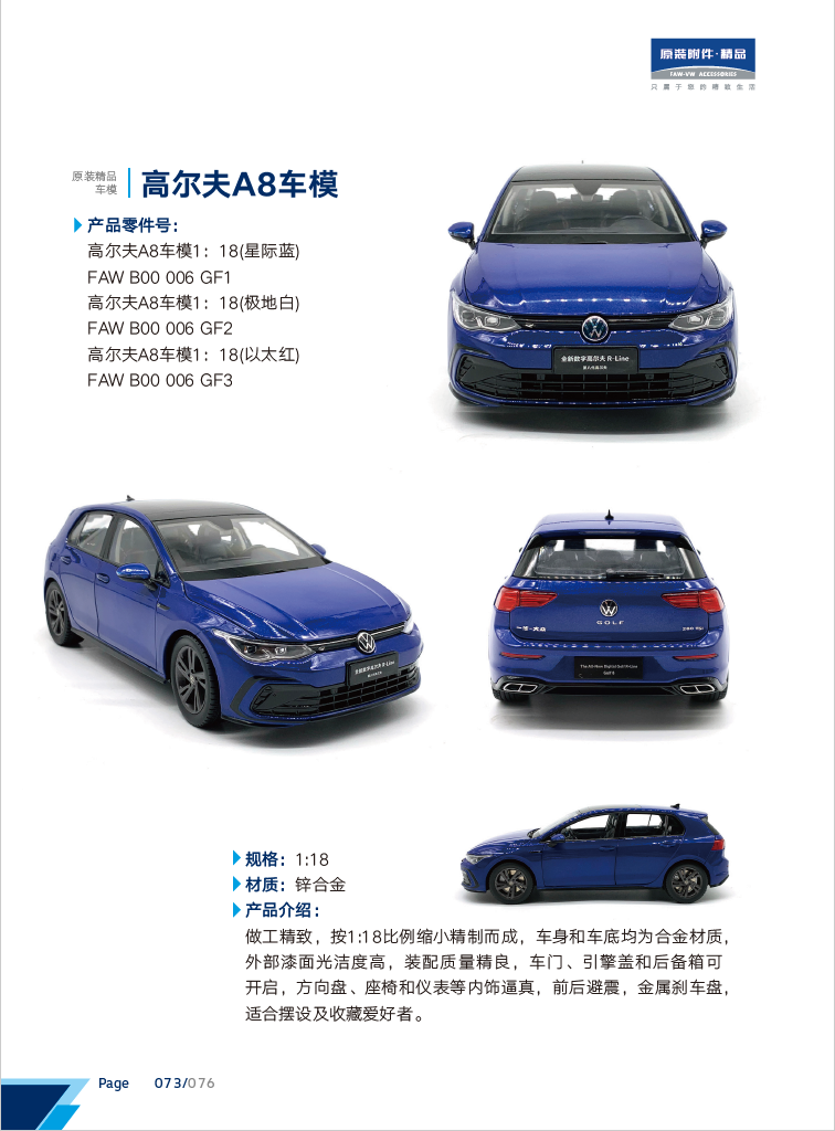 高尔夫A8车模1:18
