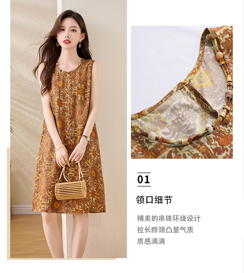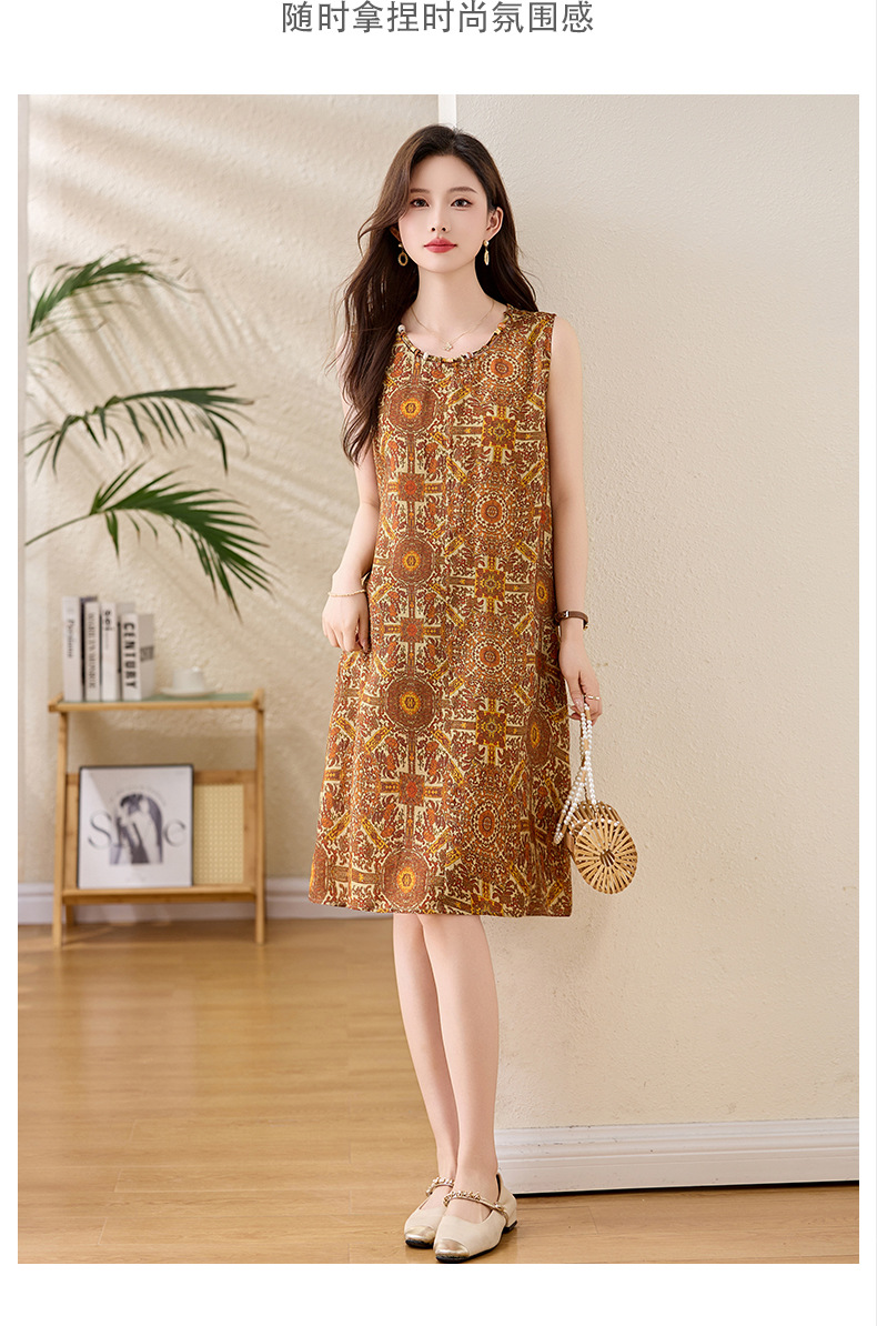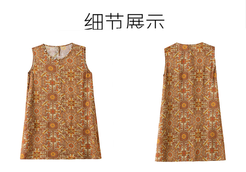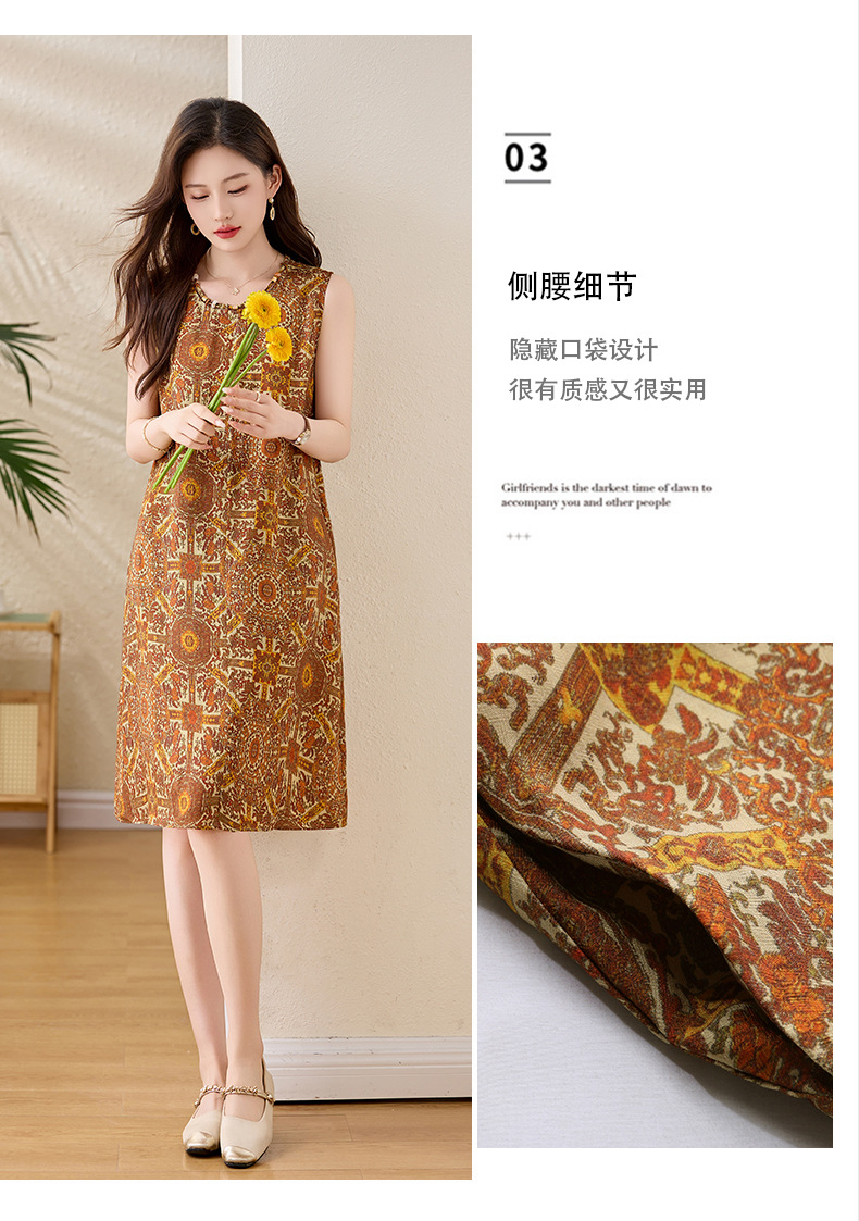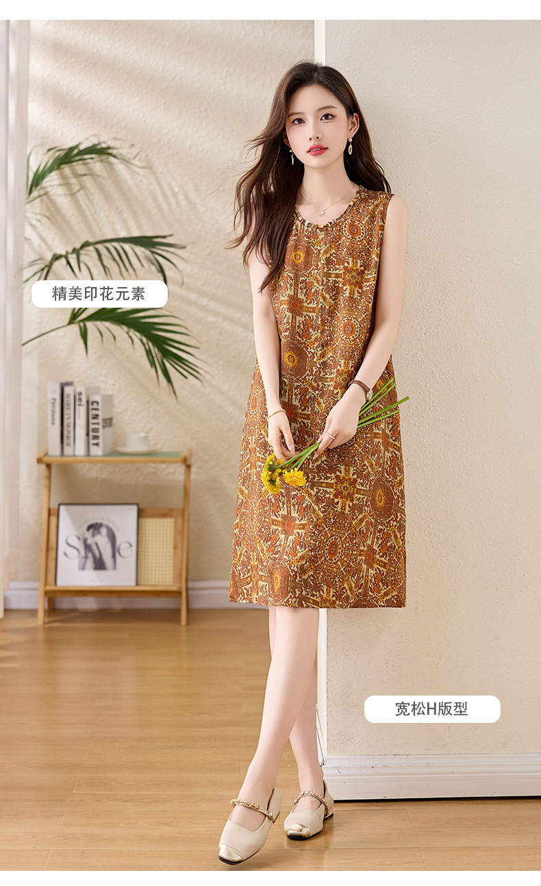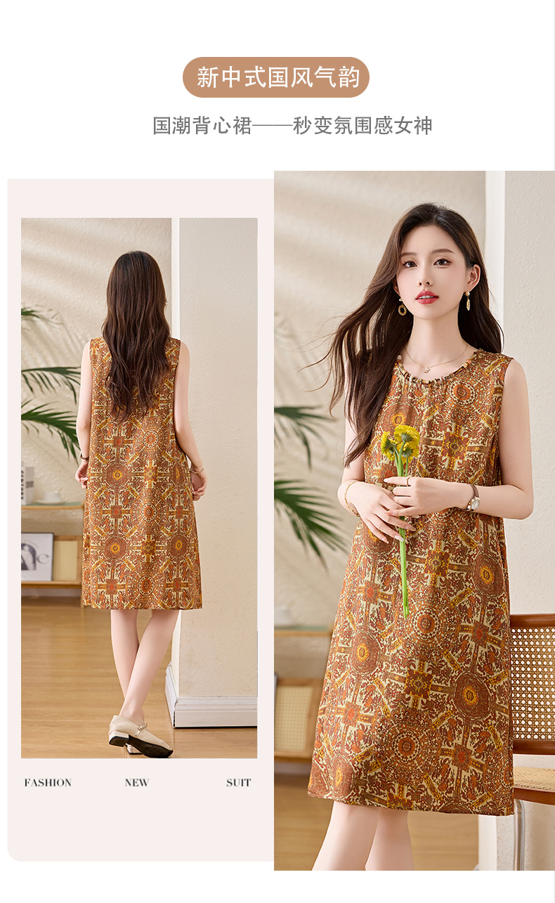 新中式国风背心裙,复古风无袖印花连衣裙日常百搭裙HR-1021