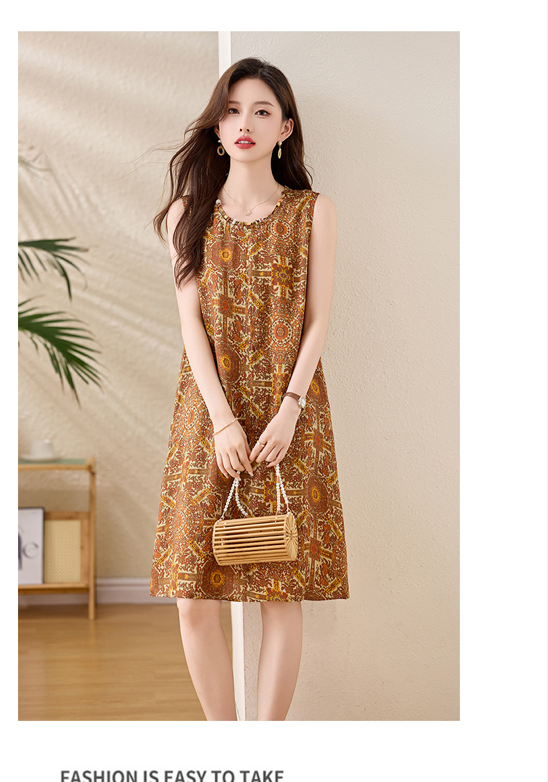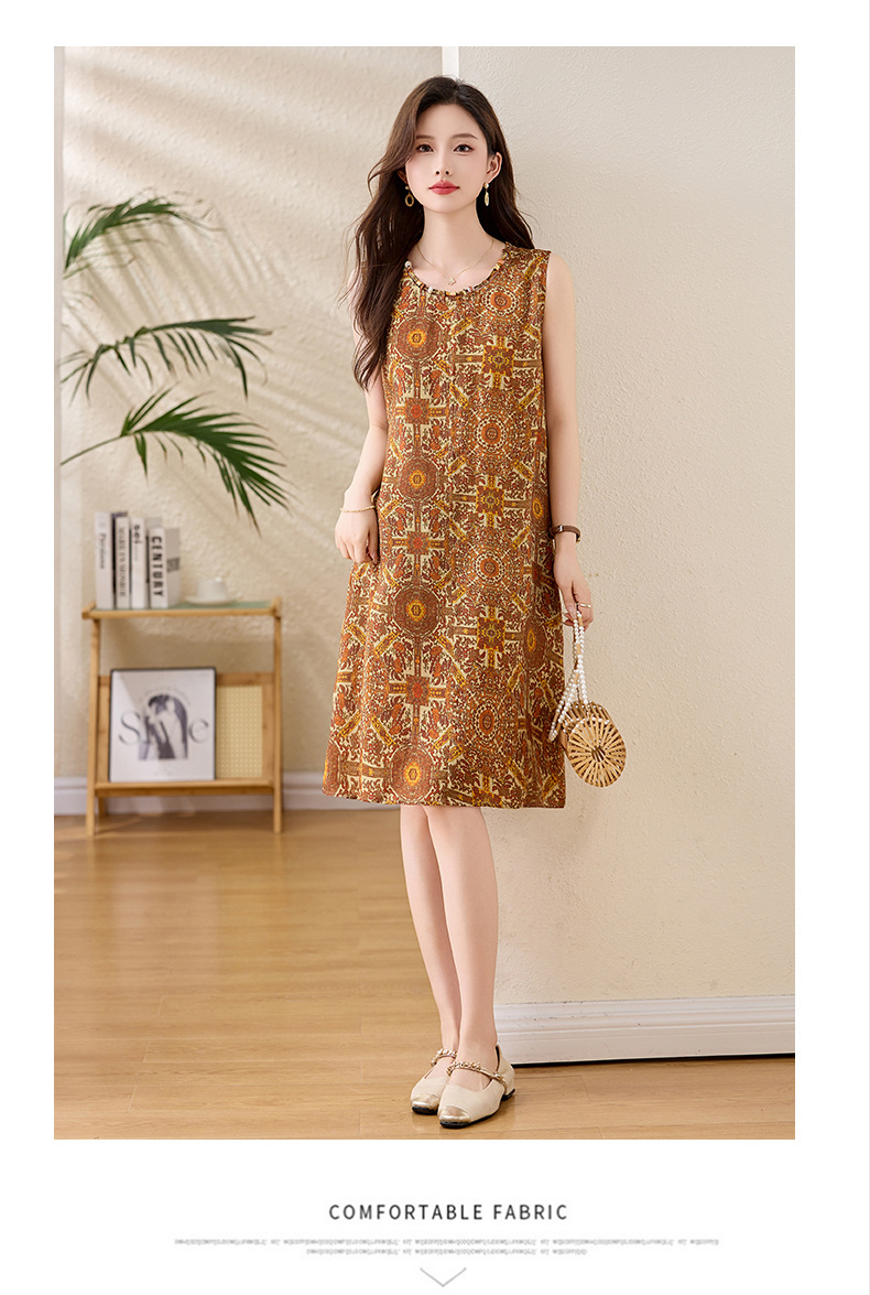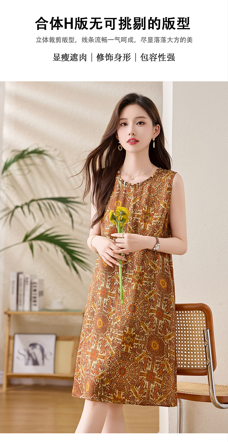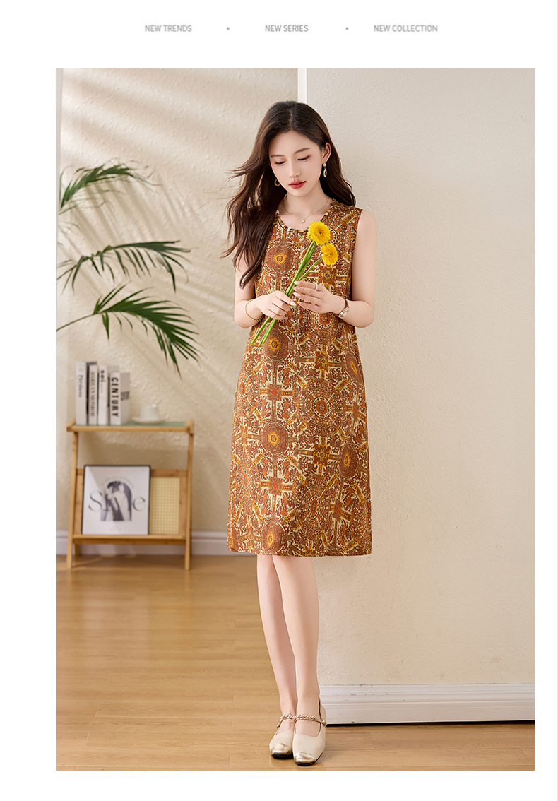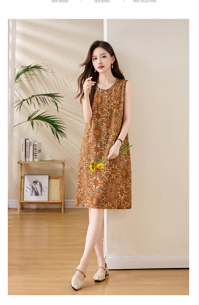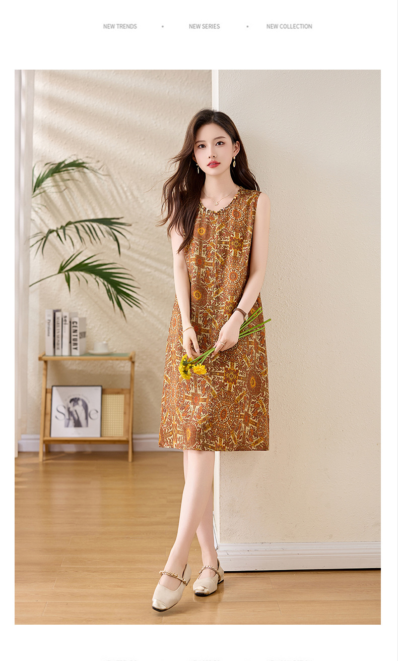 新中式国风背心裙,复古风无袖印花连衣裙日常百搭裙HR-1021