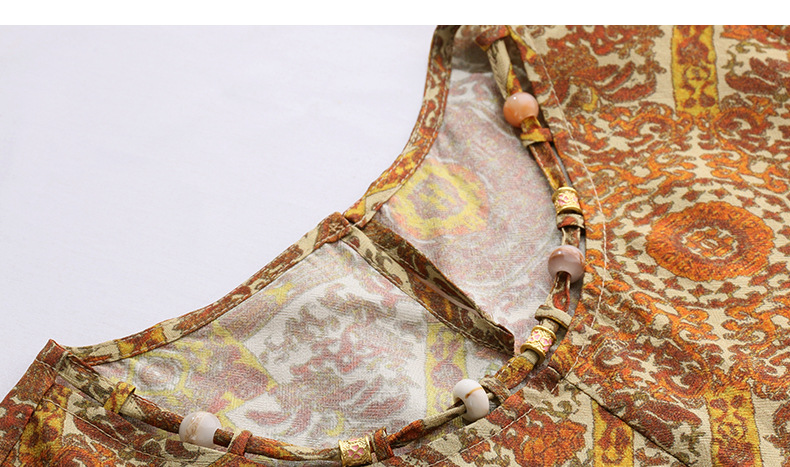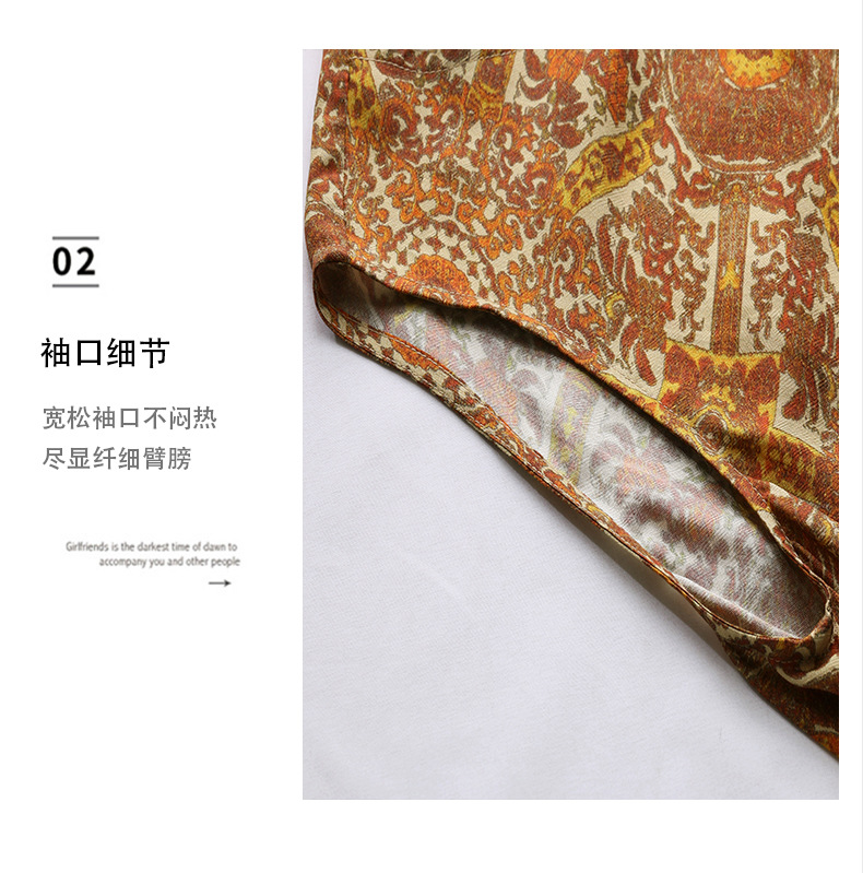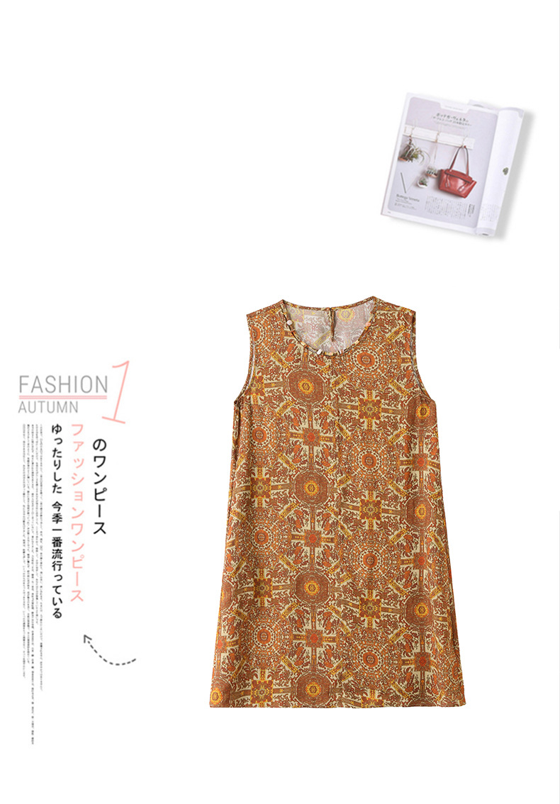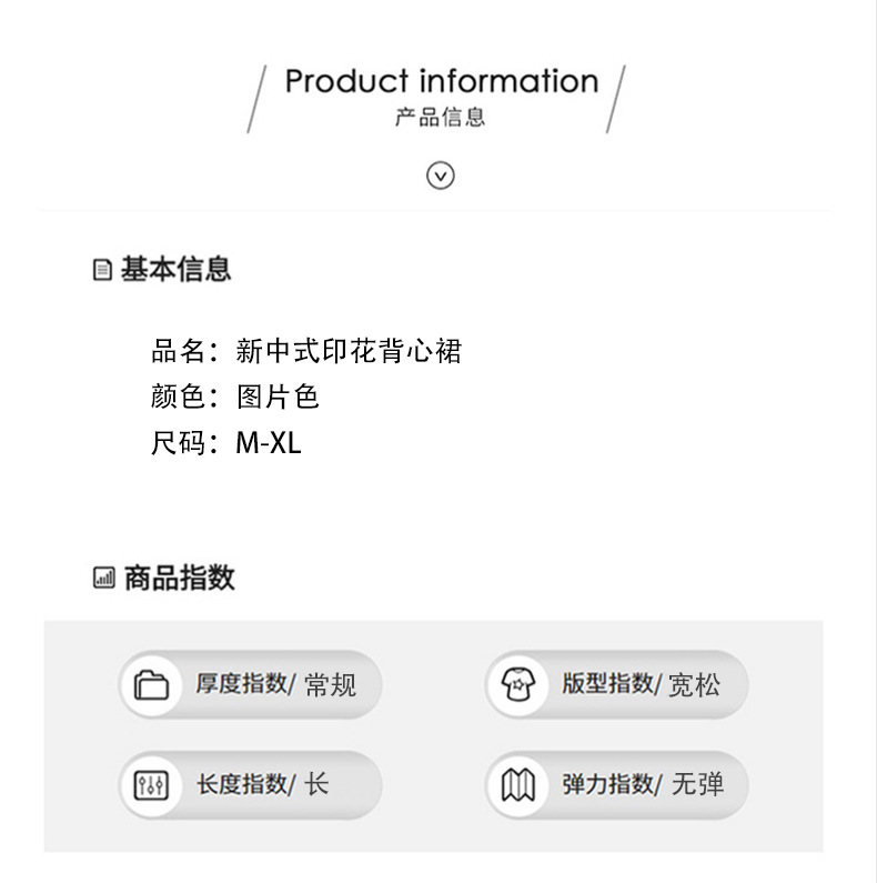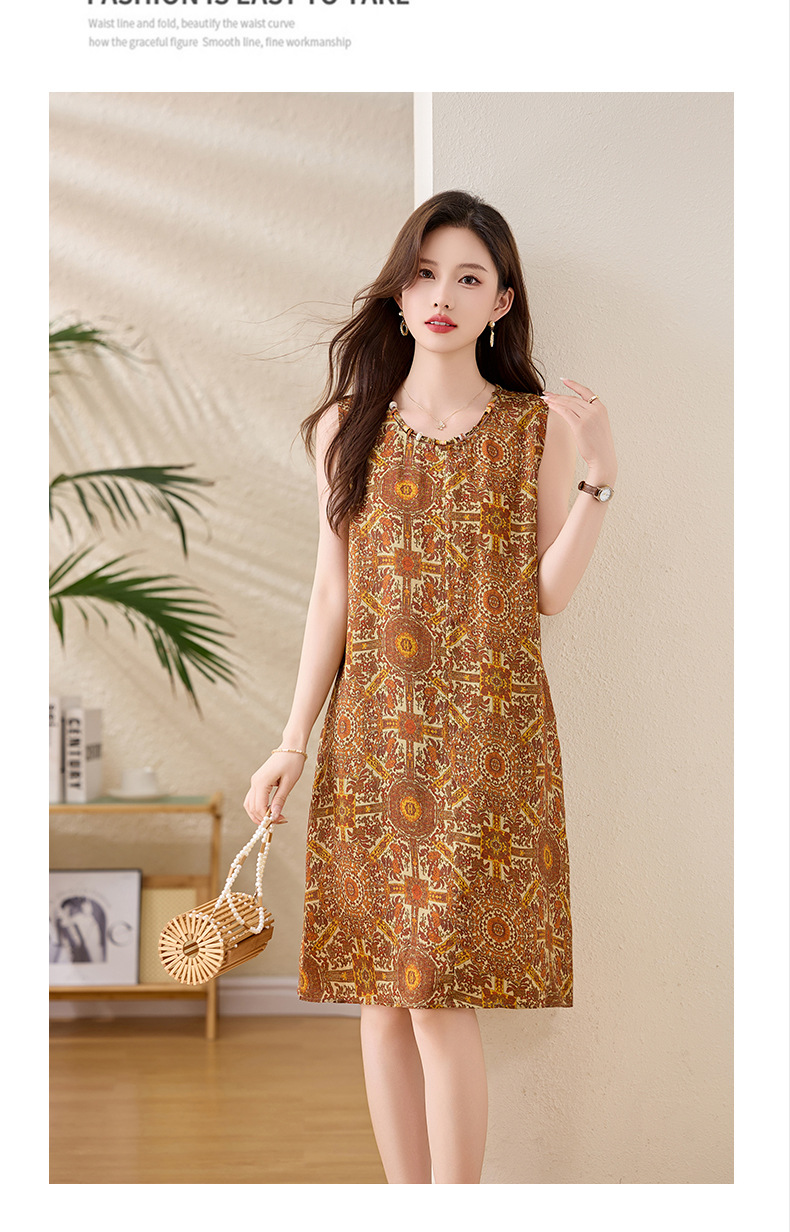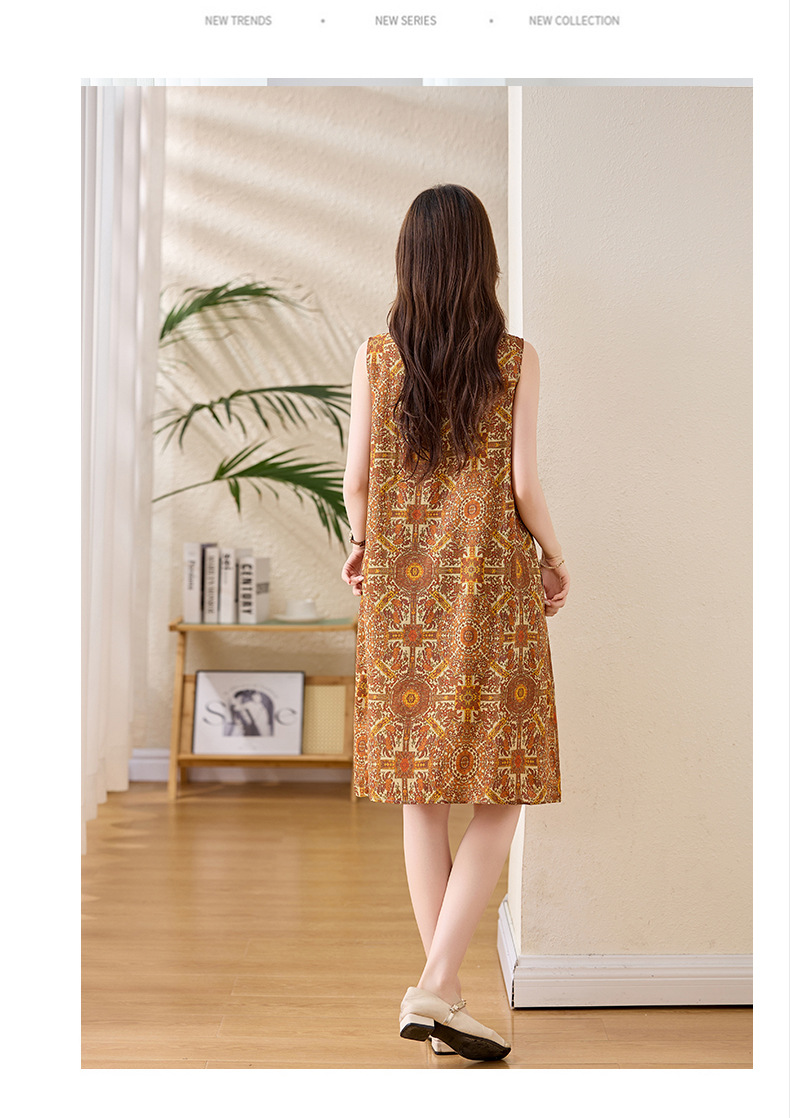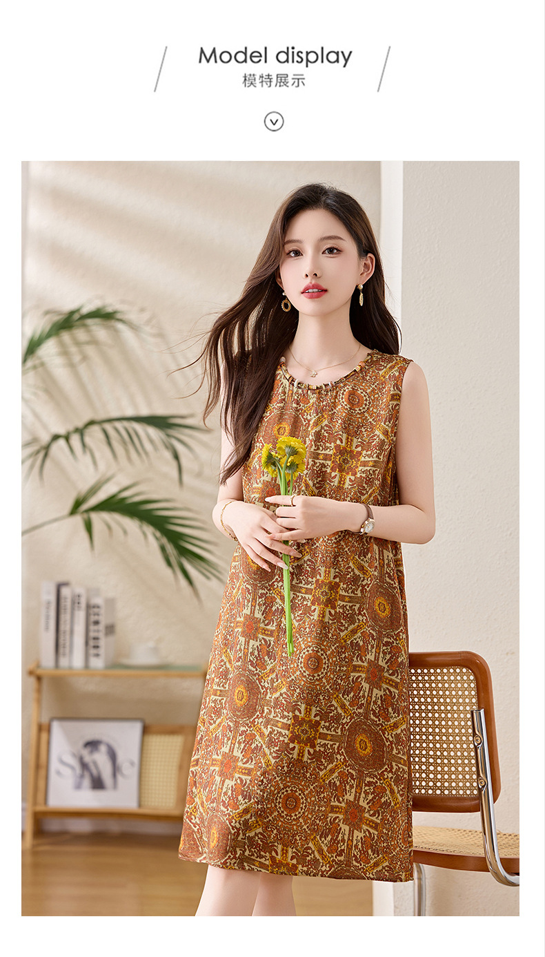 新中式国风背心裙,复古风无袖印花连衣裙日常百搭裙HR-1021