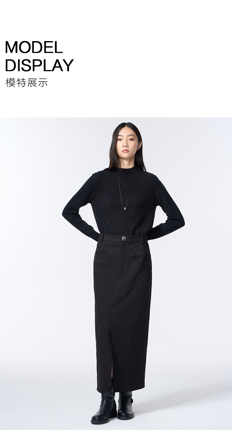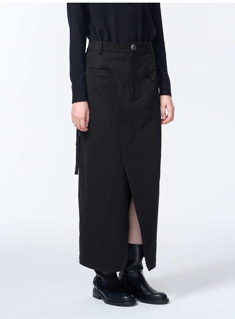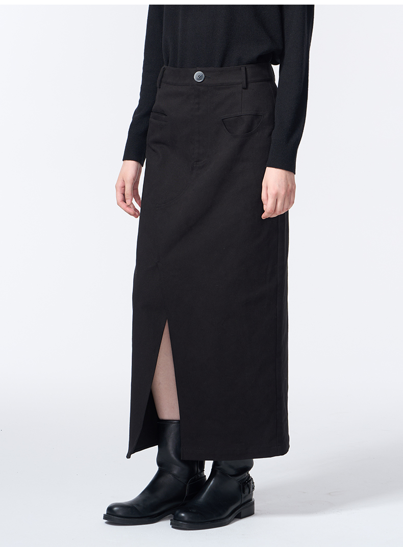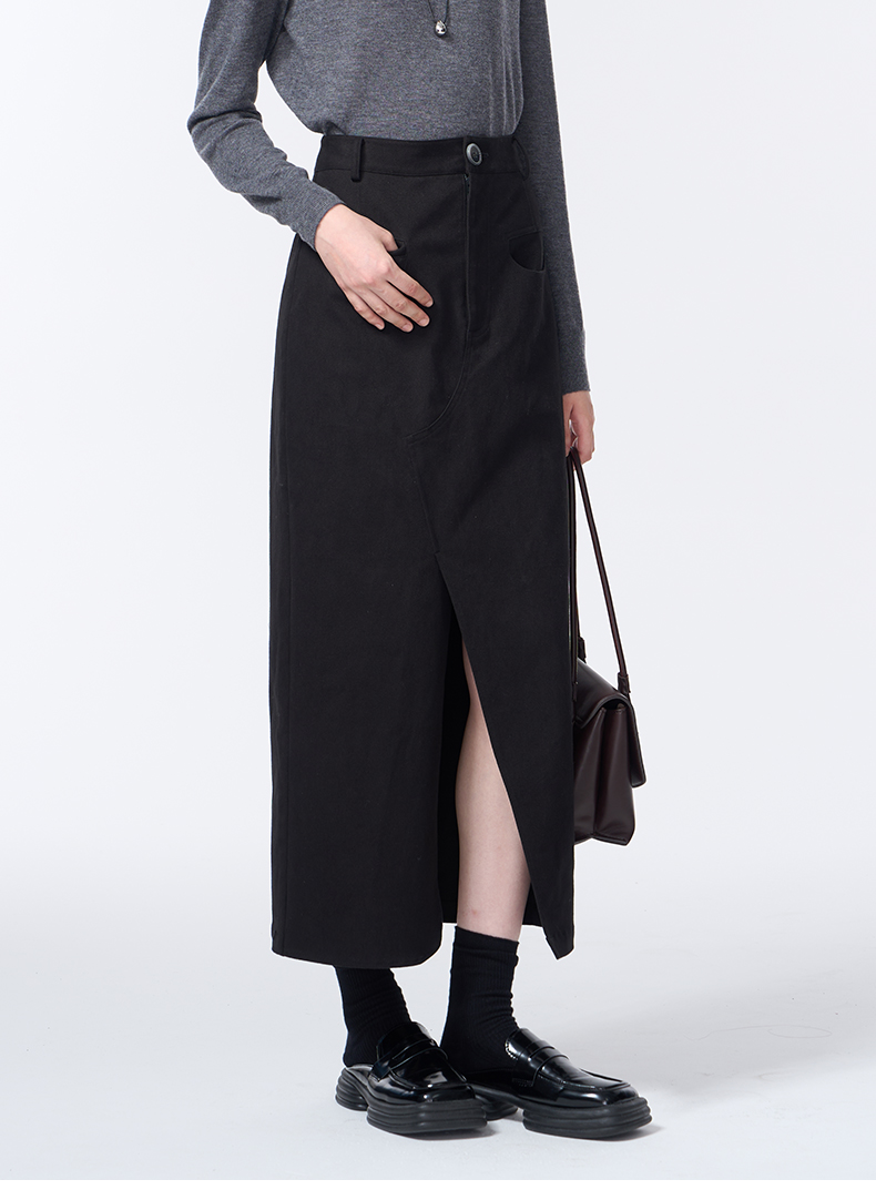 VIMAGE纬漫纪长款休闲百搭气质开叉黑色直筒2025秋季新款半身裙V2406105