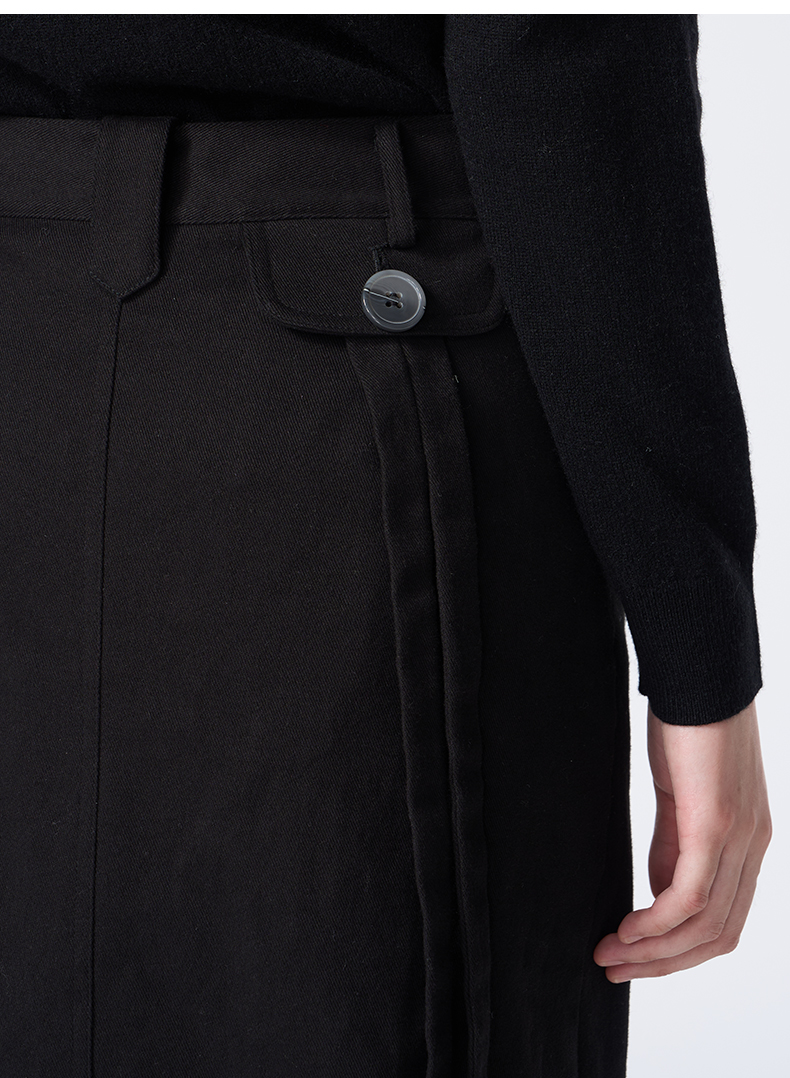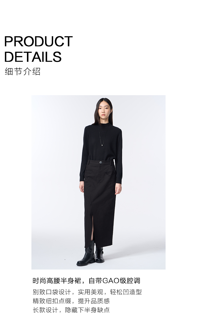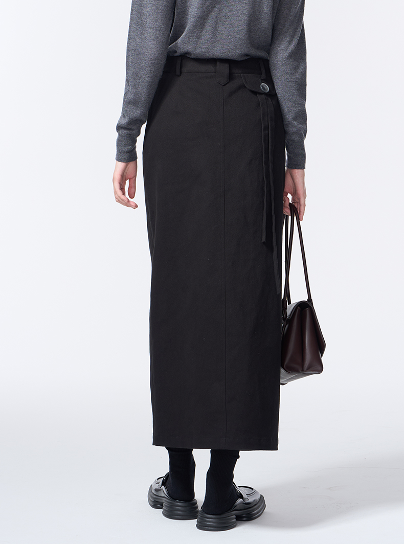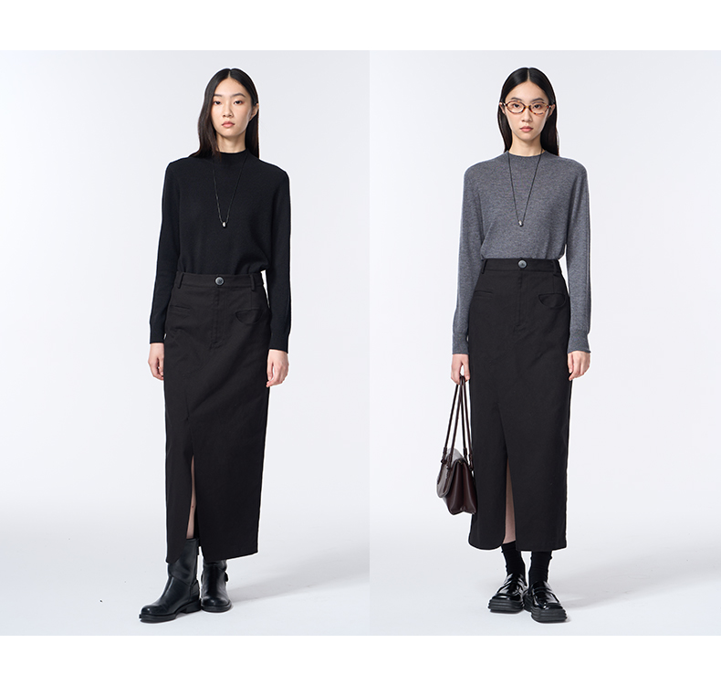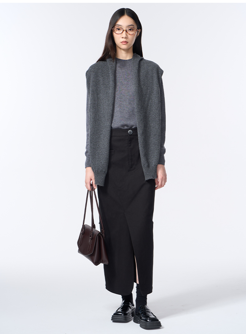 VIMAGE纬漫纪长款休闲百搭气质开叉黑色直筒2025秋季新款半身裙V2406105