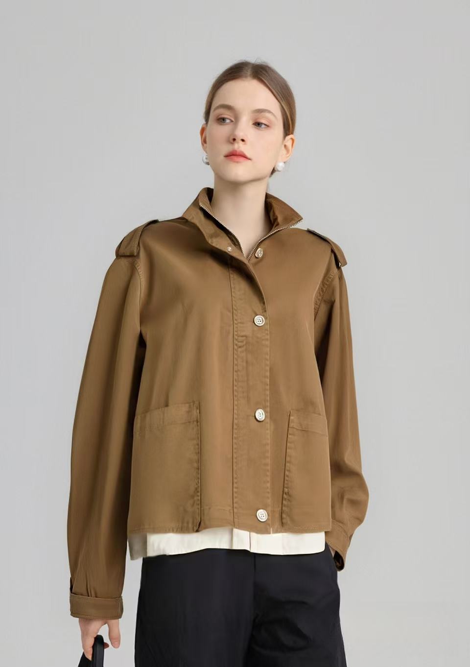 【秋新品】古泥品牌7391 100%棉假两件短款风衣外套-喜出