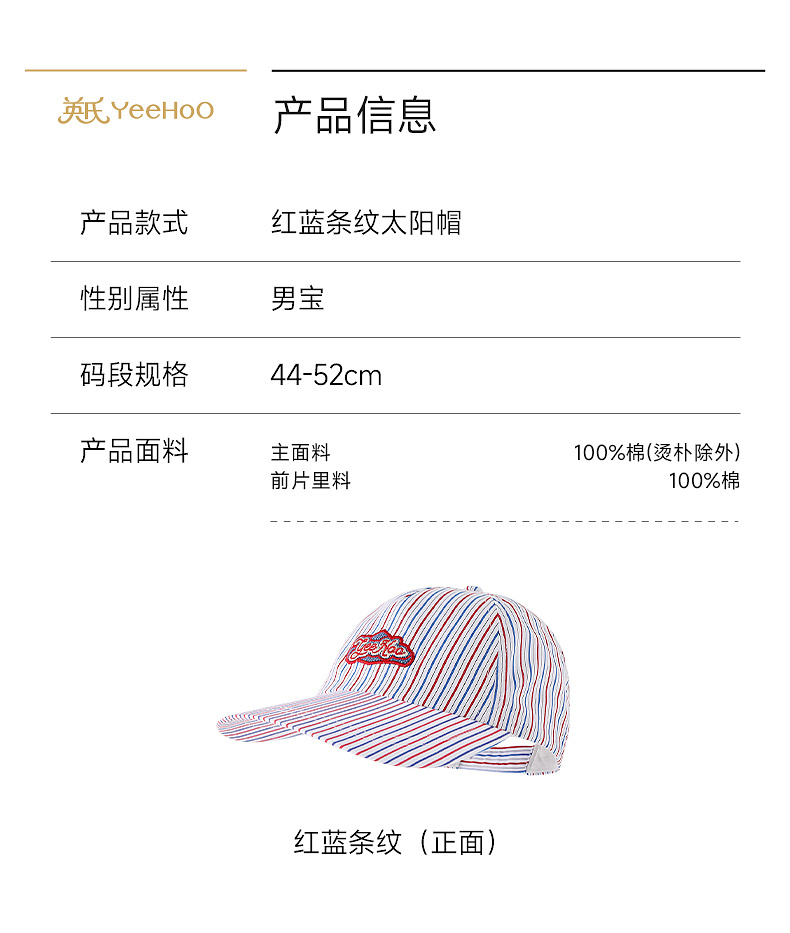【商场同款】英氏儿童帽子男童太阳帽百搭条纹遮阳鸭舌帽春夏新款
