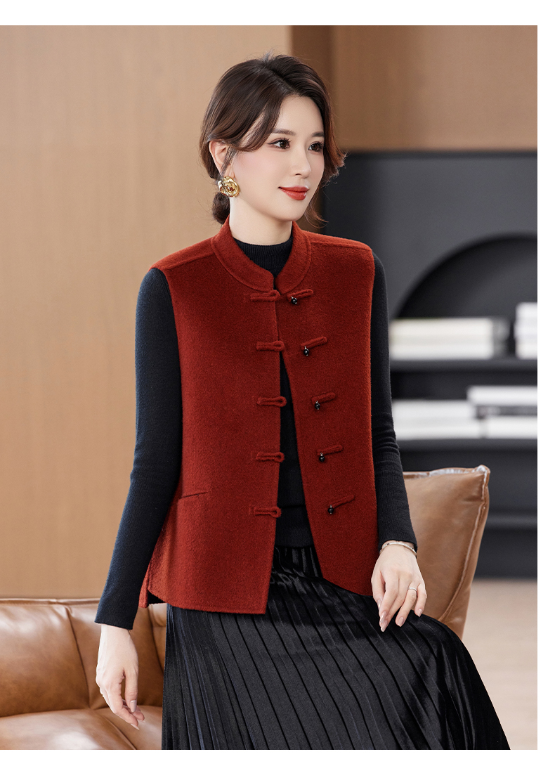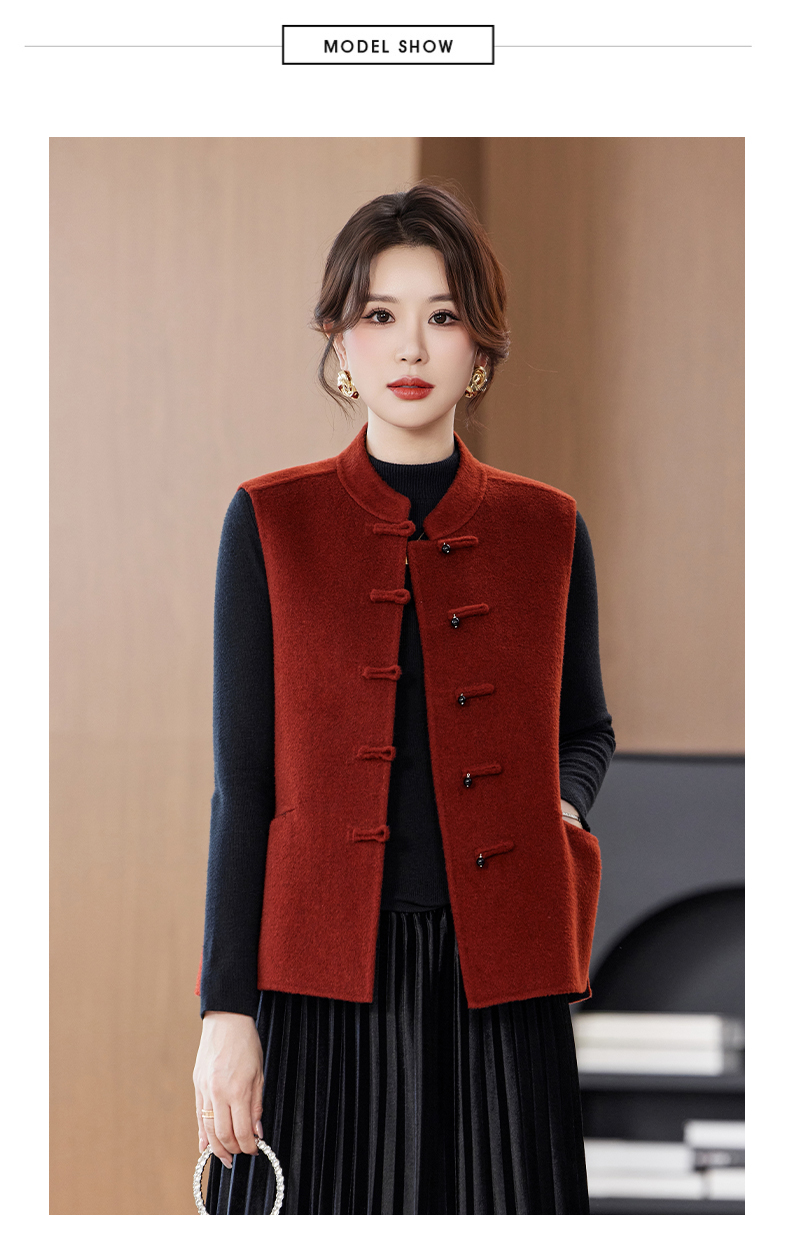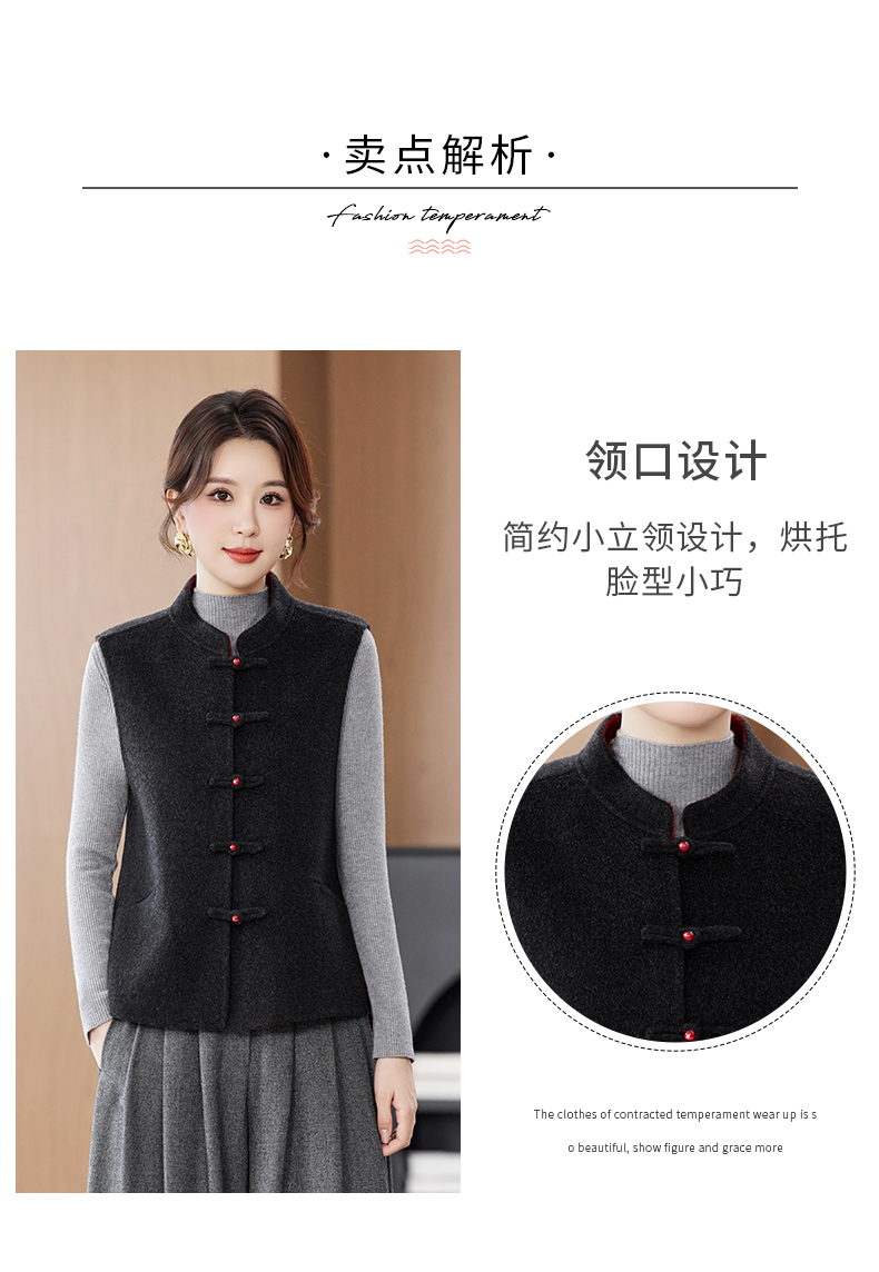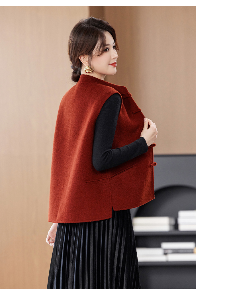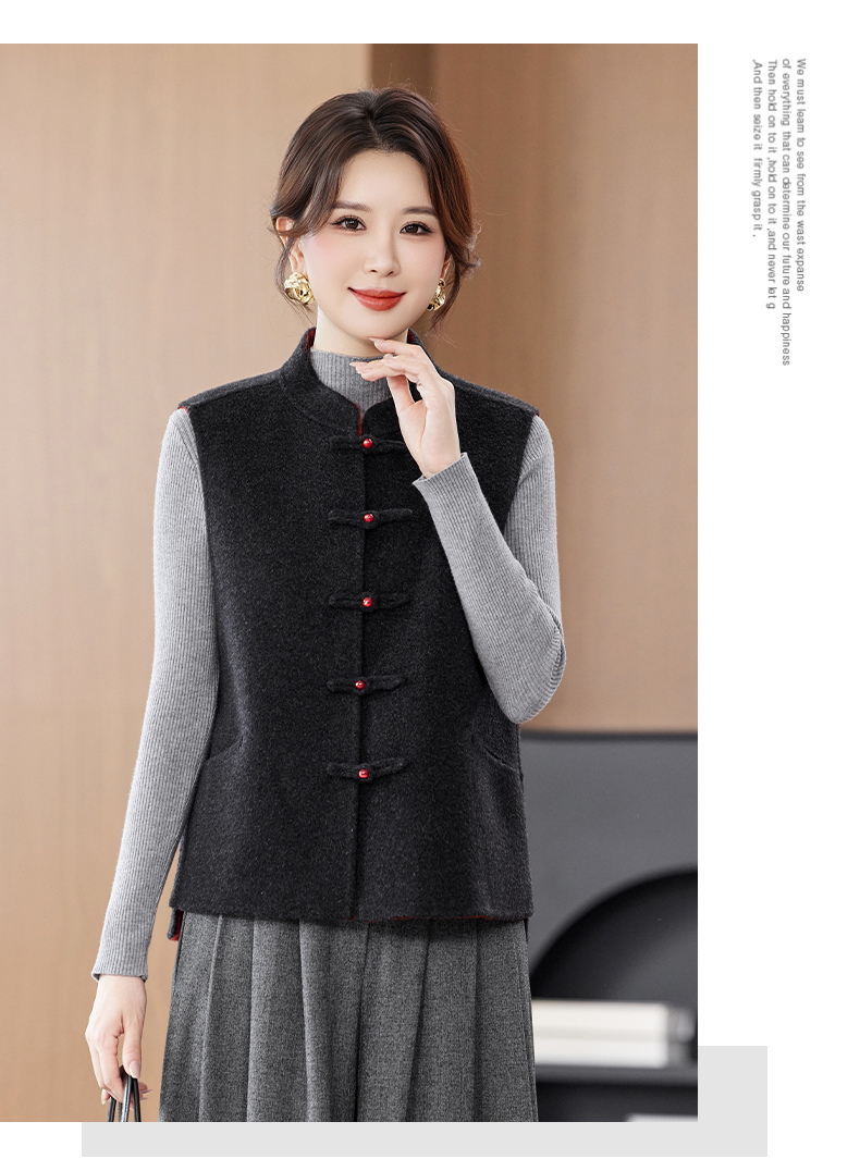 丁摩 新中式国风双面零羊绒马甲女秋冬新款外搭叠穿手工双面呢背心马甲62358