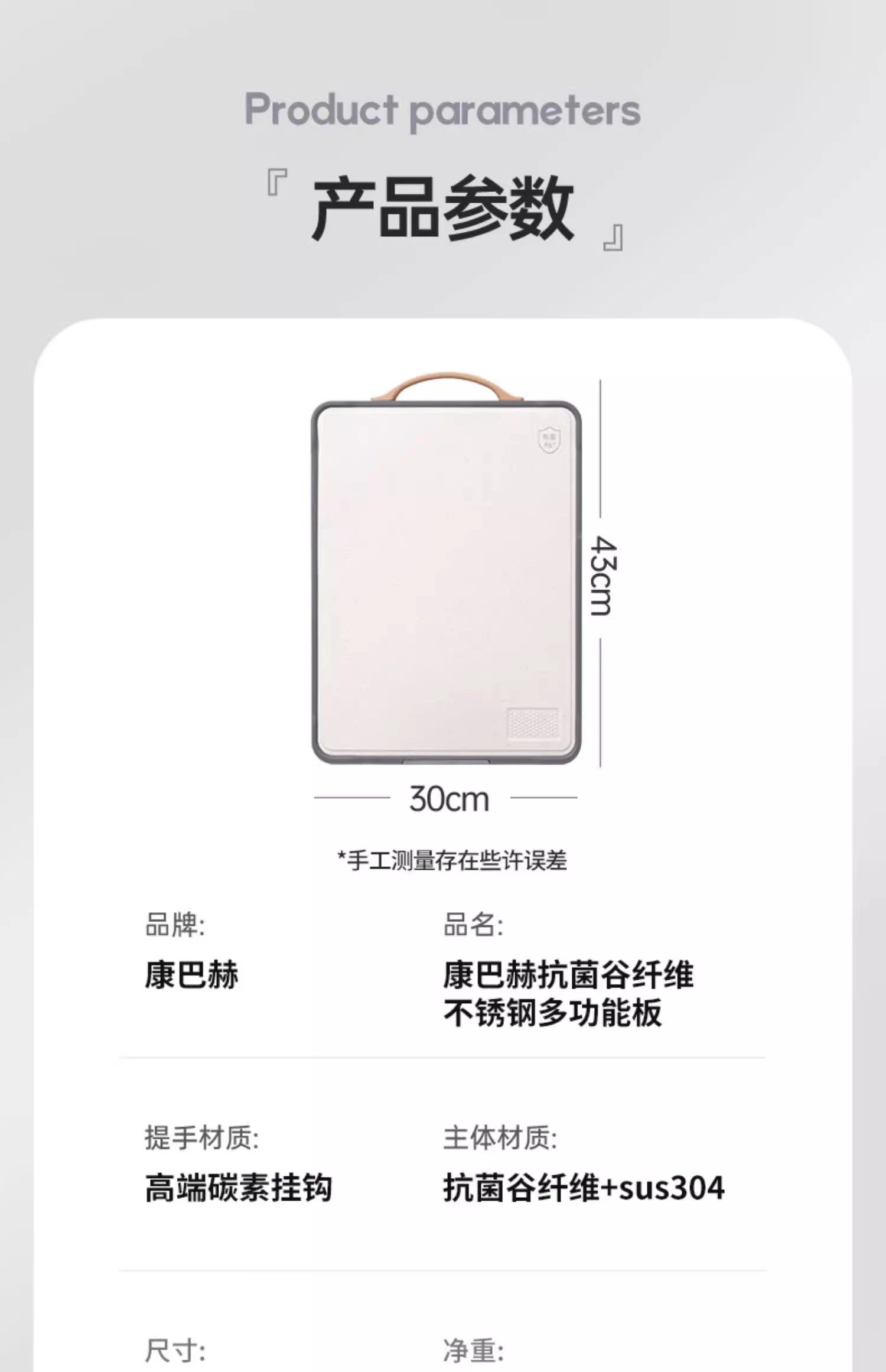 【 品名 】康巴赫双面砧板 【 快递 】随机不指定 【发货区域】新疆西藏不发,内蒙,甘肃,宁夏,青海,海南+10 【发货时长】48-72小时内发货,正常都是当天下单,隔天发货,但不敢说一定。特殊情况发货时间将会顺延(包括但不限于下雨、天灾,快递暴仓,法定节日休假,以及一切无法预料的突发情况等) 【售后赔付标准】【售后赔付标准】 1、收到产品后,如有损坏的,24小时内把(坏品+快递单)一起同框合照,联系我们客服,我们会按比例闪电赔付,购物无忧! 2、偶发轻微磕碰,不影响使用的情况下,是不售后的!不换不退! 3、非质量问题退货需承担运费,还需+20元的材料费,一个月内有质量问题需承担运费 4、凡用过不退换,凡刮码不退换。收货后检查无问题 【温馨提示】 我们专注于提供高品质直邮到家,收到商品后,请用清水清洗之后再进行使用,感谢您的支持与信任,购物愉快