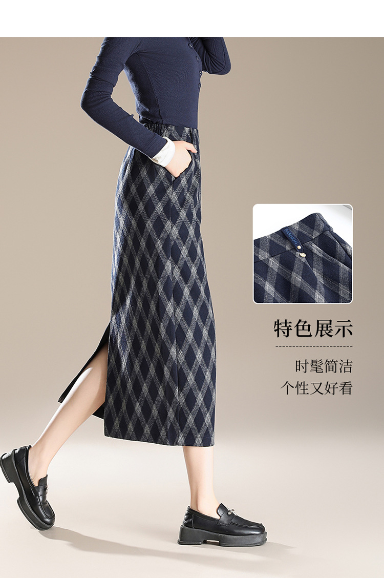 QYM M220-Y格子毛呢半身裙直筒裙中长款包臀一步裙 商品图3