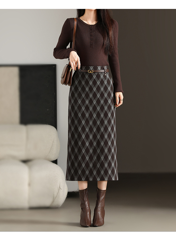 QYM M220-Y格子毛呢半身裙直筒裙中长款包臀一步裙 商品图0
