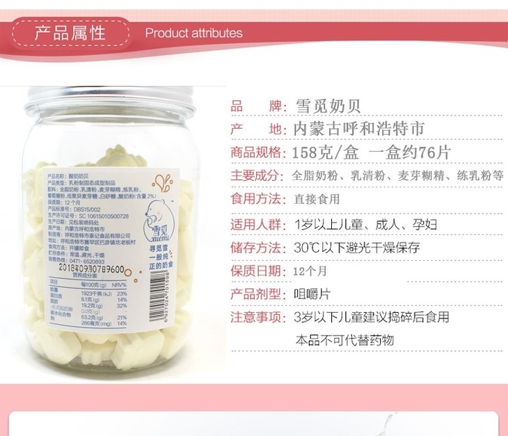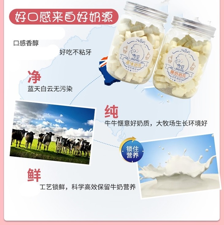 【美食秀场】158g雪觅牛初乳/原味/酸奶奶贝 内蒙古雪觅干吃奶片