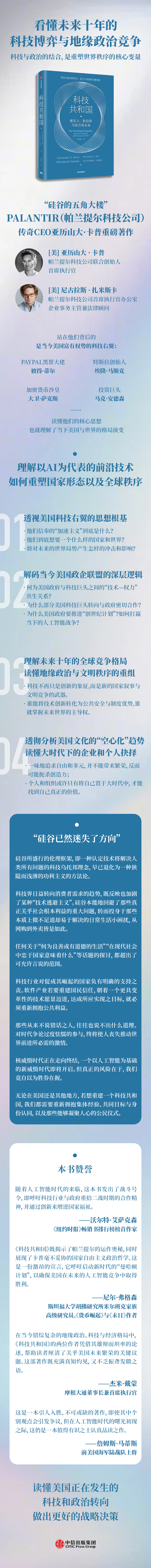 1.美国传奇CEO亚历山大·卡普重磅著作,透视美国科技右翼的思想根基作者亚历山大·卡普是帕兰提尔科技公司联合创始人兼CEO、哲学博士,兼具深度思辨与战略实践的独特视野。他所领导的帕兰提尔是美国政府及国防体系的核心技术伙伴,甚至被称为“硅谷的五角大楼”。