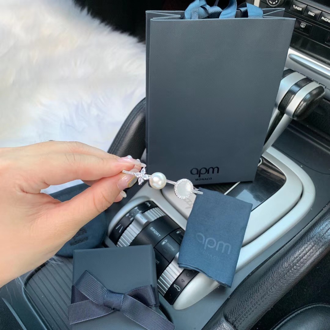 APM Monaco母贝淡水珍珠开口手镯女 复古饰品 情侣手饰