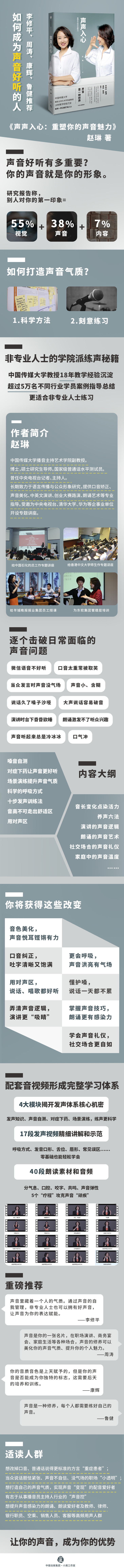 声音是你的一张名片,在职场演讲、商务宴会、家庭生活等各种场合,声音的修养可以美化你的声音气质、提升你的个人魅力。