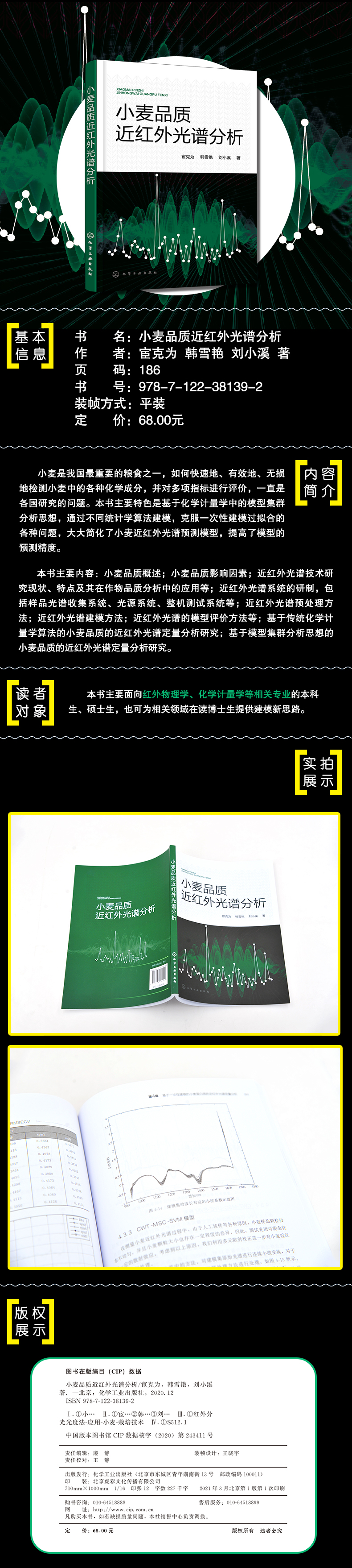本书主要内容:小麦品质概述;小麦品质影响因素;近红外光谱技术研究现状、特点及其在作物品质分析中的应用等;近红外光谱系统的研制,包括样品光谱收集系统、光源系统、整机测试系统等;近红外光谱预处理方法;近红外光谱建模方法;近红外光谱的模型评价方法等;基于传统化学计量学算法的小麦品质的近红外光谱定量分析研究;基于模型集群分析思想的小麦品质的近红外光谱定量分析研究。