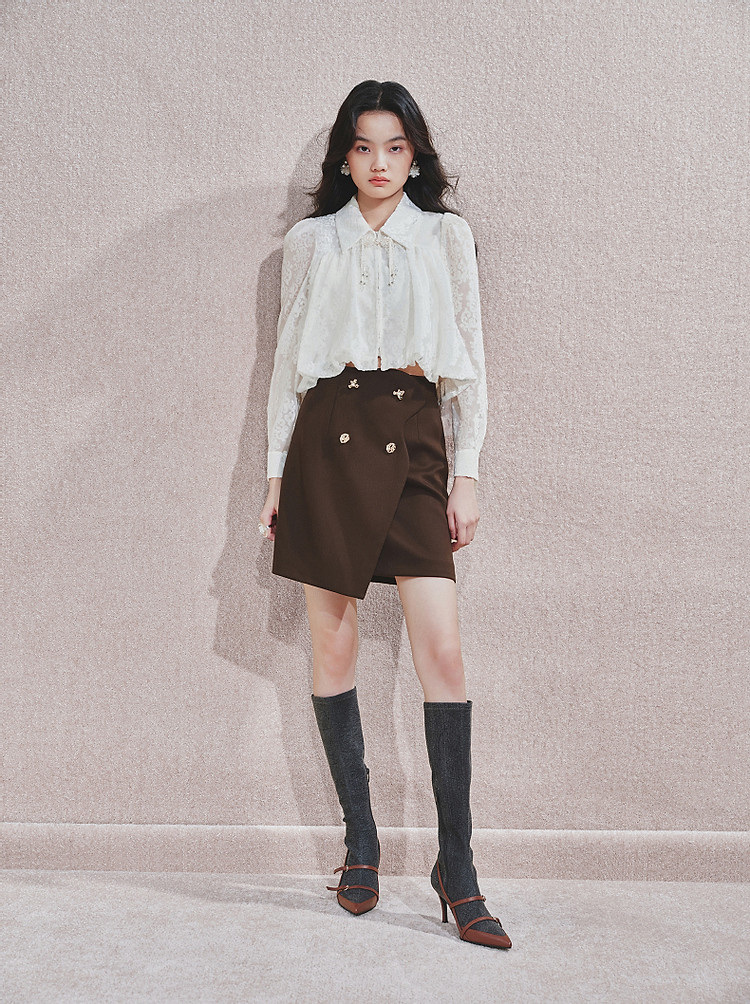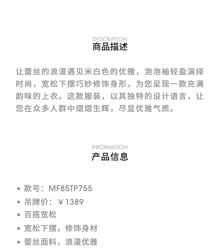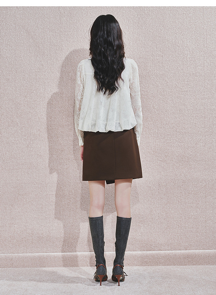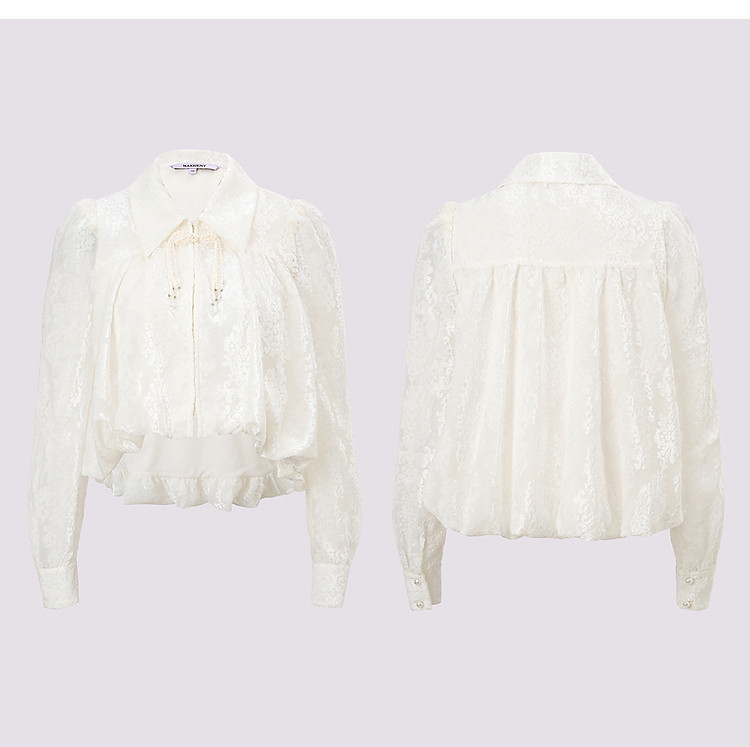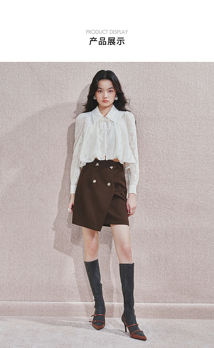 精致优雅百搭蕾丝泡泡袖修身上衣24冬
