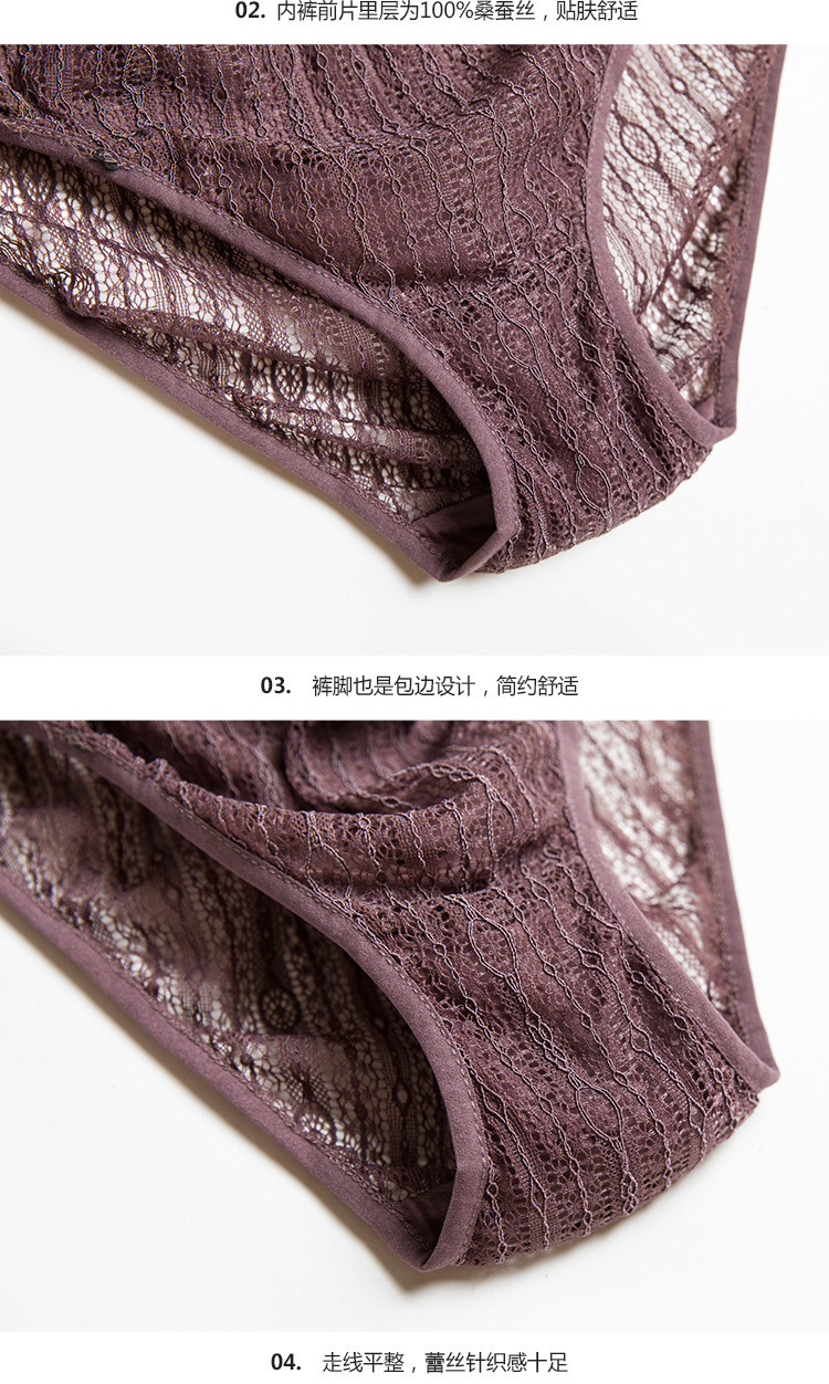 上海旗袍厂TG-TG01S046桑蚕丝性感真丝针织蕾丝花边内裤透气中腰三角裤短裤透气