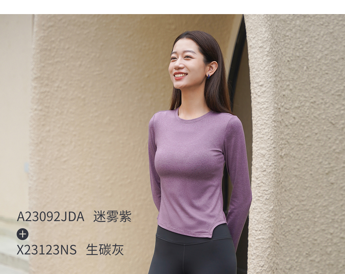 2023爱暇步秋冬新品瑜伽运动时尚修身不规则长袖上衣A23092JDA