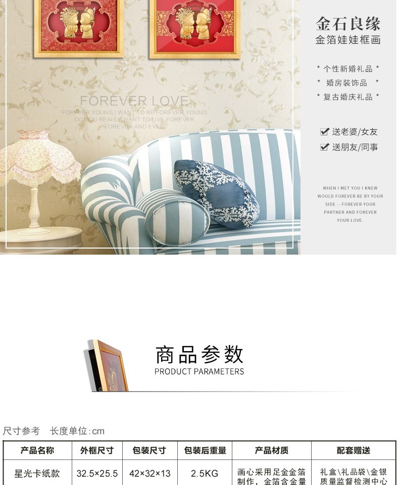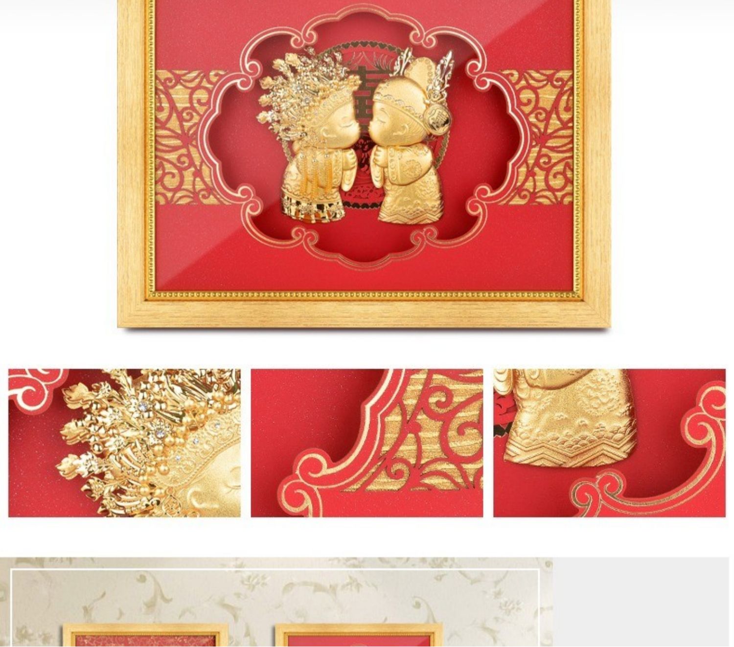 【彼达思】金箔画结婚娃娃婚庆金石良缘创意实用摆件新婚礼物送新人闺蜜朋友