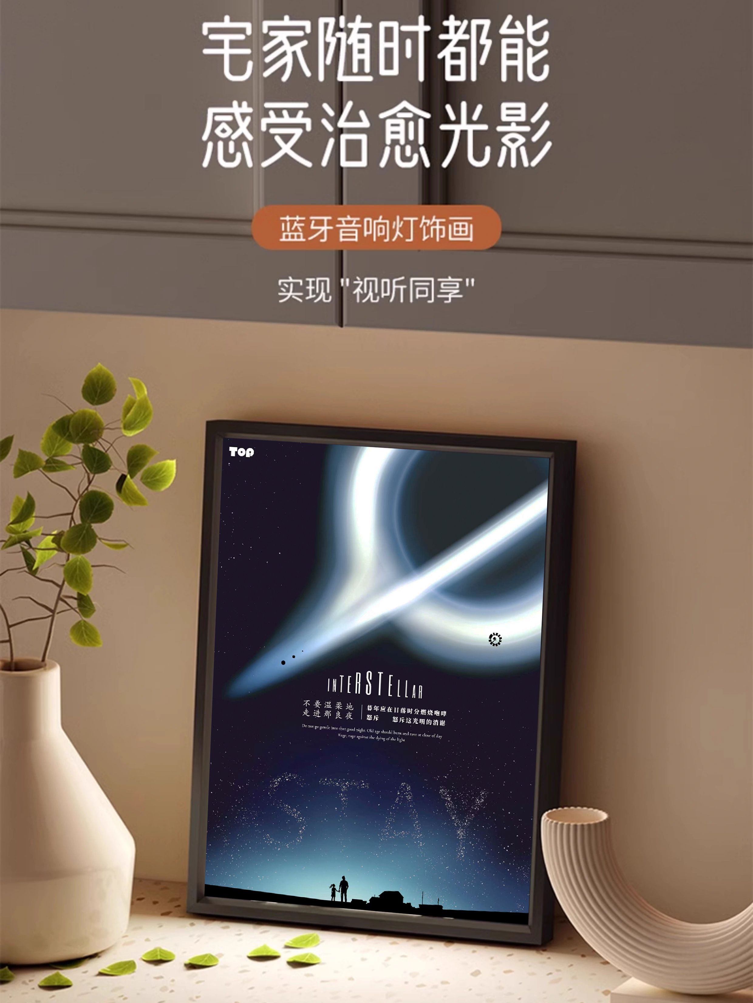 有次看到个装饰画蓝牙音箱,咦这个似乎可以,今年是《星际穿越》上映10周年,就搞它了!