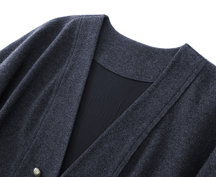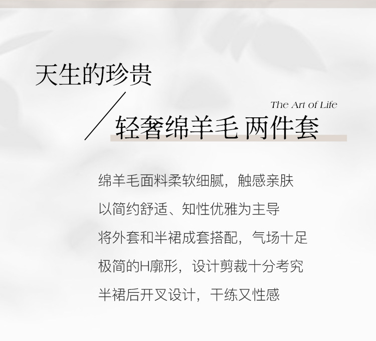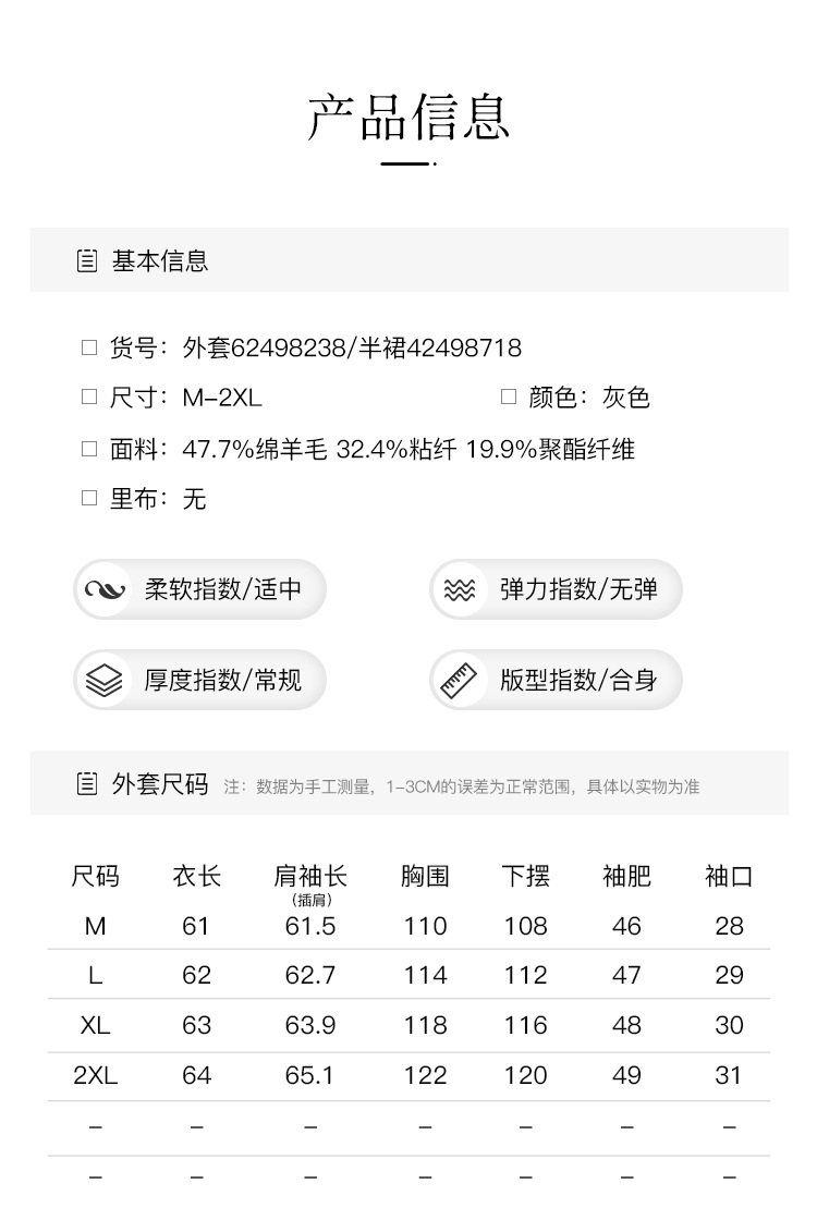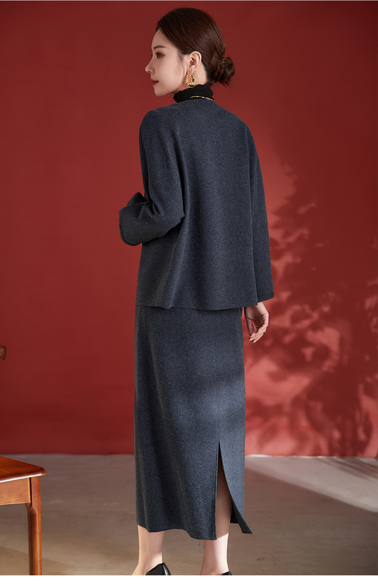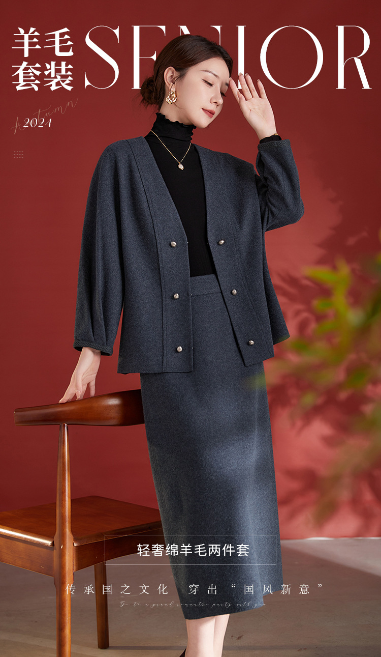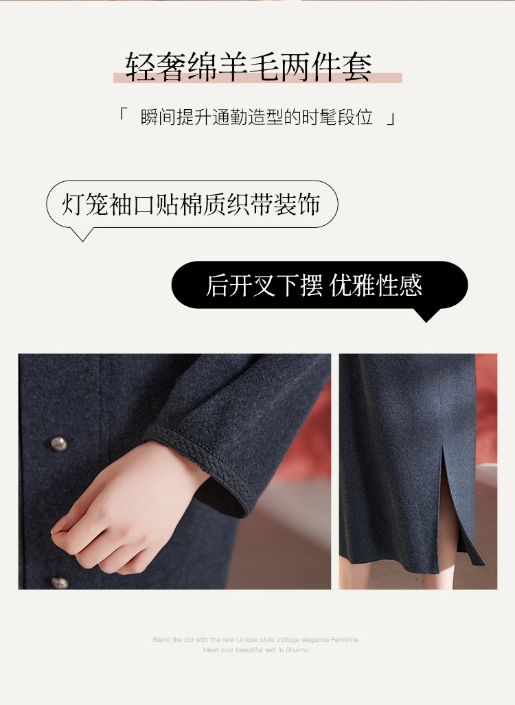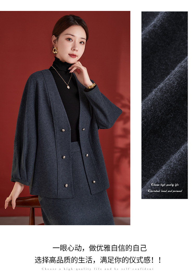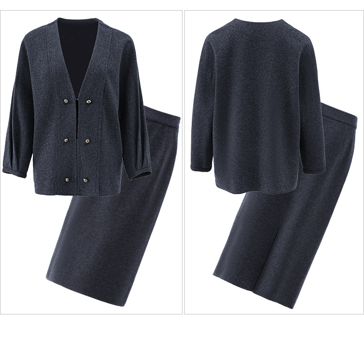 绵羊毛混纺V领开衫外套,中长裙套装气质通勤毛呢两件套SM- 62498238