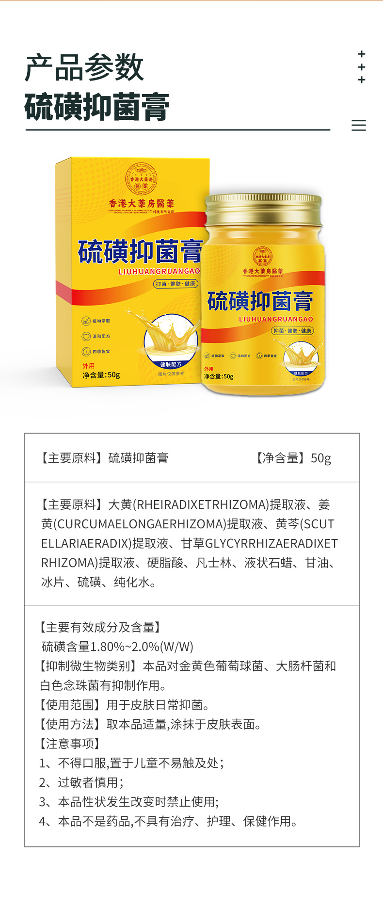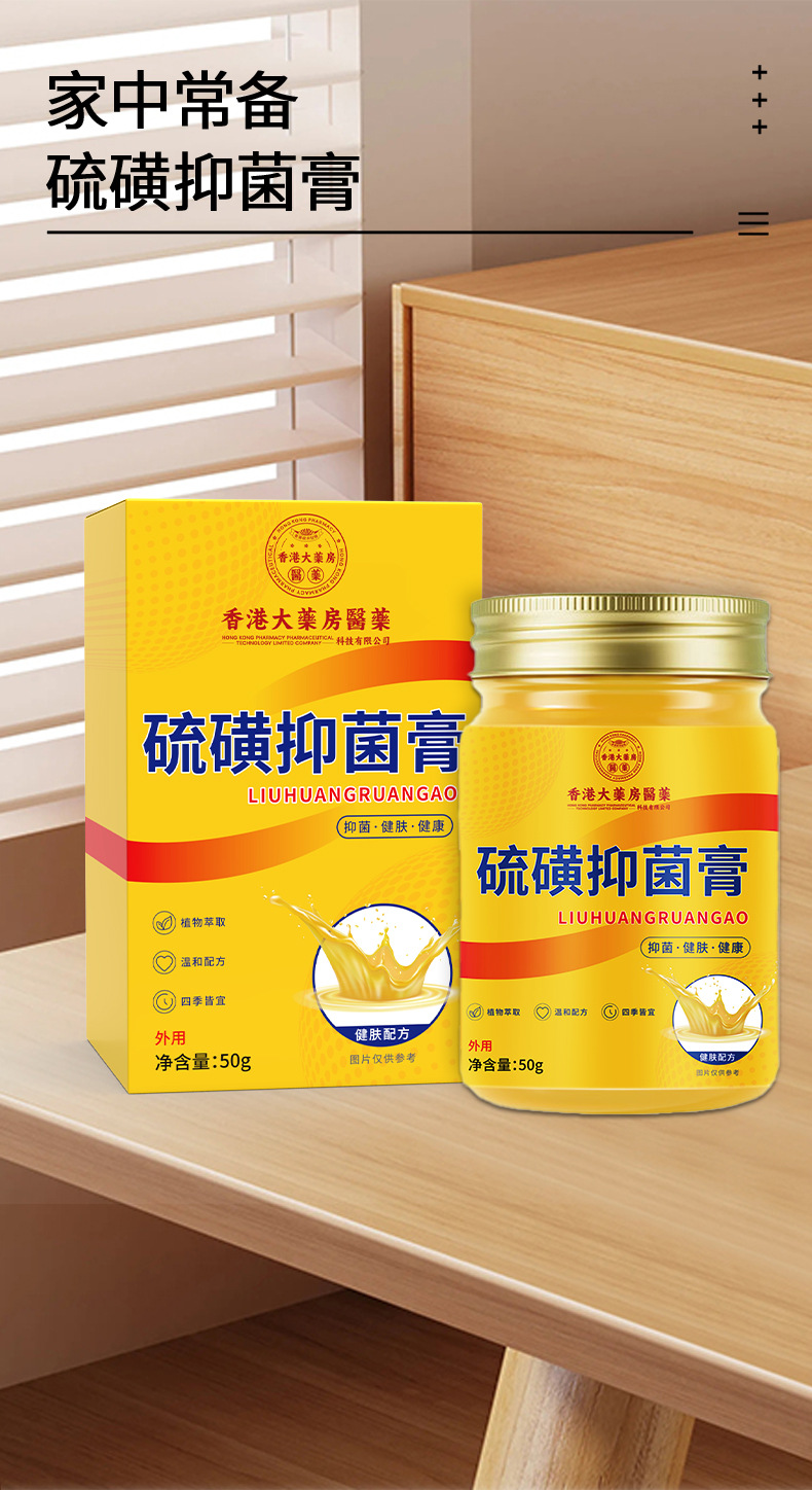 雀说 【2盒装】香港大药房硫磺膏50克大容量抑菌膏皮肤外用止痒膏 硫磺软膏4ZF-81904
