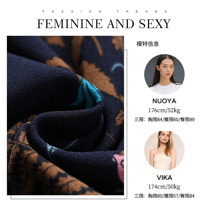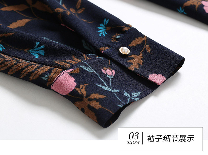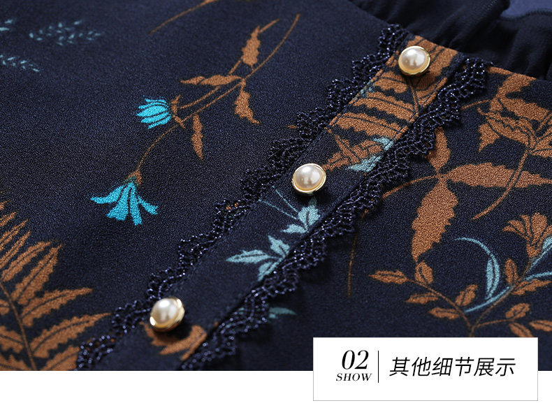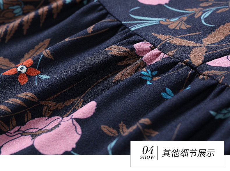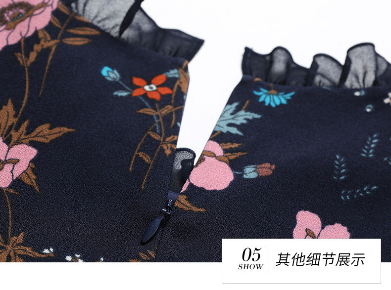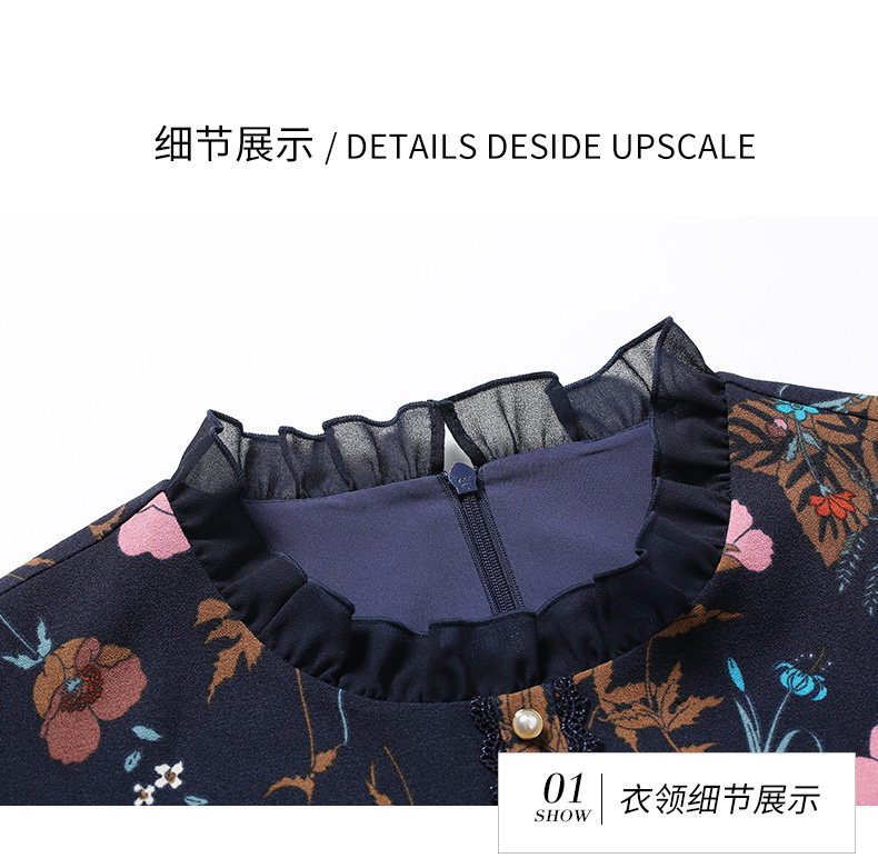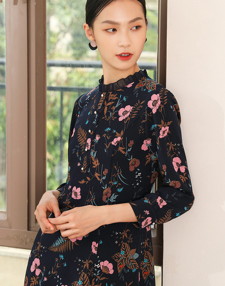 乔万尼秋装复古立领收腰显瘦气质印花长袖连衣裙女中长EN3E316
