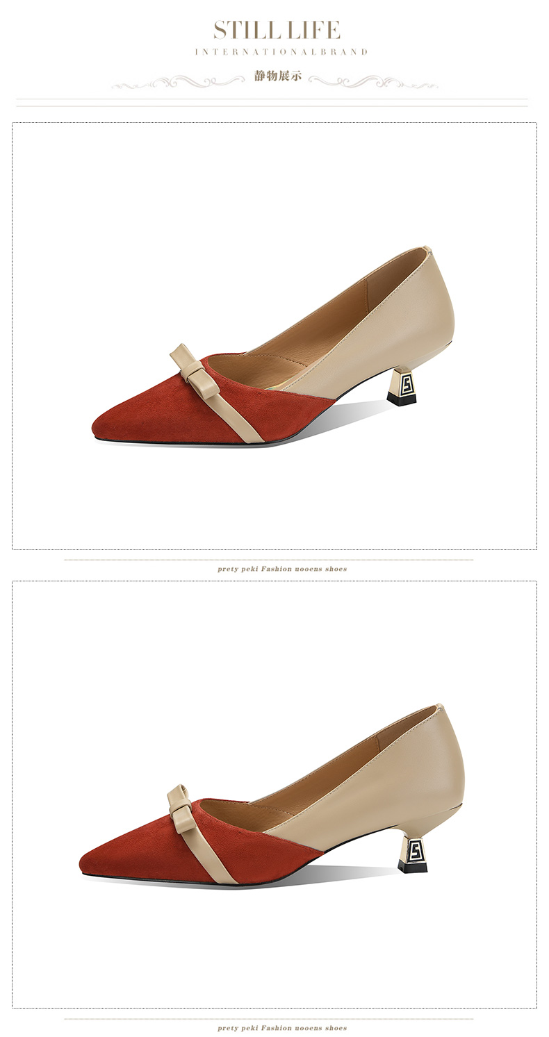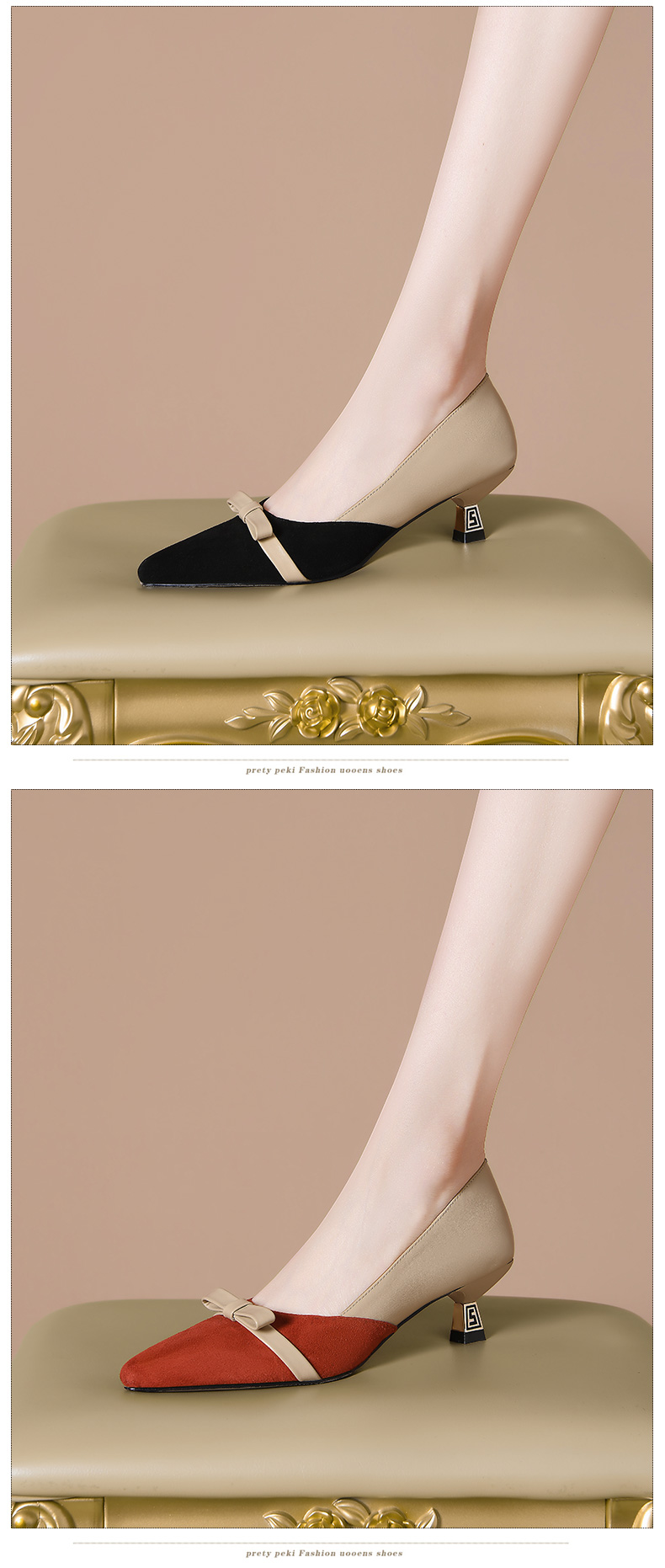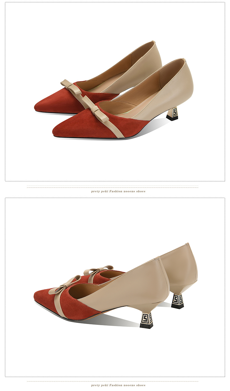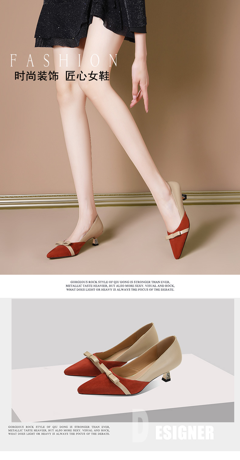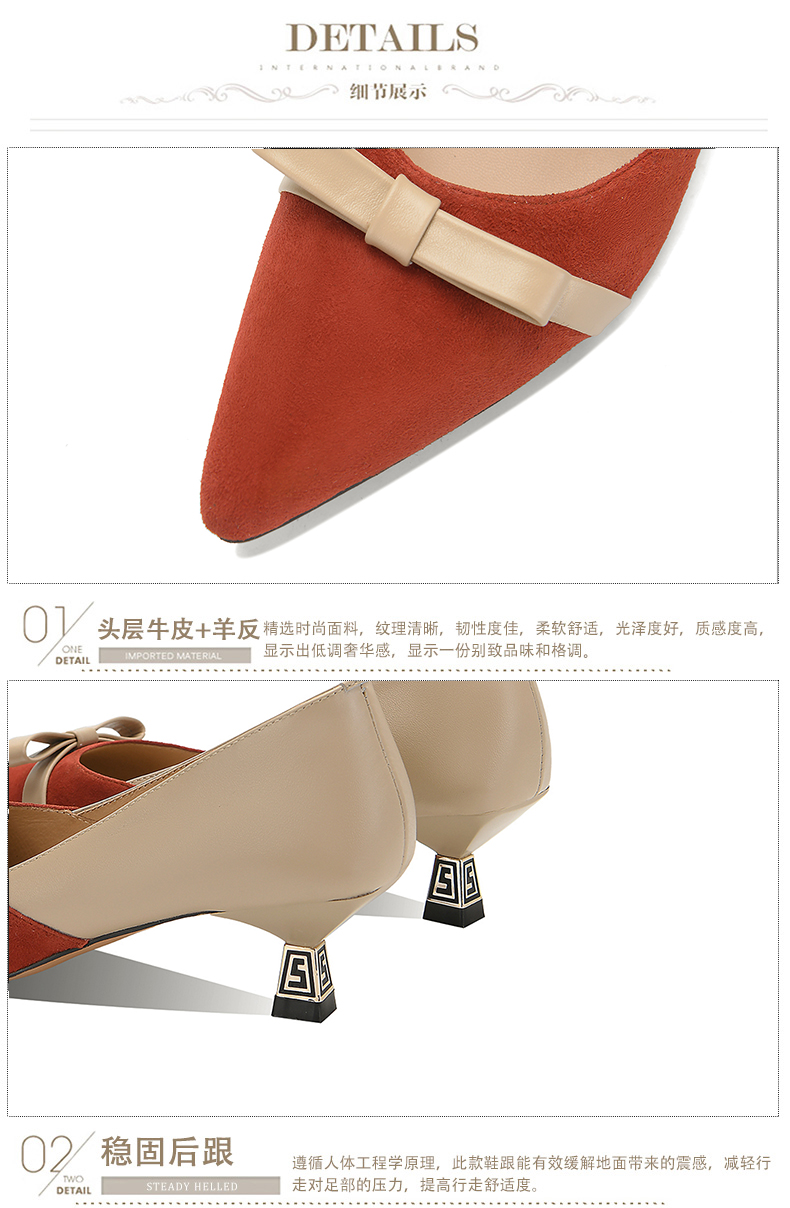 时尚个性,里外头层真皮头层牛皮+羊皮拼接撞色高跟鞋CGDS-A6013