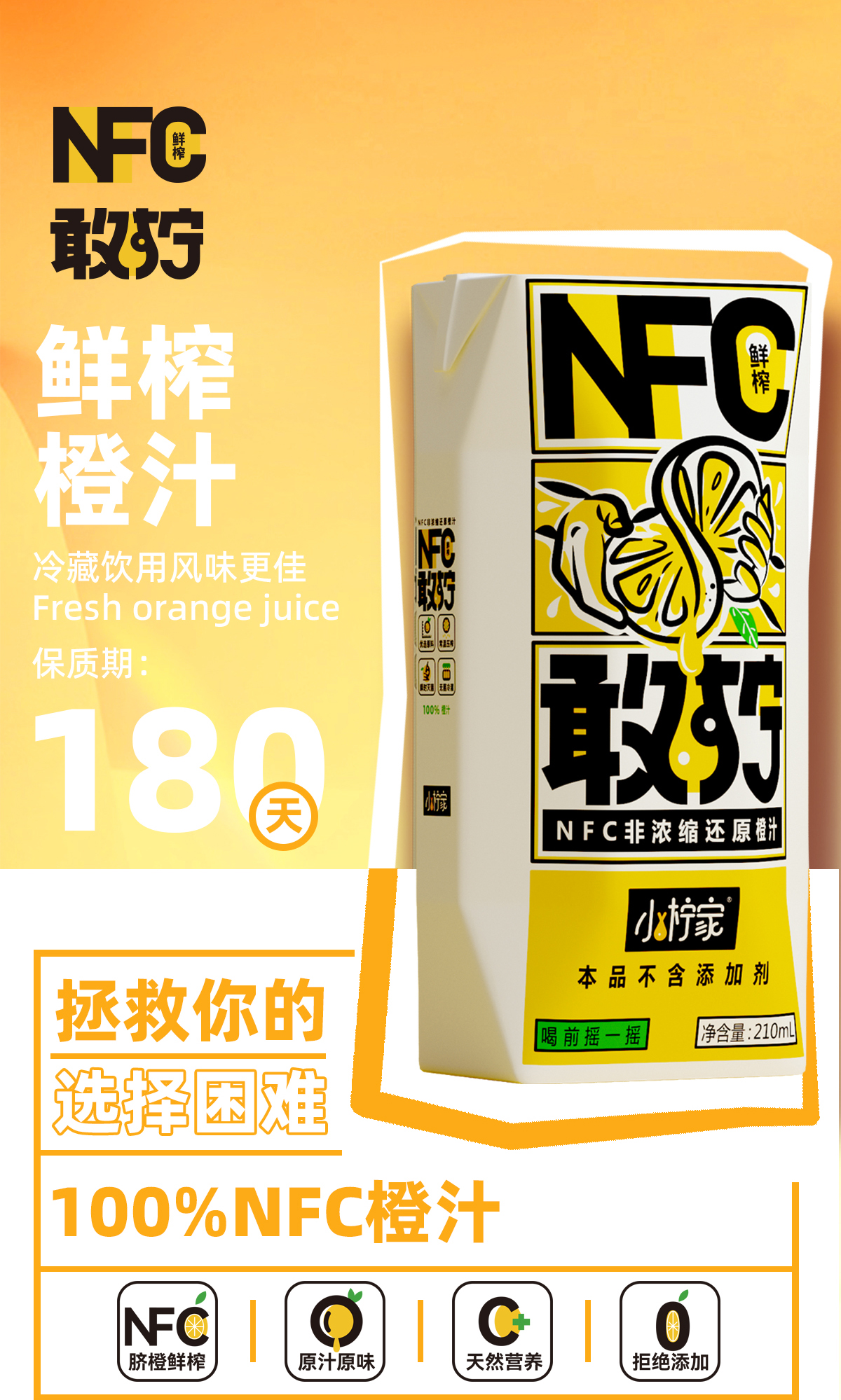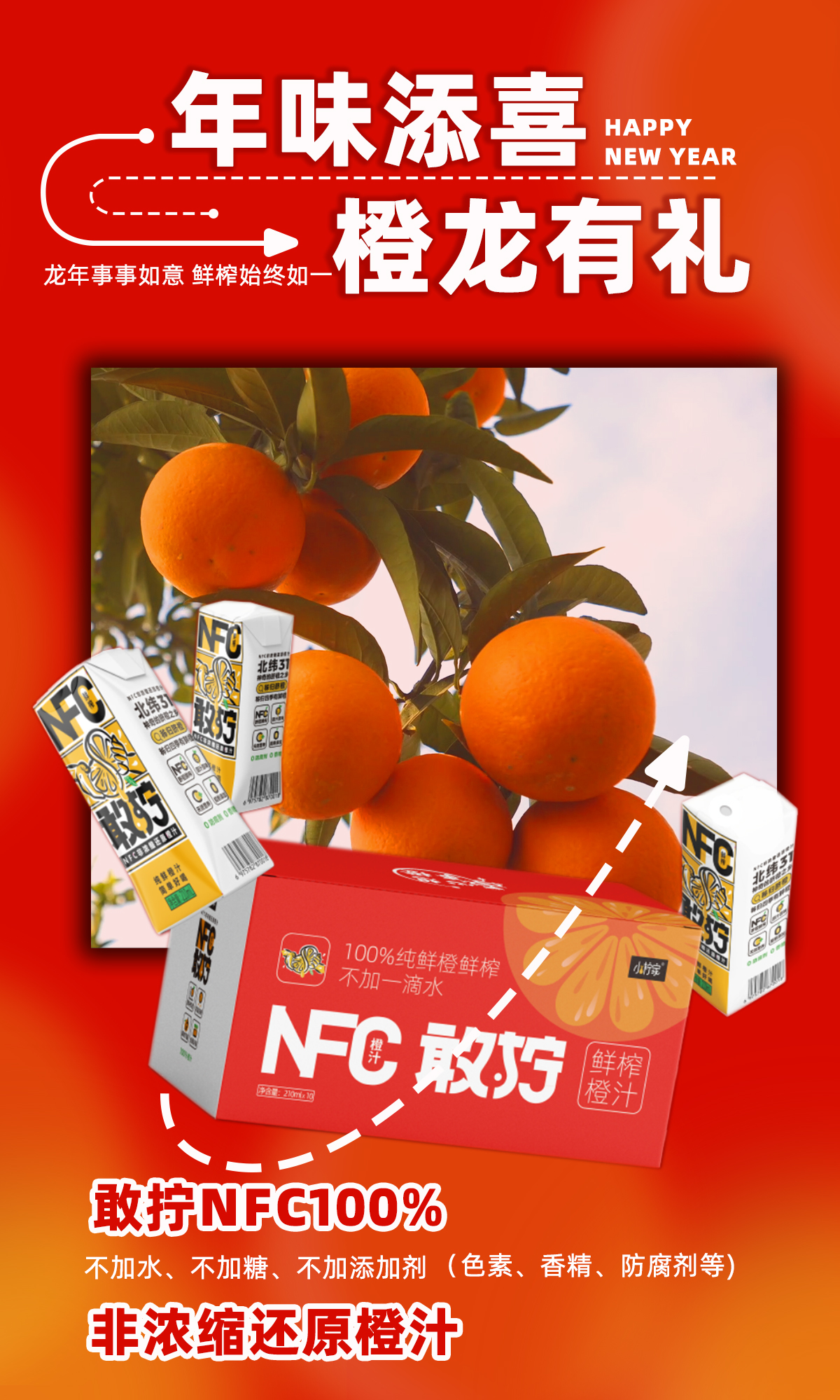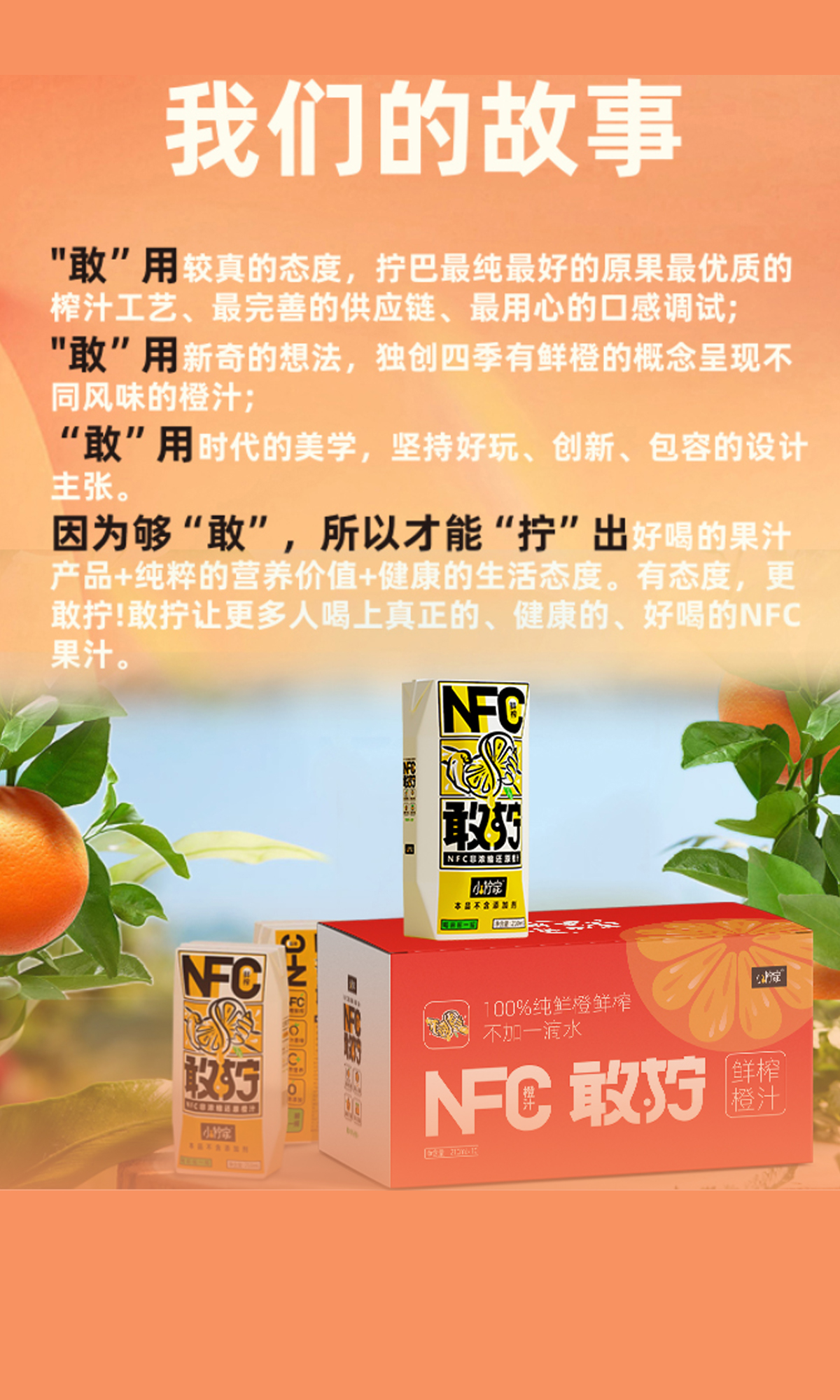 【斌哥优选】100%NFC橙汁,不加水不加糖,不含添加剂,一瓶五颗橙,两种包装随机发货