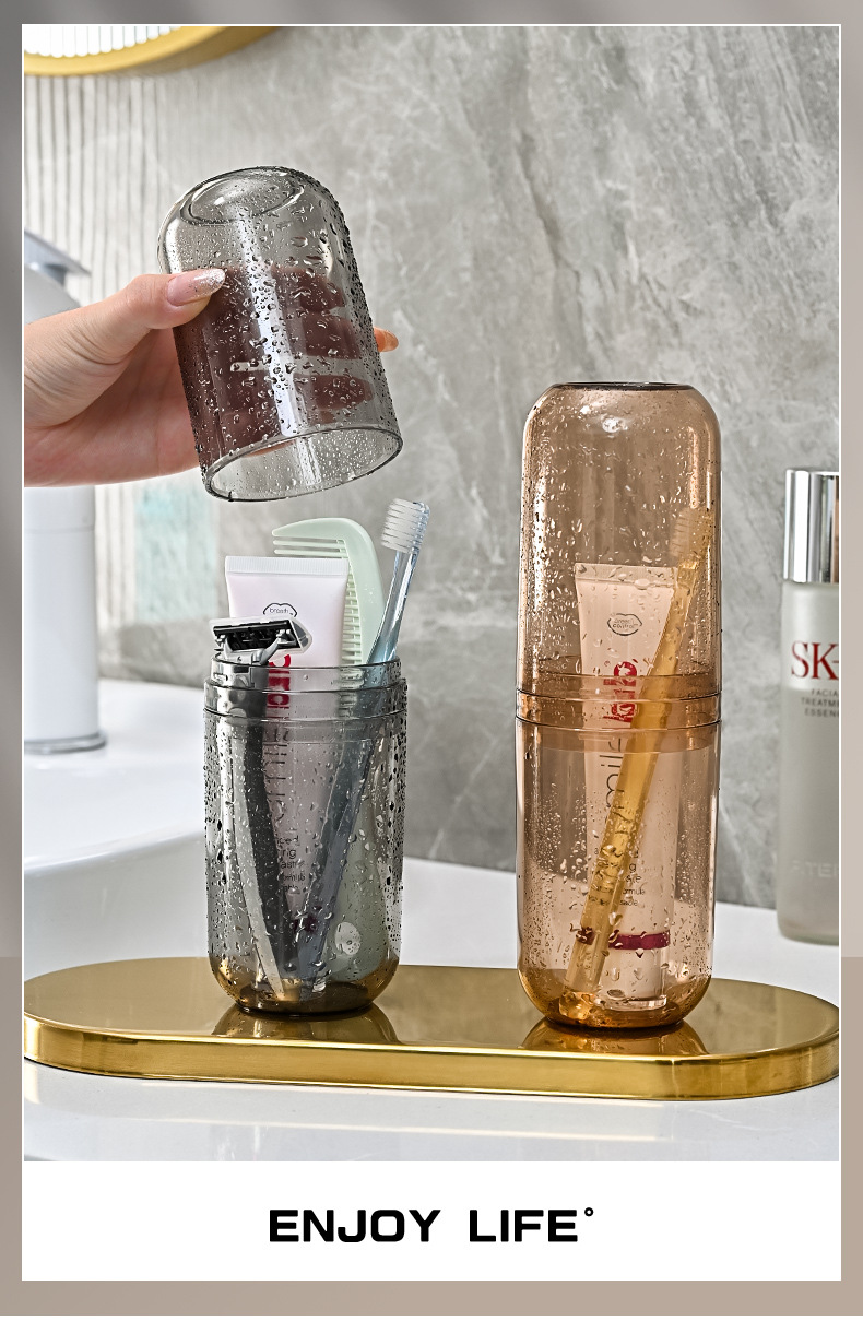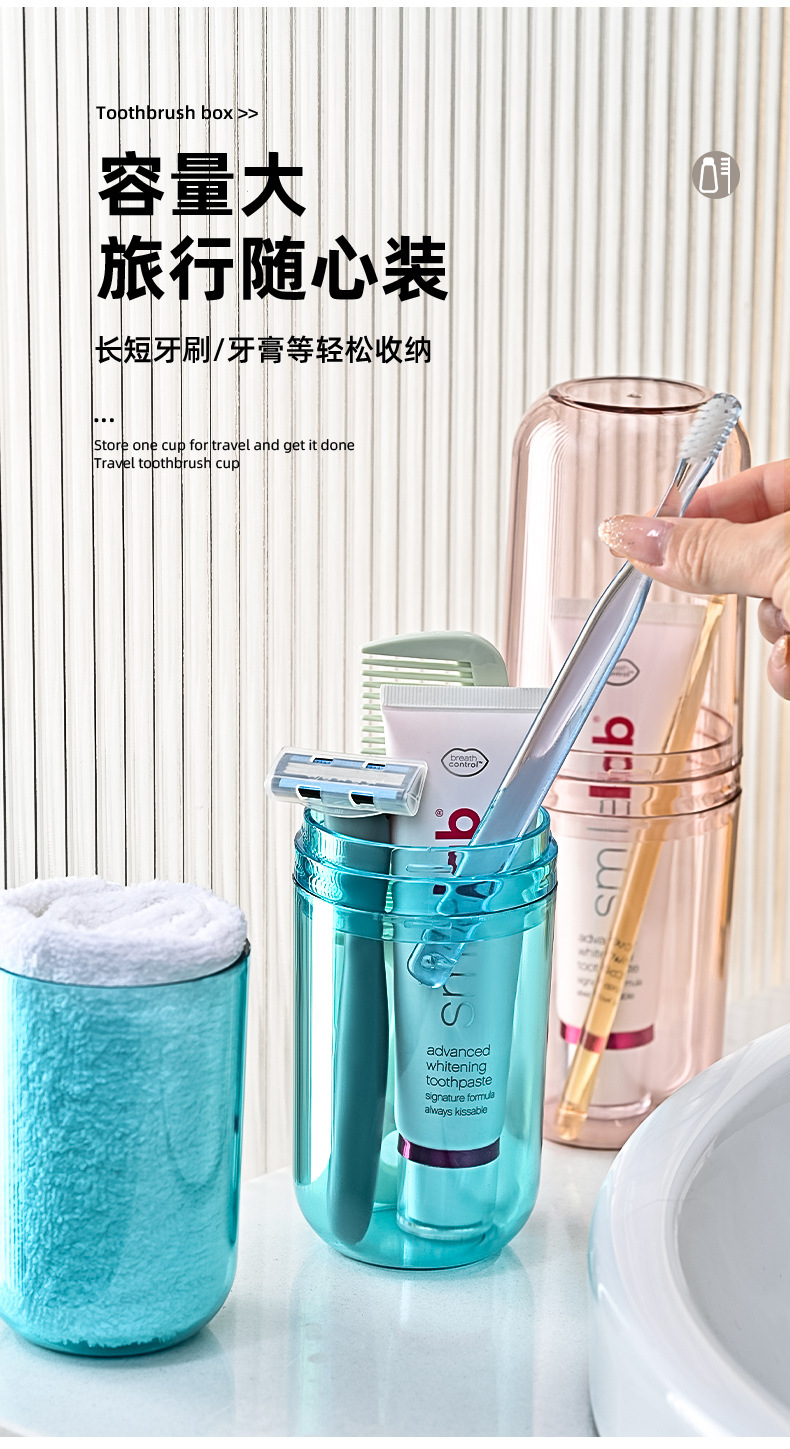 买一送一【出行随心,便捷自在!】漱口杯、牙具杯二合一,旅行时不用担心牙刷和漱口杯会乱七八糟地放在一起。家用收纳盒轻巧便携,旅行方便携带,不能再省去担心了!