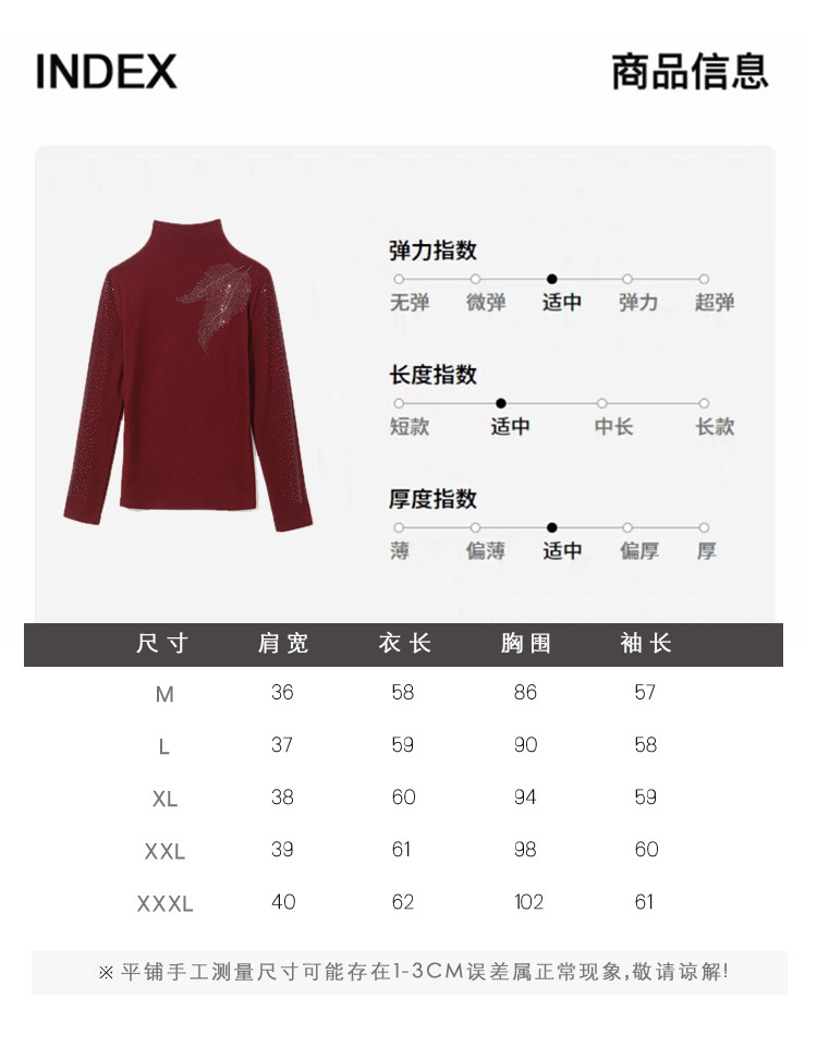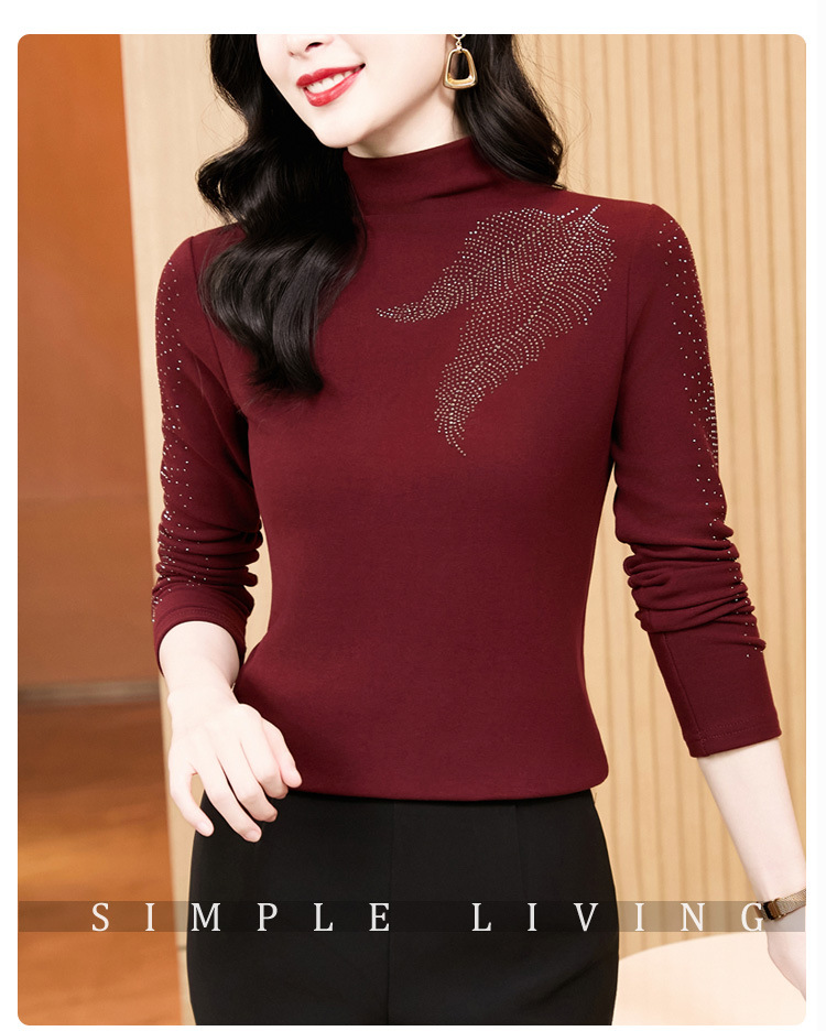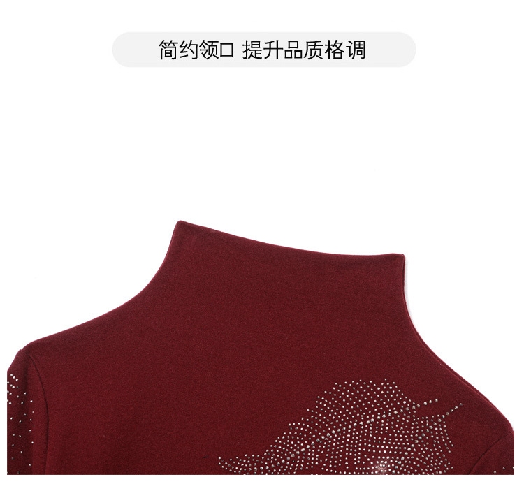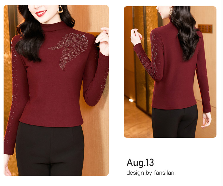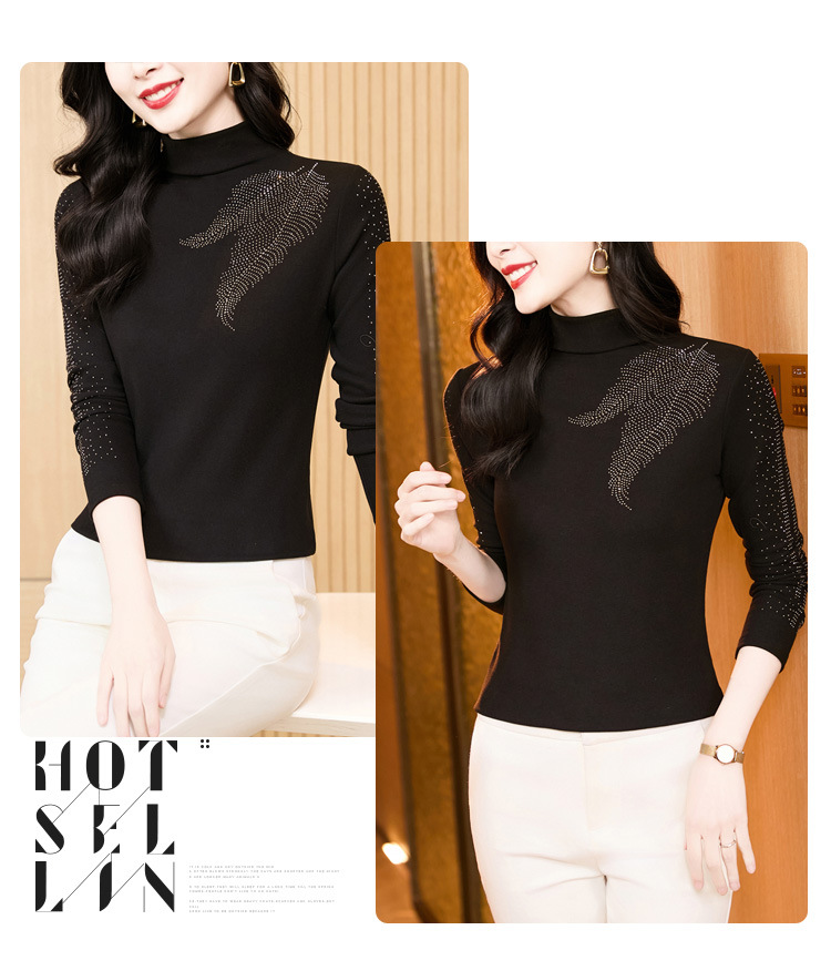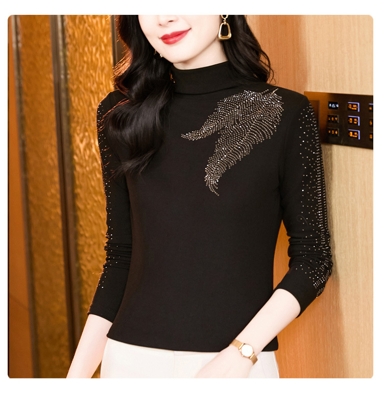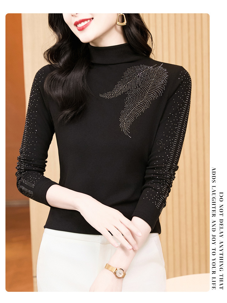 KQL E37M2962时尚百搭大码T恤纯色德绒加厚高领烫钻长袖打底衫
