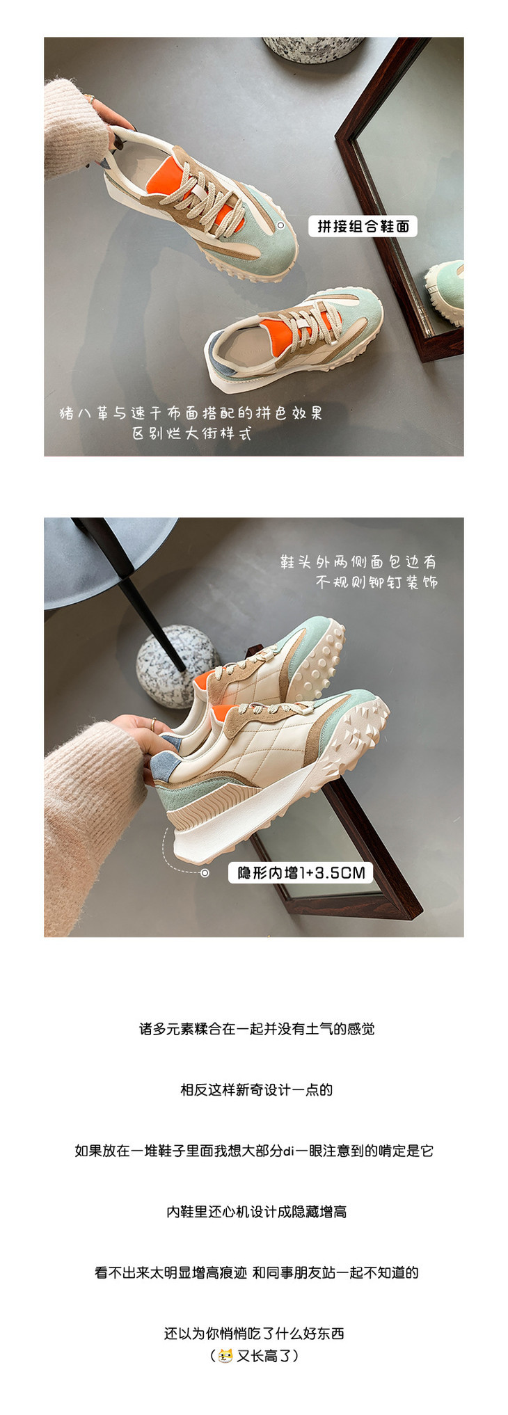 阿甘鞋女2022年春季新款百搭拼色厚底运动老爹鞋子女鞋